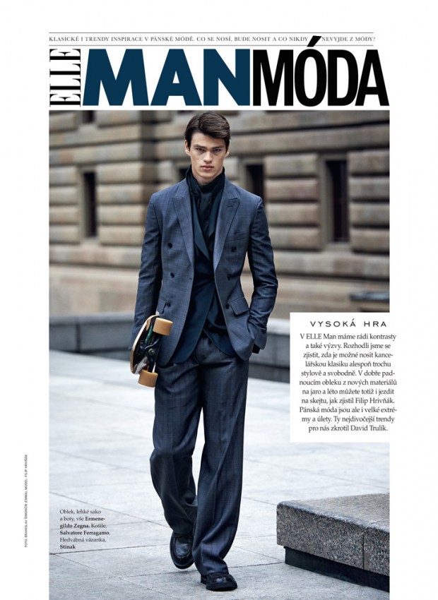 Top model Filip Hrivnak lands yet another cover of ELLE Man reuniting with photographer Branislav Simoncik he was photographed for the Czech Republic edition. Filip is wearing Fall Winter pieces from the likes of Salvatore Ferragamo, Ermenegildo Zegna, Versace, Bottega Veneta, Hugo by Hugo Boss, Prada, Dior Homme and Hermes among other prepared by Jan Králí?ek.