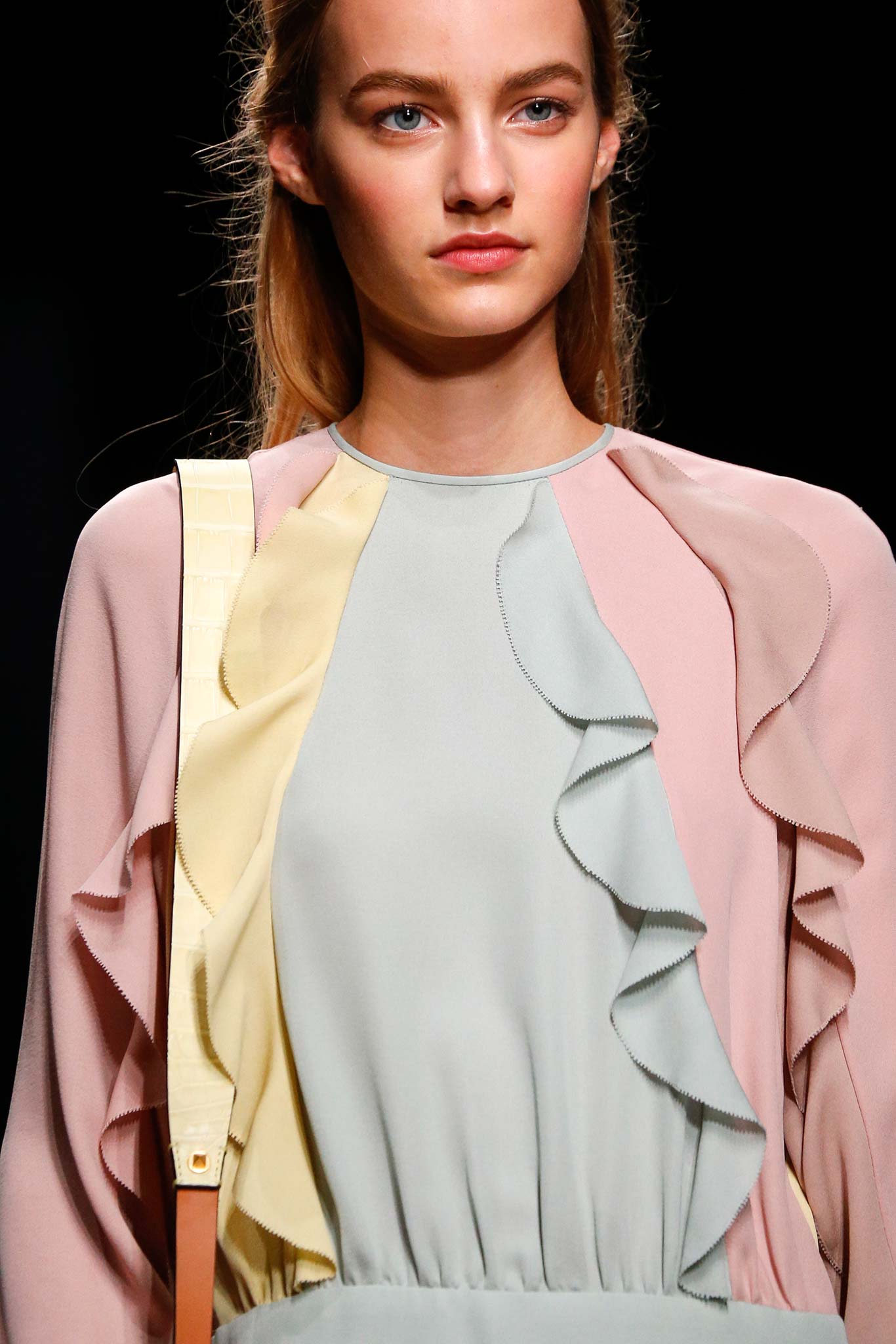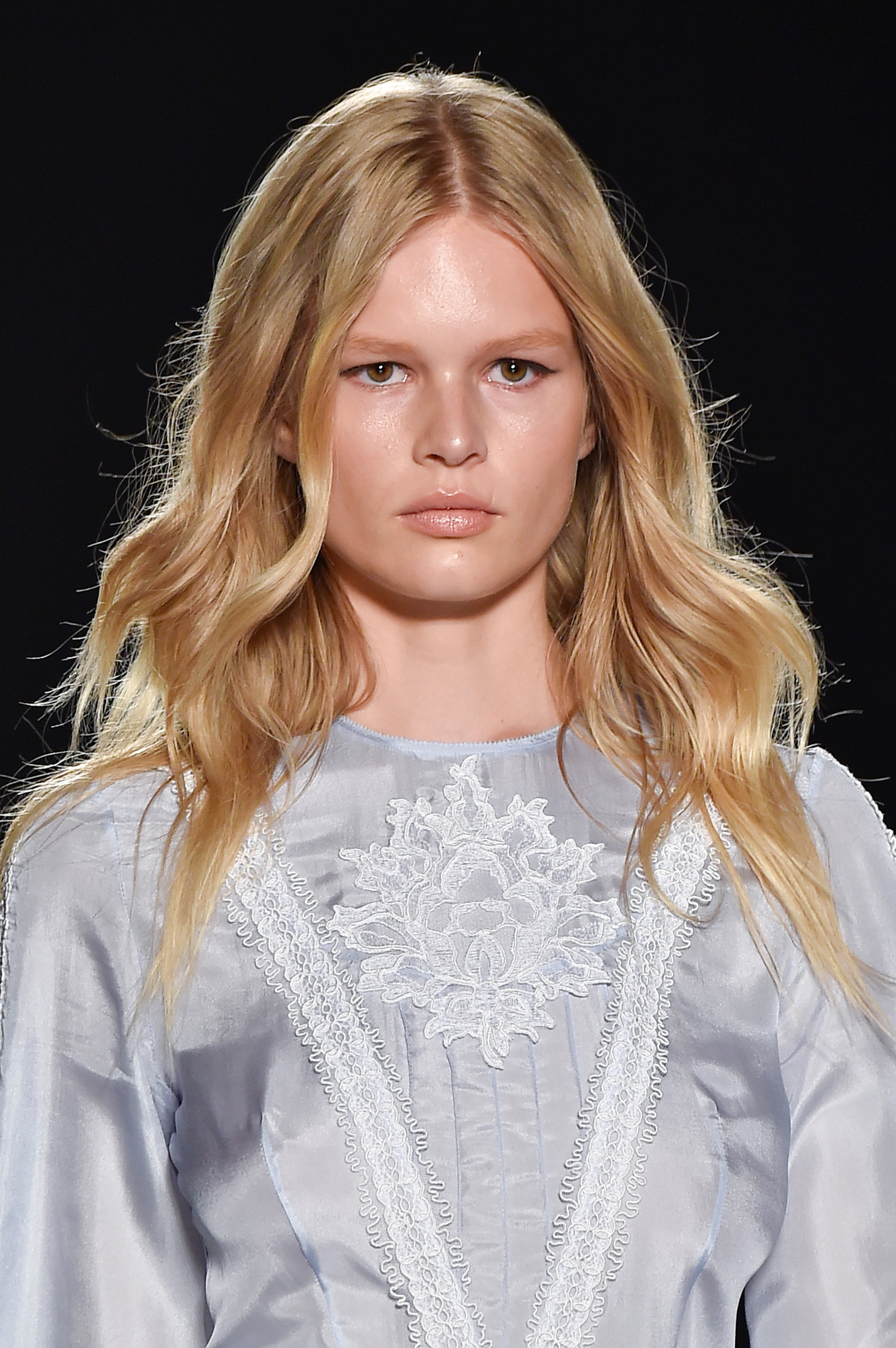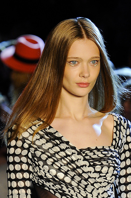 Golden Blonde and Impish. At first glance she looks a lot like every other girl on the runway, but up close she looks like an old Fairy Tale Princess.