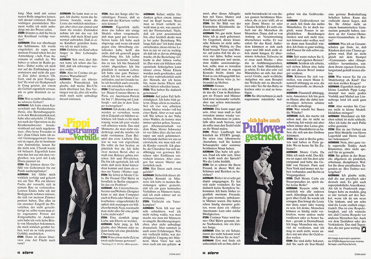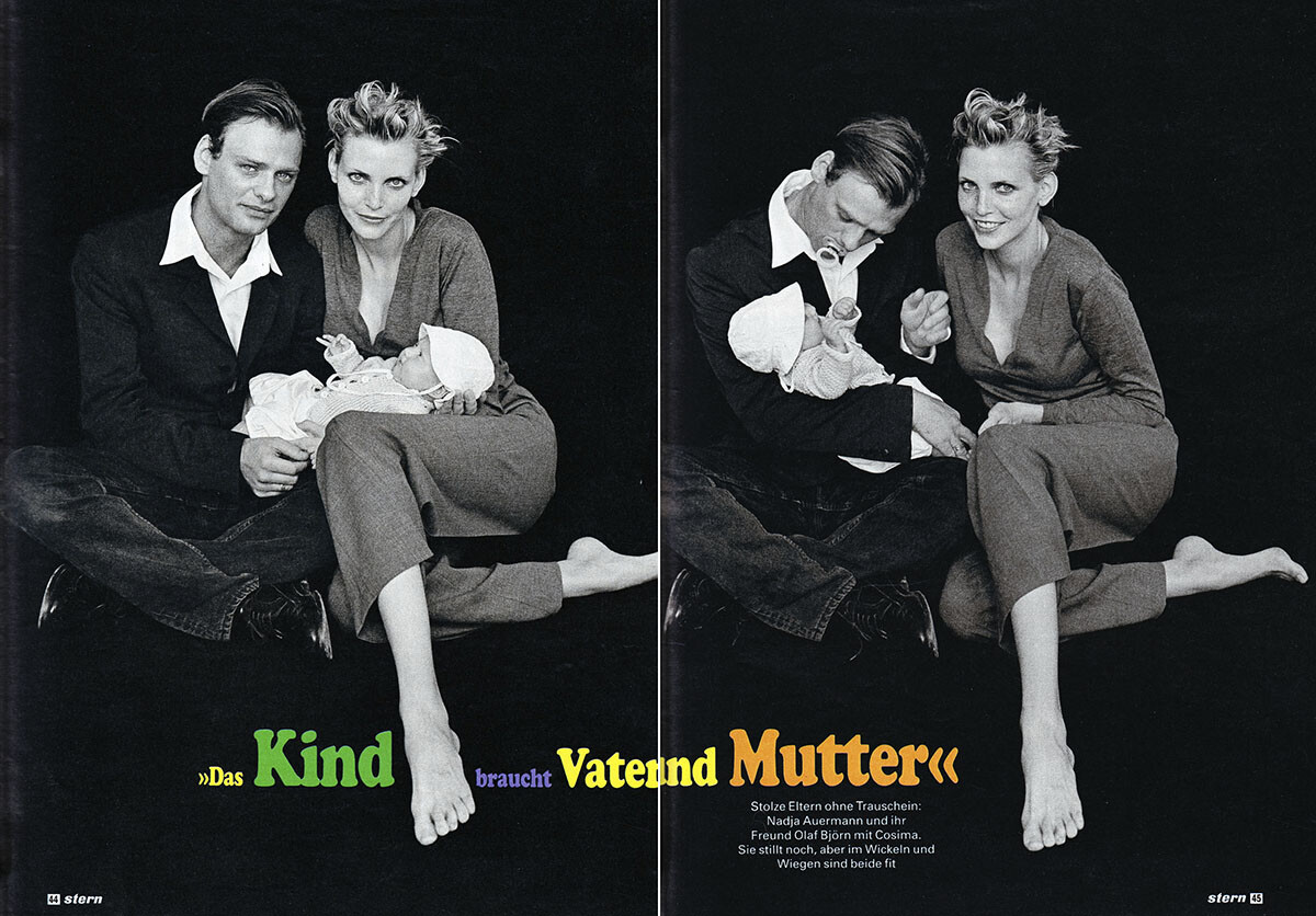 Well, I am afraid i do not have any photos of her children...I am more interested in her early work mostly...although I try to collect everything I can get...the only thing i have with her and her children is when she was having her first baby in 1997 and the Self Service editorial which was posted here...I also saw someone posted a French L'Officiel cover with her and her son and daughter, which i have never seen before...here are the pages from Stern magazine with her first baby daughter, scanned by me... I might have some pages from gossip mags, but i don't think I will ever scan these...