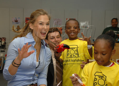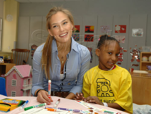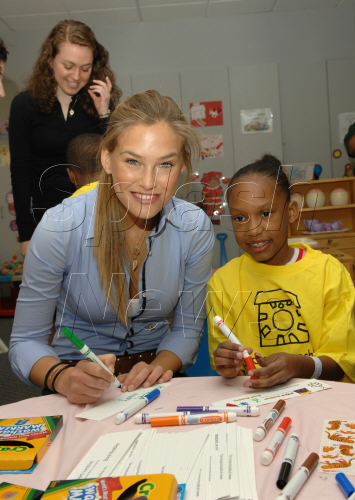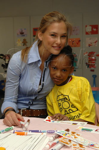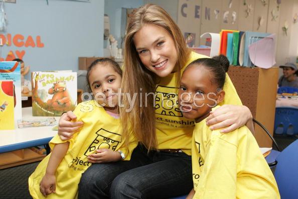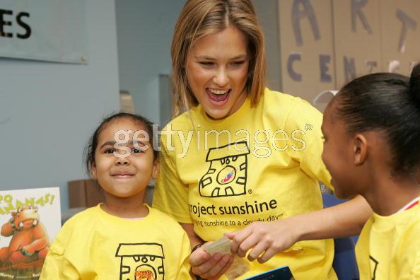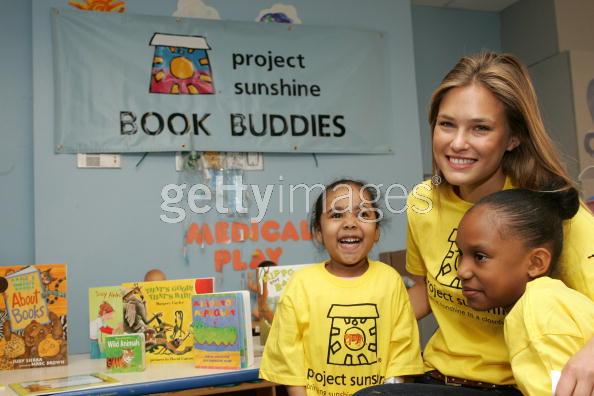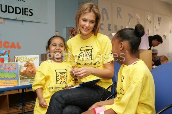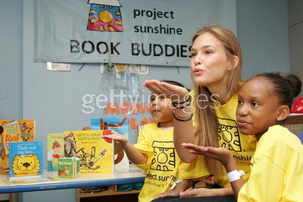 NEW YORK - MAY 14: Model Bar Rafaeli reads to patients Maurilys Rodriguez (L) and Khalia Smith while volunteering with Project Sunshine's Book Buddies program at St. Luke's Hospital's pediatric unit May 14, 2007 in New York City.