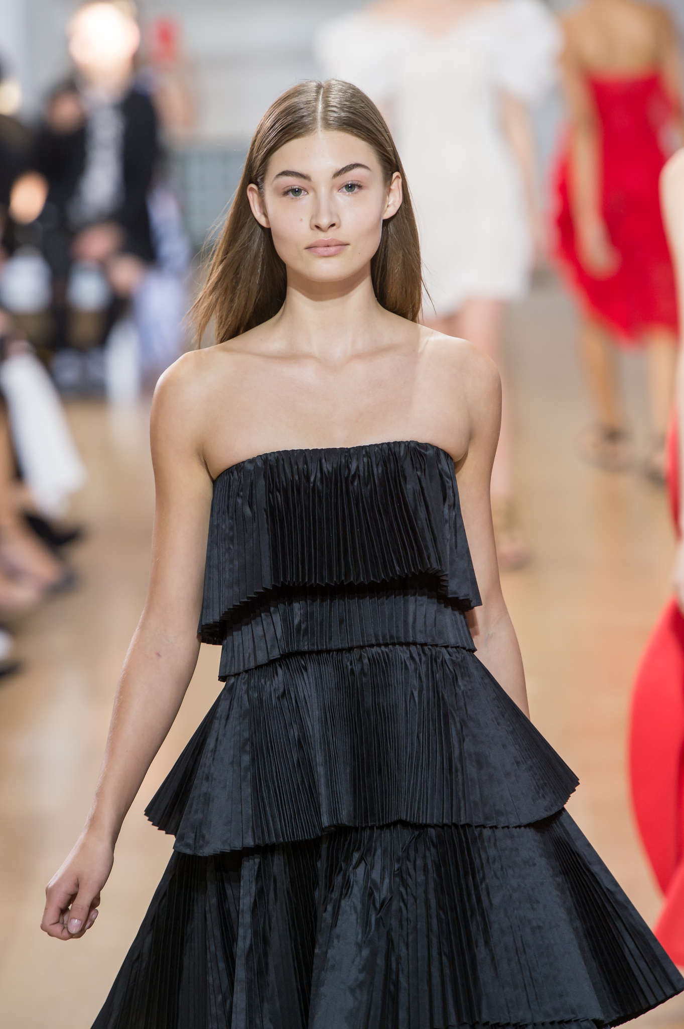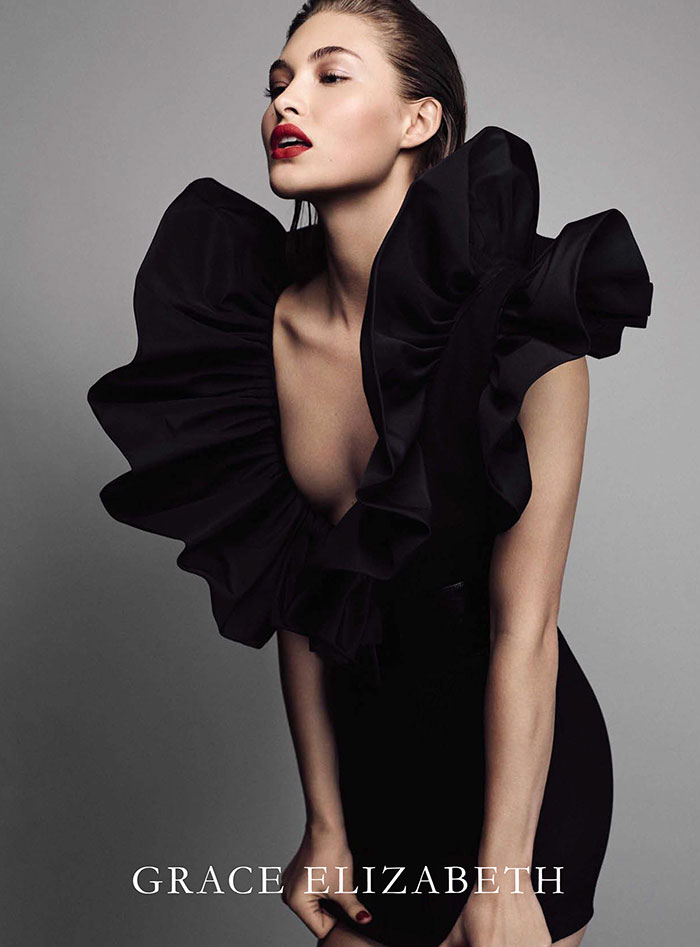 These days, a model has to be a jack-of-all-trades. Walking the runway is a skill, but so is vamping it up for a lingerie brand, or marketing yourself on Instagram. The girls who get the most traction tend to be able to do a little bit of everything, and the latest do-it-all beauty is Grace Elizabeth. In the middle of a whirlwind two months that has seen her appearing in French Vogue, working with Victoria’s Secret and walking for Oscar de la Renta, Elizabeth is quickly becoming a force in the commercial and high-fashion segments of the industry. Pouty and curvaceous enough to pose alongside the bombshells, yet distinctive enough to pull off artsy shoots with Willy Vanderperre or Patrick Demarchelier, for Elizabeth, who grew up in a small North Florida town, getting the opportunity to show both sides of herself has been educational. “Fashion isn’t a huge thing in my town,” said Elizabeth, after opening the show at Tory Burch. “As an outsider looking in, the industry looks so easy and glamorous, and then when I became a part of this crazy world I realized it requires a lot of hard work and dedication.”