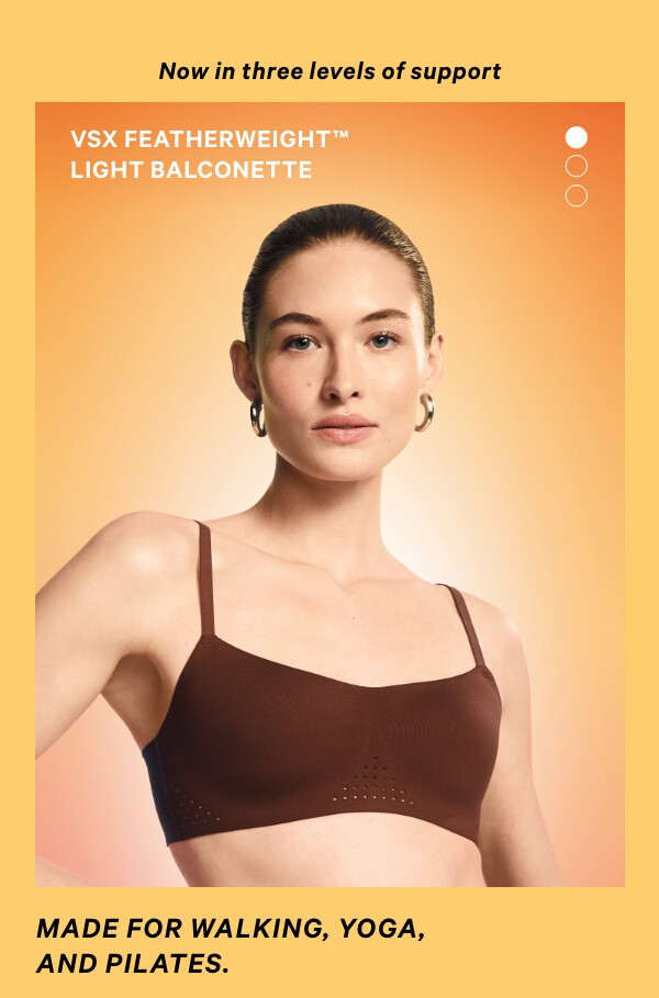 Victoria's Secret: If you listen really carefully…all your favorite activities and on-the-go moments are cheering. Say hello to The VSX Featherweight™ Sports Bra Collection.