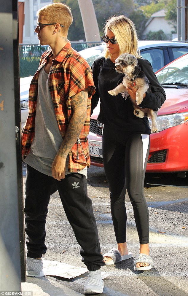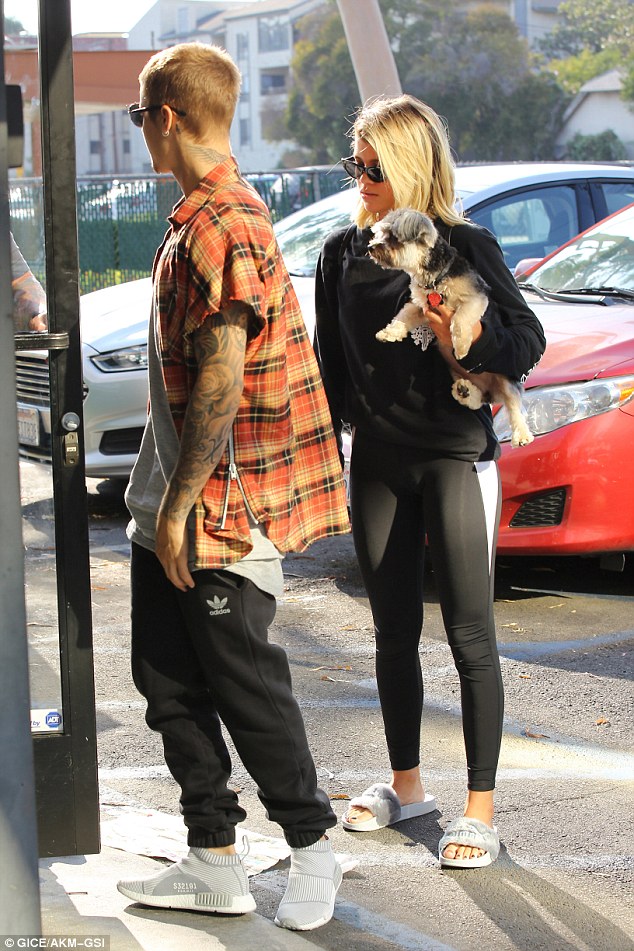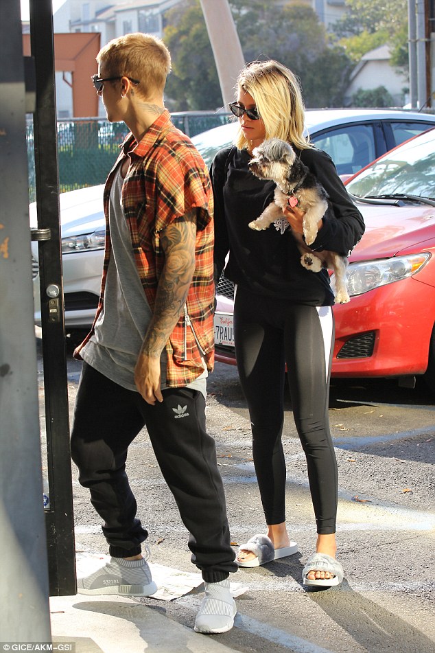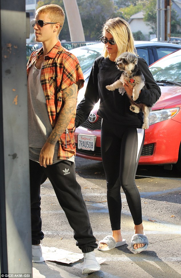 Justin Bieber and Sofia Richie take a stroll together on Friday (August 26) in Los Angeles.