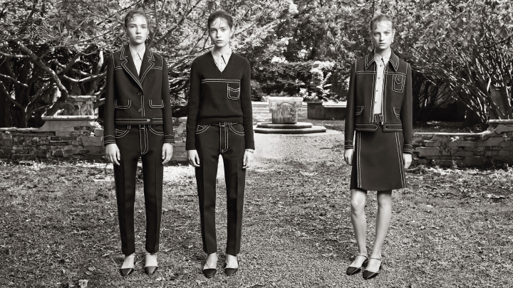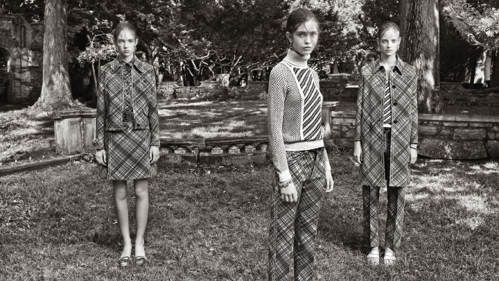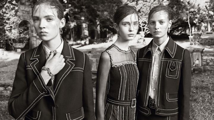 Hitting magazines’ November issues, the resort 2015 campaign from Prada has been revealed via WWD with a set of black and white photographs captured by Steven Meisel. The advertisements star Adrienne Juliger, Ine Neefs and Moya Mardy shot on location at Alder Manor in New York.