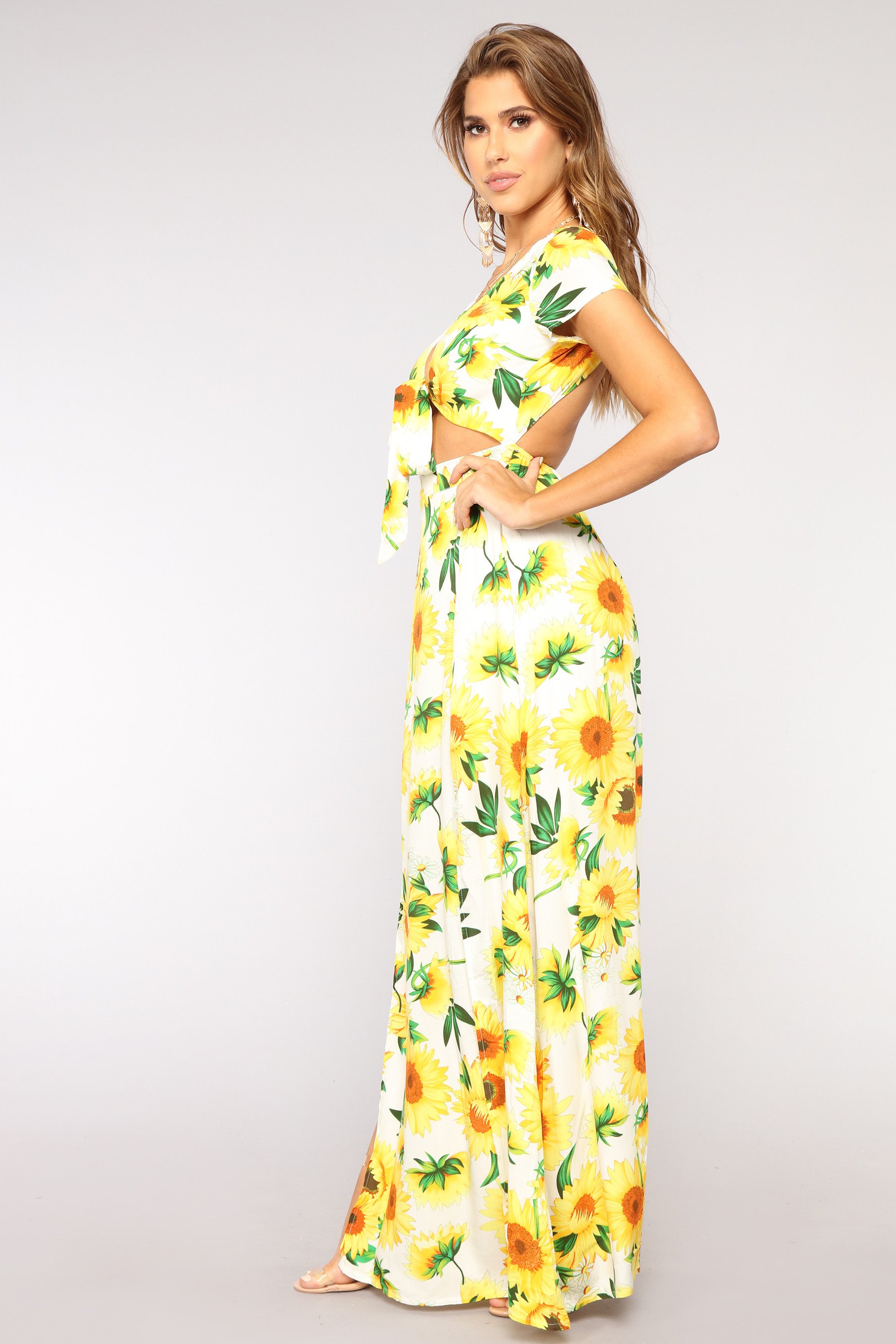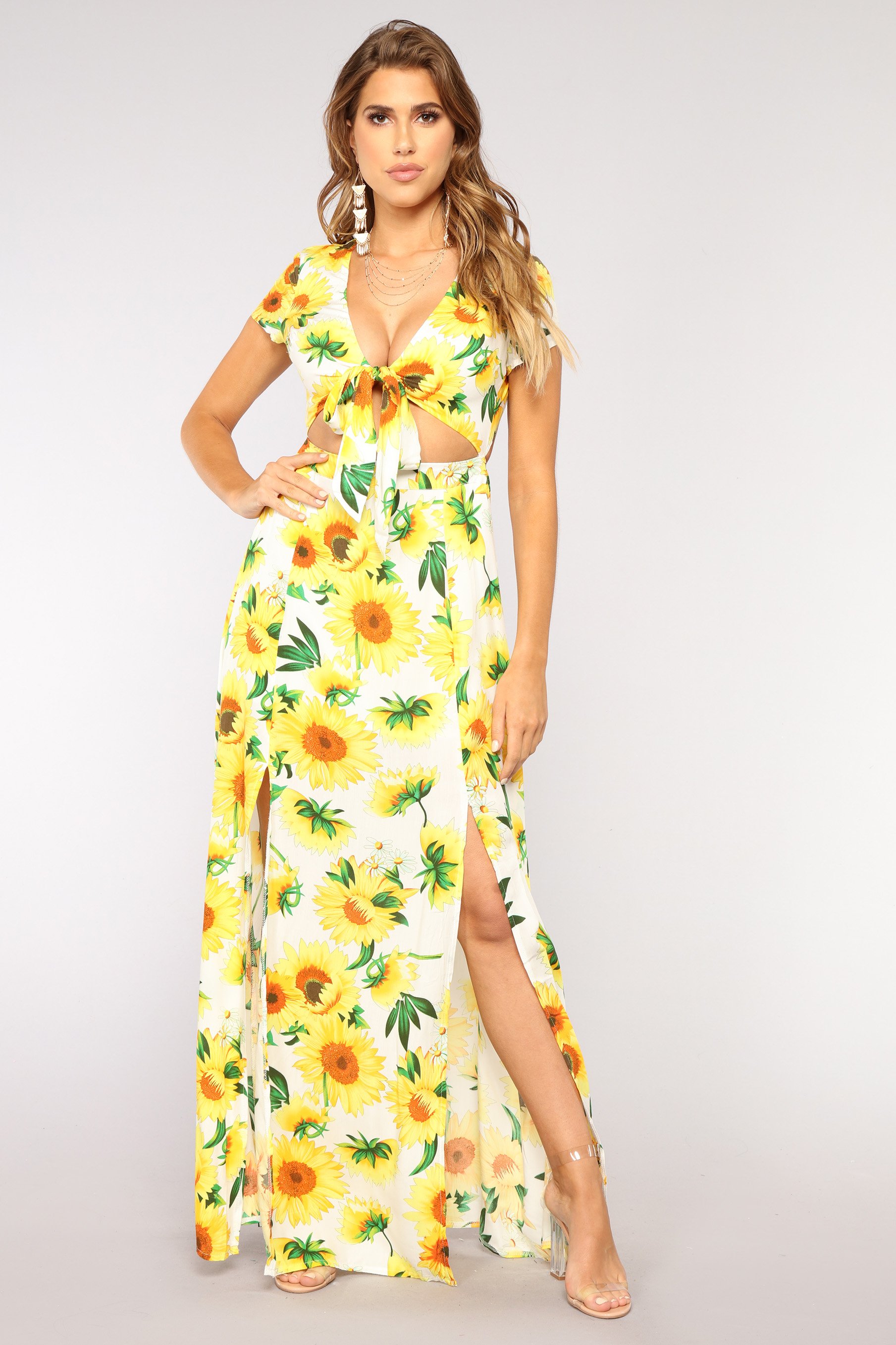 Sunshine Babe Tie Front Dress - WhiteYellow