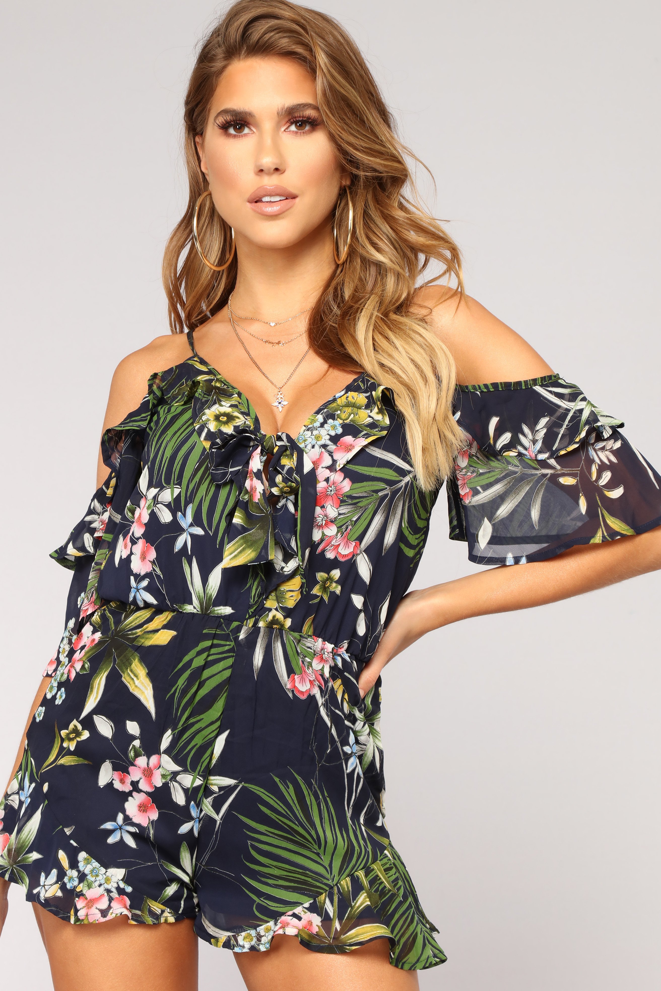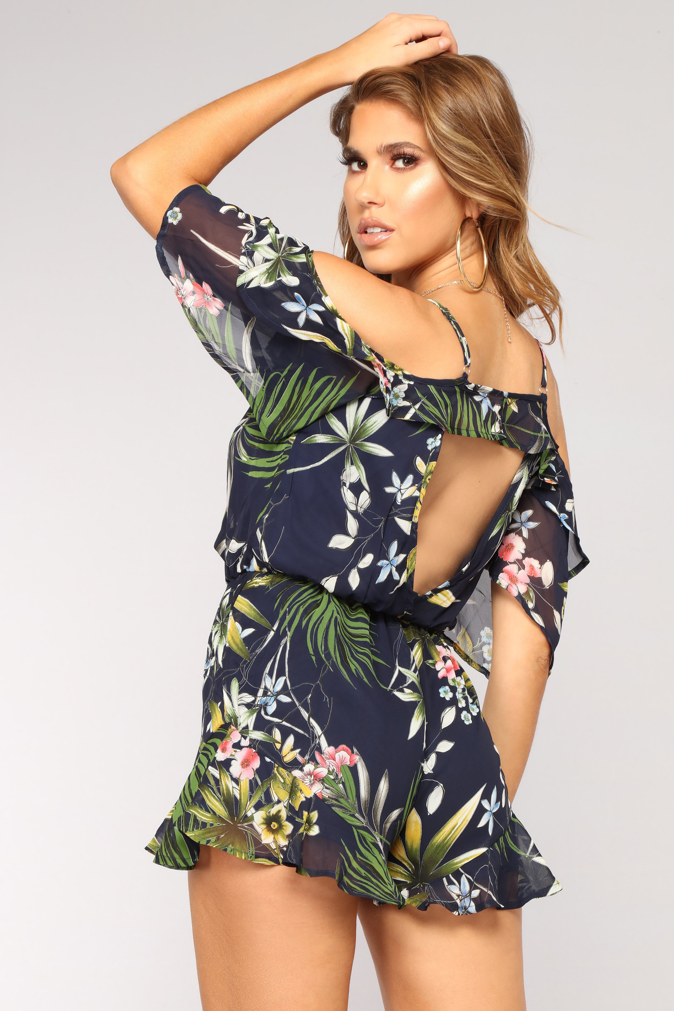 You're Not Destiny Cold Shoulder Romper - Navy