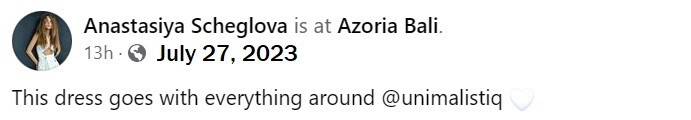 Her Instagram page Model Bali (@sheglova_anastasiya) • Instagram photos and videos