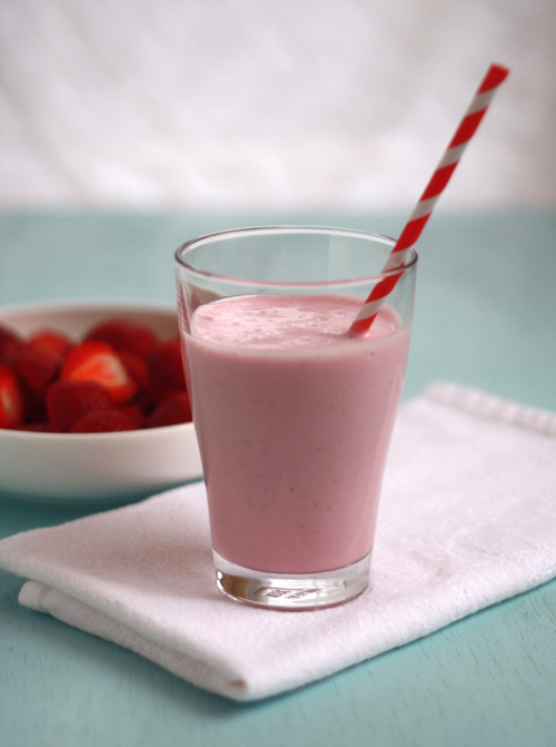 We have strawberry milkshakes. When you blend vanilla ice cream, ice, milk and strawberries.