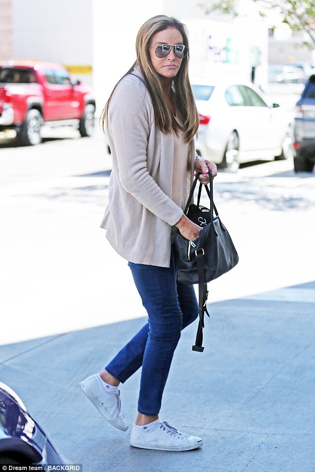 Caitlyn Jenner made a glamorous arrival as she landed back at home in Los Angeles International Airport early on Monday morning with friend Sophia Hutchins