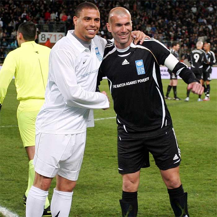 Ronaldo and Zidane are goodwill ambassadors for UNDP, a United Nations development program which organized the fifth Match Against Poverty. Zidane scored from a free kick and set up the other in the 2-2 draw before 33,000 fans at La Rosaleda.