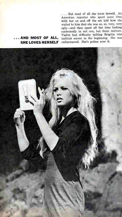 Director Roger Vadim, who ‘discovered’ Bardot and then married her, recalled coming home to see his wife on her 21st birthday, only to find her in tears in front of a mirror, saying she was ugly and hideous. Years later she still denigrated her features, saying her mouth was too large, her eyes too small, her cheeks too round, adding, “I have never thought I was beautiful, even when I was at the height of my fame.”