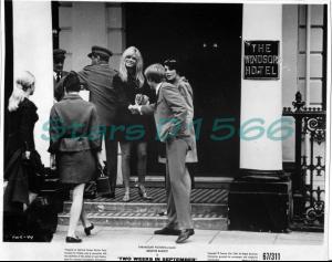 1970 – Wearing a short, striped, drop-waisted dress, she was pursued by the paparazzi as she left the Forum Hotel in Rome.