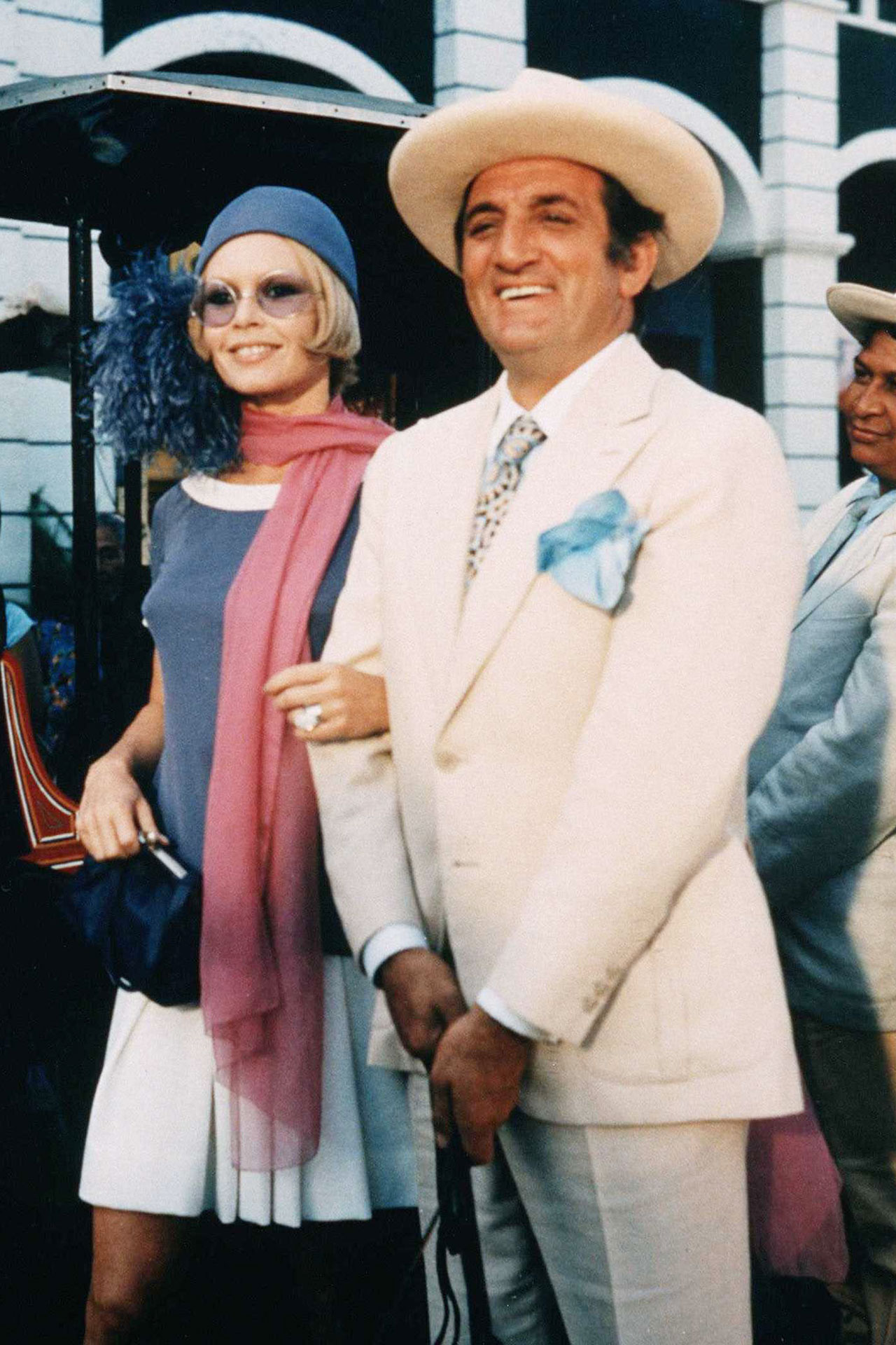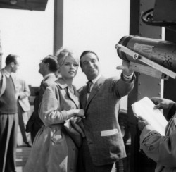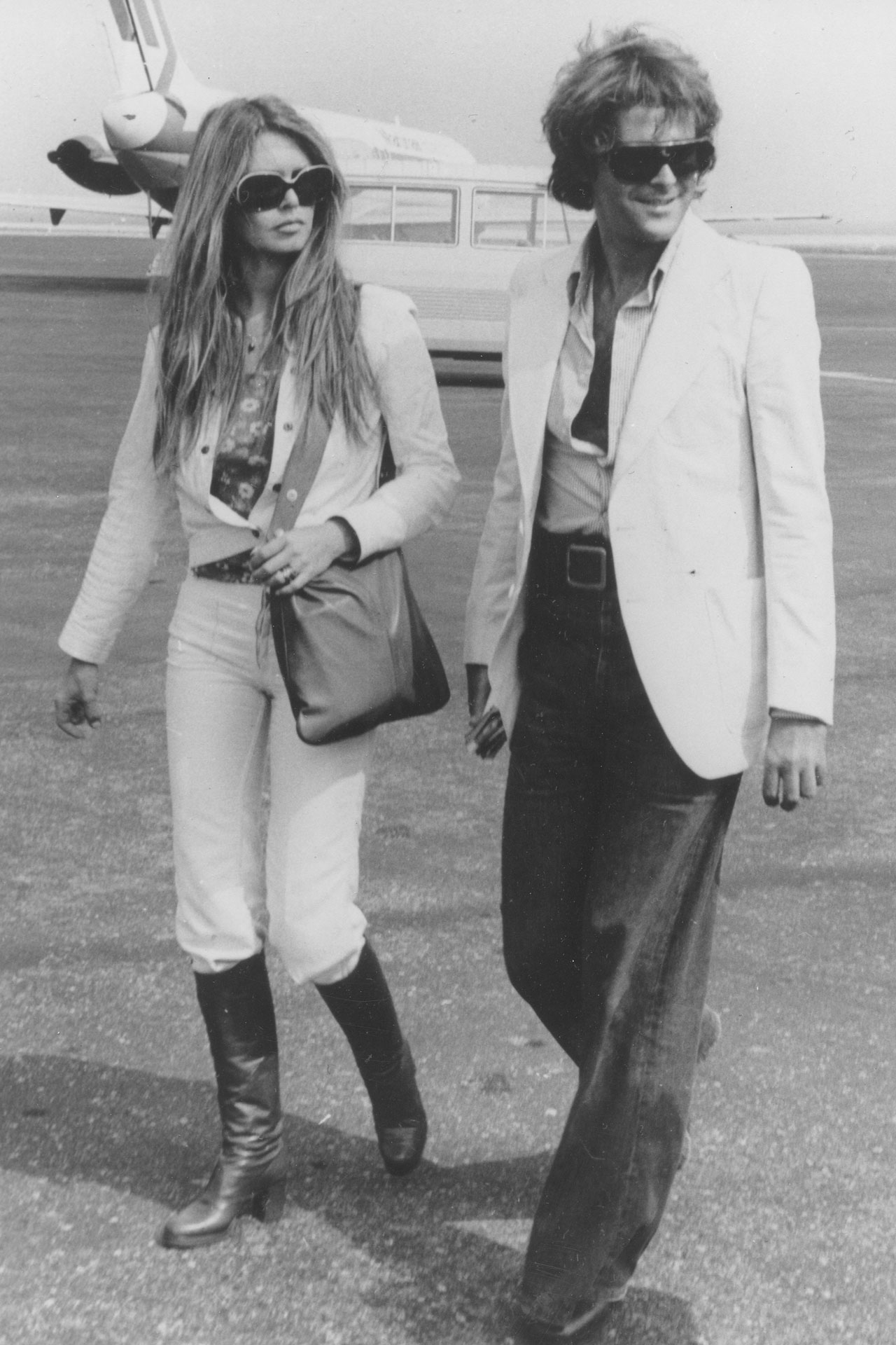 MAY 1974 – Brigitte wore her white jeans tucked into her boots when she arrived at Nice airport with friend Georges Cibaud.