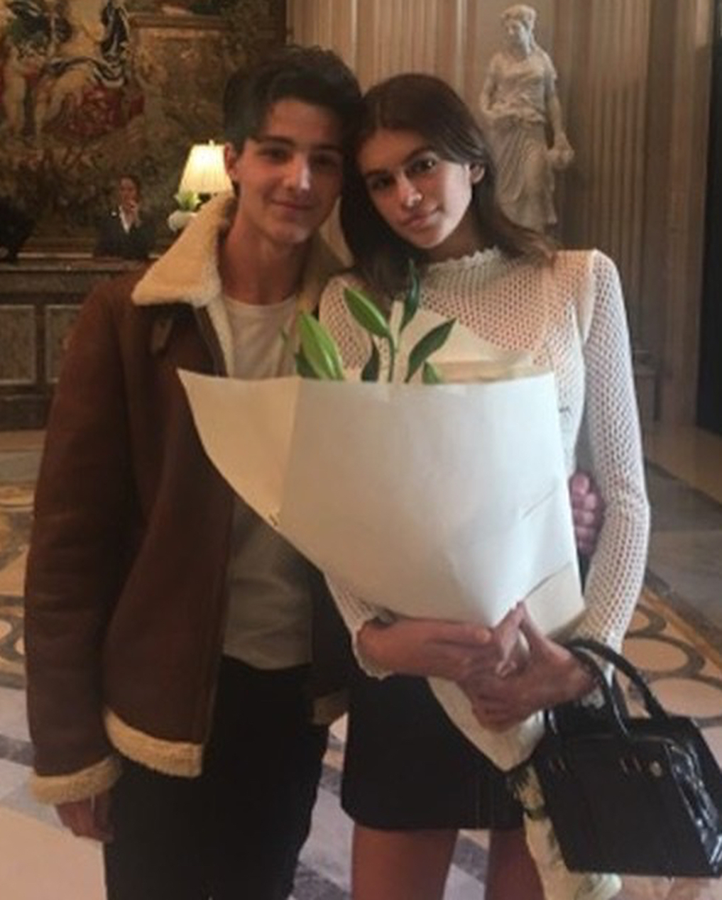 “I remember speaking to Kaia backstage at the resort show that I did in L.A. in June where she came to sit front row because [her brother] Presley was in the show, and she was, like, ‘I can’t wait until September, I can finally join you!’” says Jeremy Scott, who had Gerber in his Moschino show in Milan. “It’s already this crazy phenomenon that she’s this little baby doppelgänger of her mother, one of the most iconic American beauties and fashion models of all time. And she just has such a great attitude. Both her and her brother are very well brought up; they may be Malibu raised, but they have Midwestern values, obviously through Mommy, who is a Midwesterner. She also has a creative spark in her and it’s just starting to show, because this is obviously her first season and it’s really good to start working with people [at the start].”