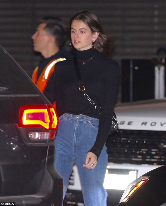 Casually clad Kaia Gerber, 16, rocked a retro black roll neck and high-waisted jeans as she dined out with age-defying mum Cindy Crawford, 51, in Los Angeles on Sunday, 28/01/2018.