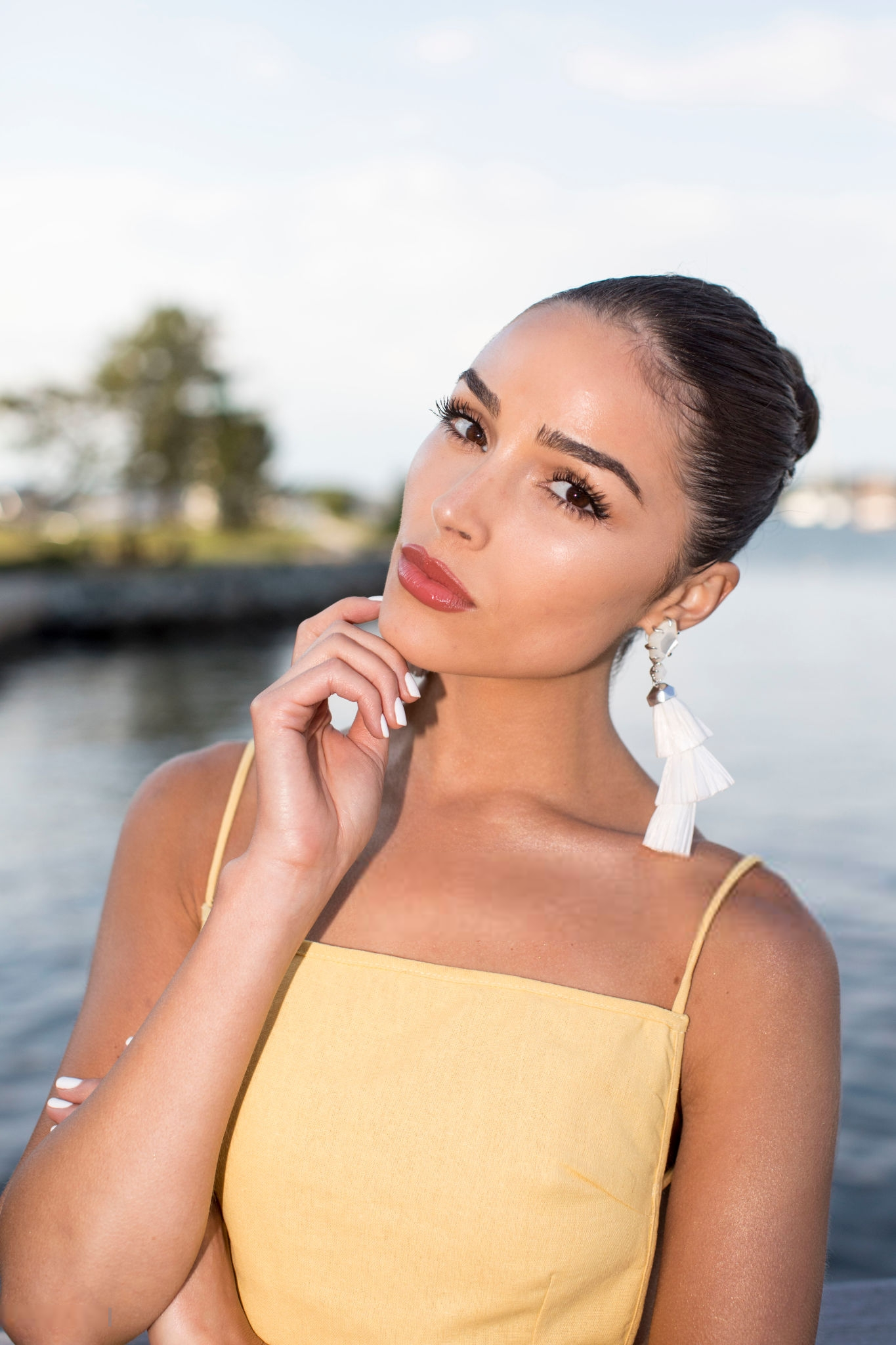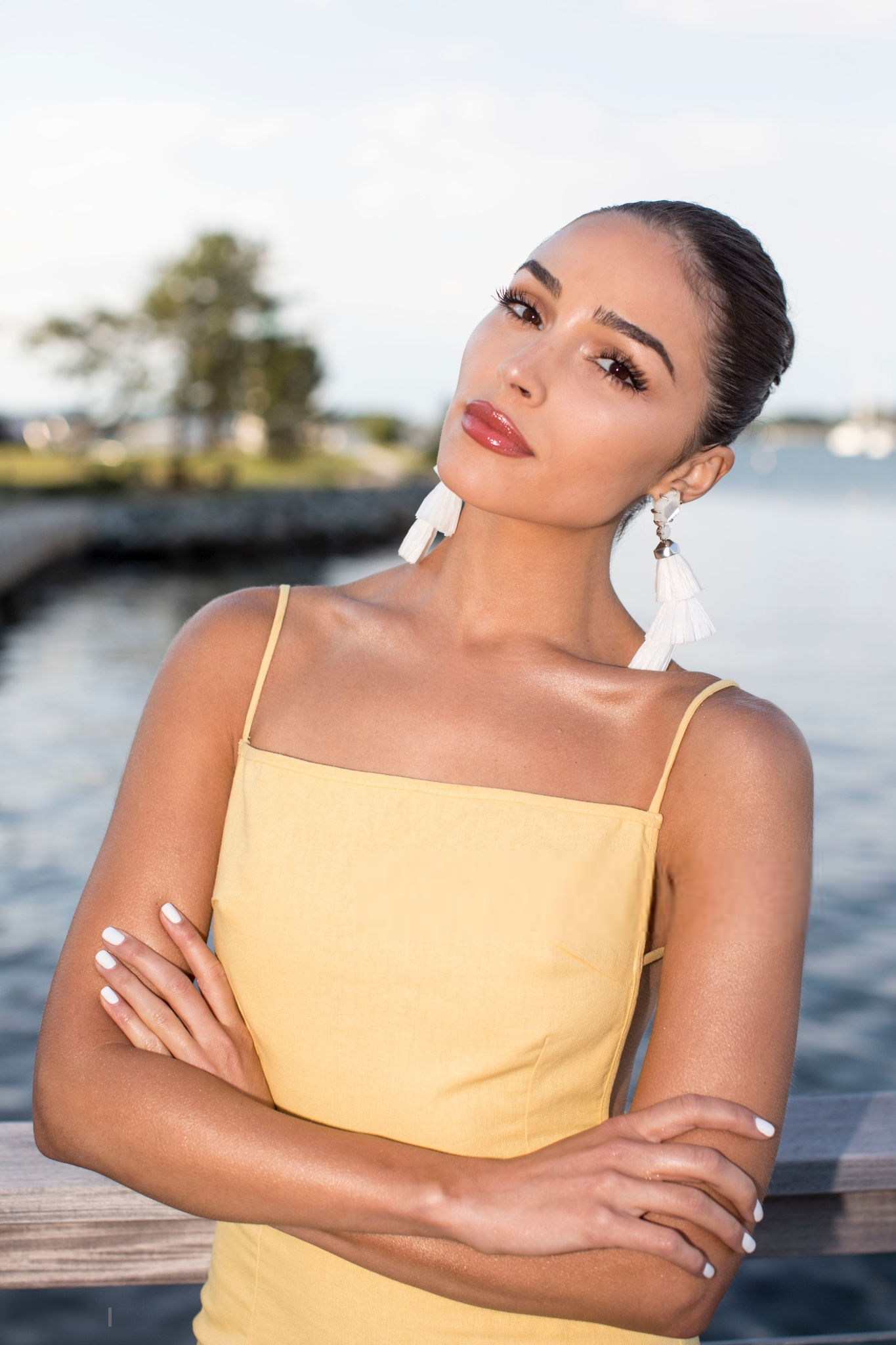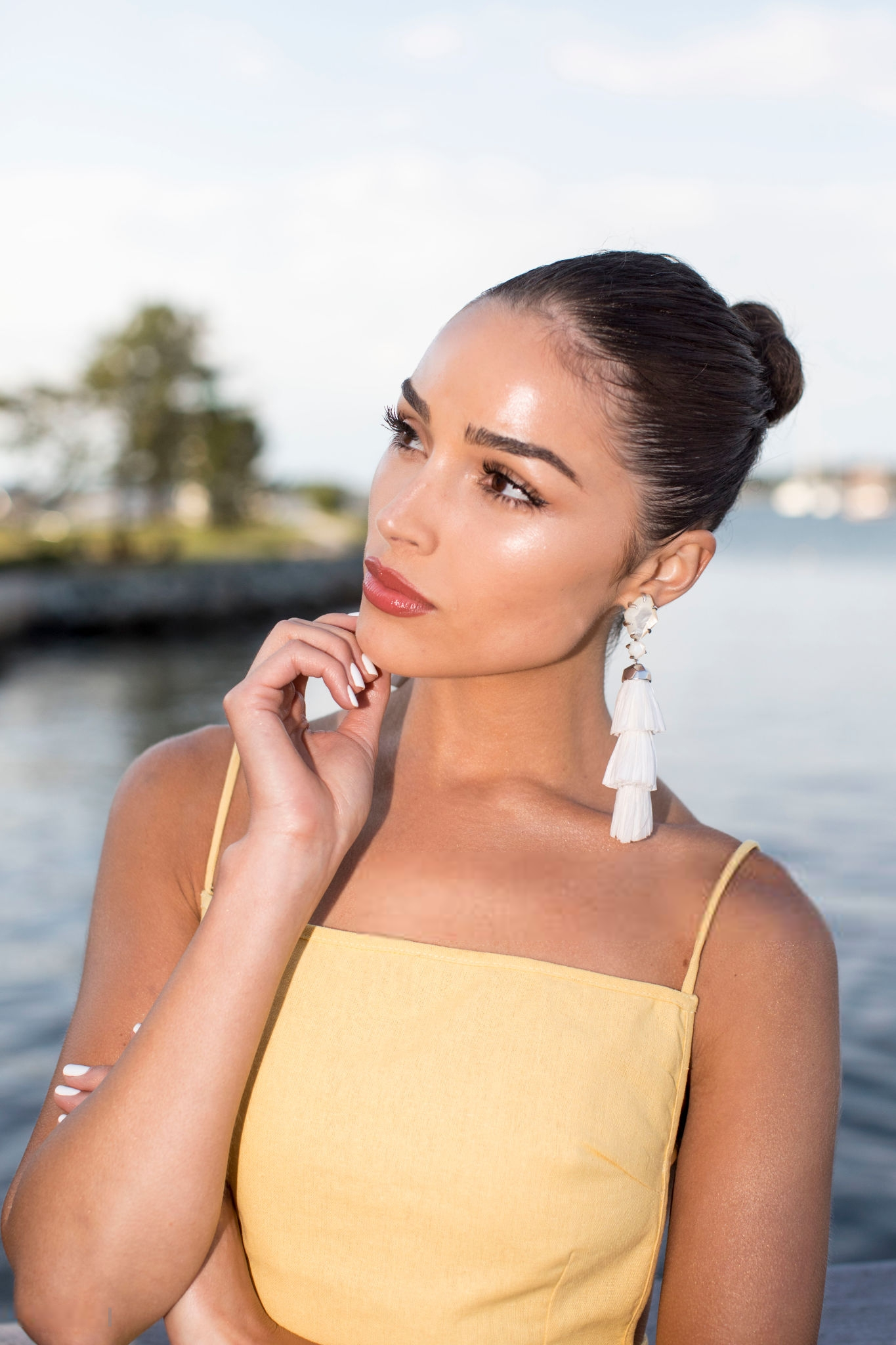 wearing Kendra Scott earrings.