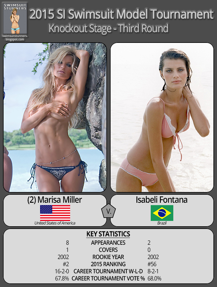 #2 Marisa Miller (USA, 16-2-0, 67.8%) vs. Isabeli Fontana (BRA, 8-2-1, 68.0%)
