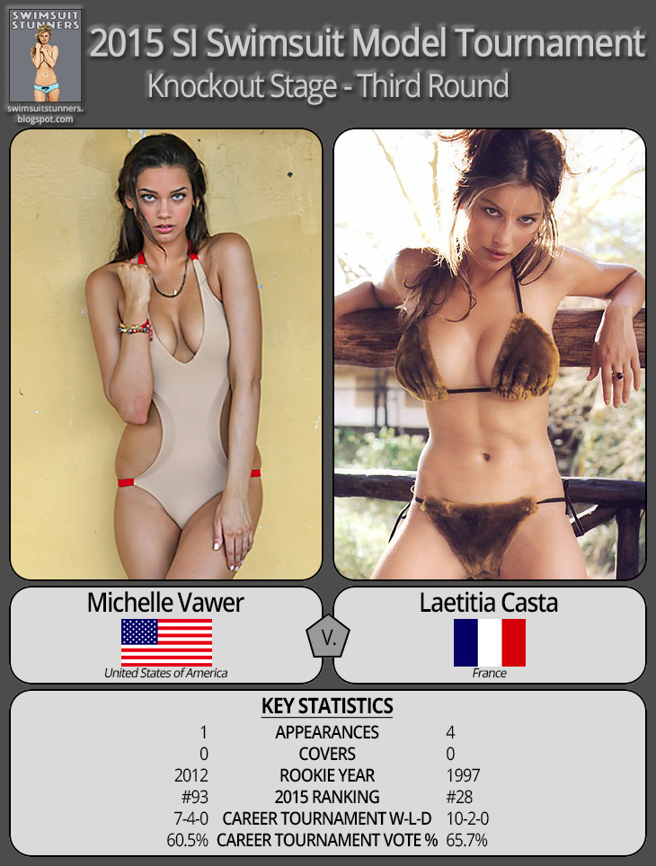 Michelle Vawer (USA, 7-4-0, 60.5%) vs. Laetitia Casta (FRA, 10-2-0, 65.7%)