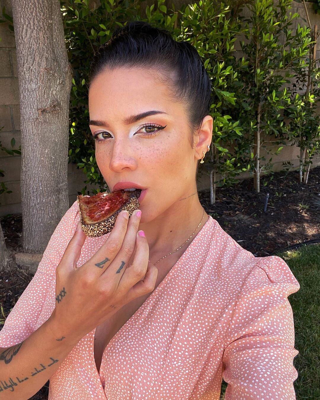 Halsey wears a black surgical mask to protect her face from germs while leaving a grocery store on Thursday afternoon (March 19) in Los Angeles.