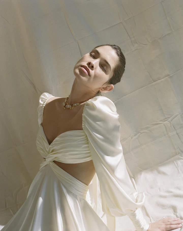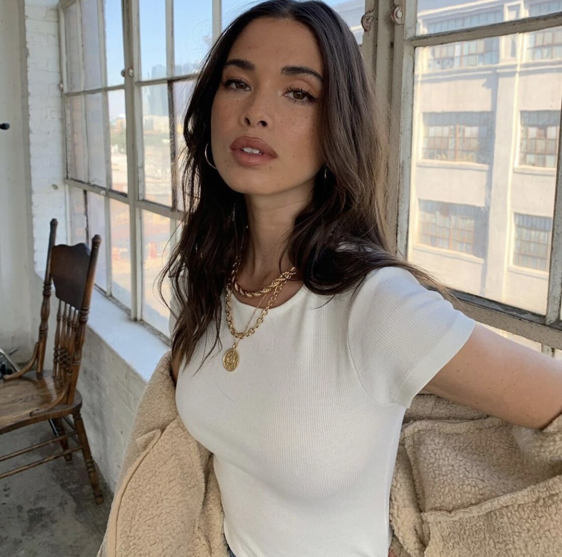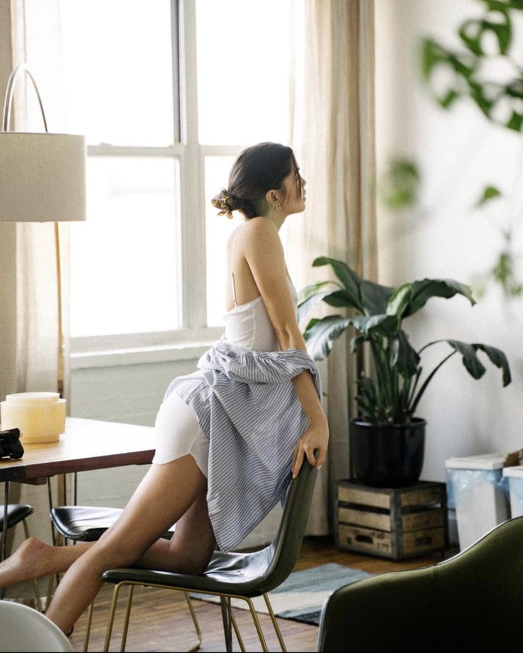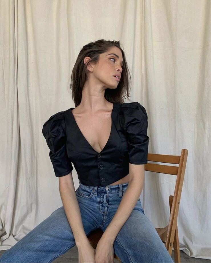 She is beautiful. This photo is wonderful! I love how her breasts look in it and her face + hair look so sexy!