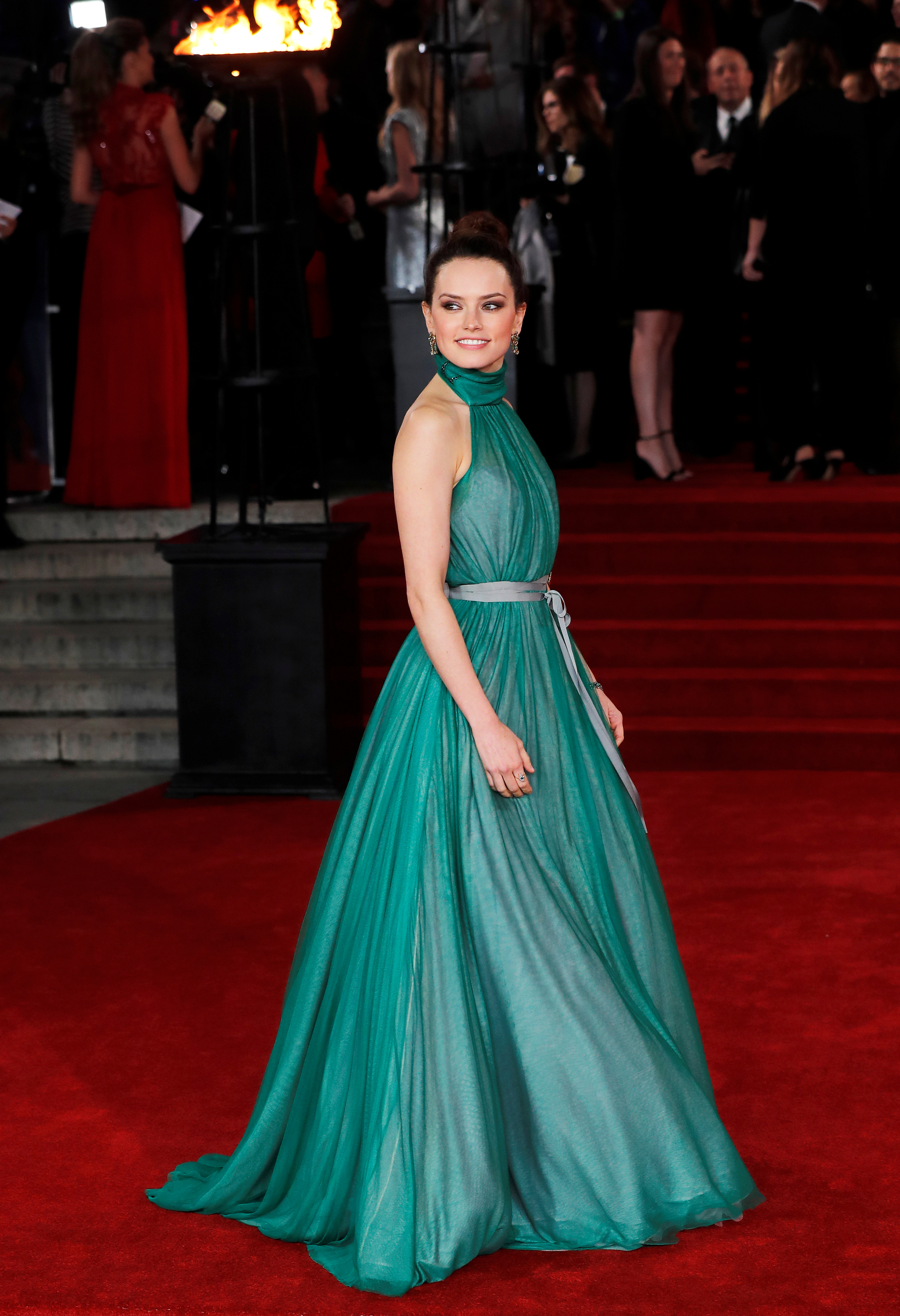 That green dress is great, and she looks great in it.