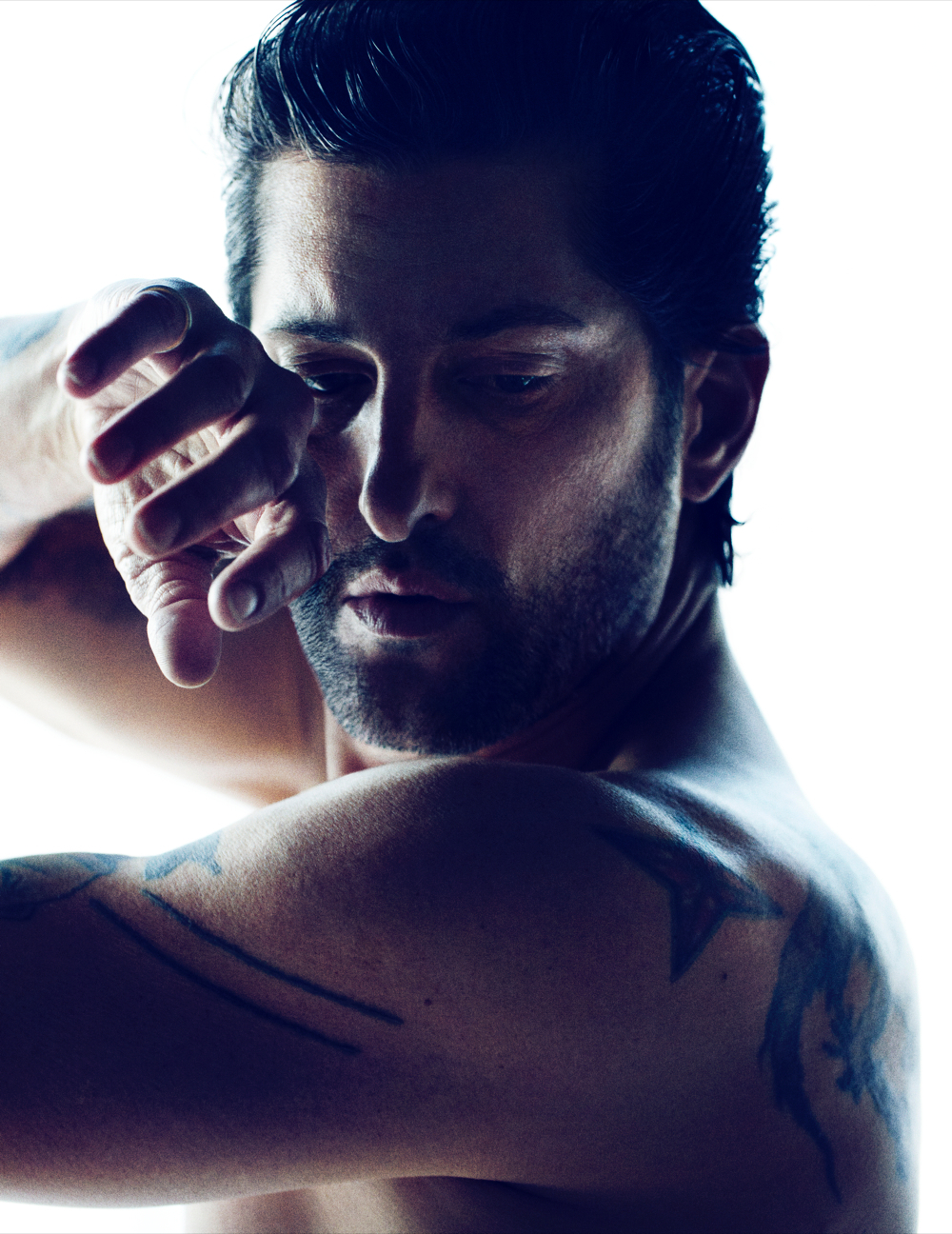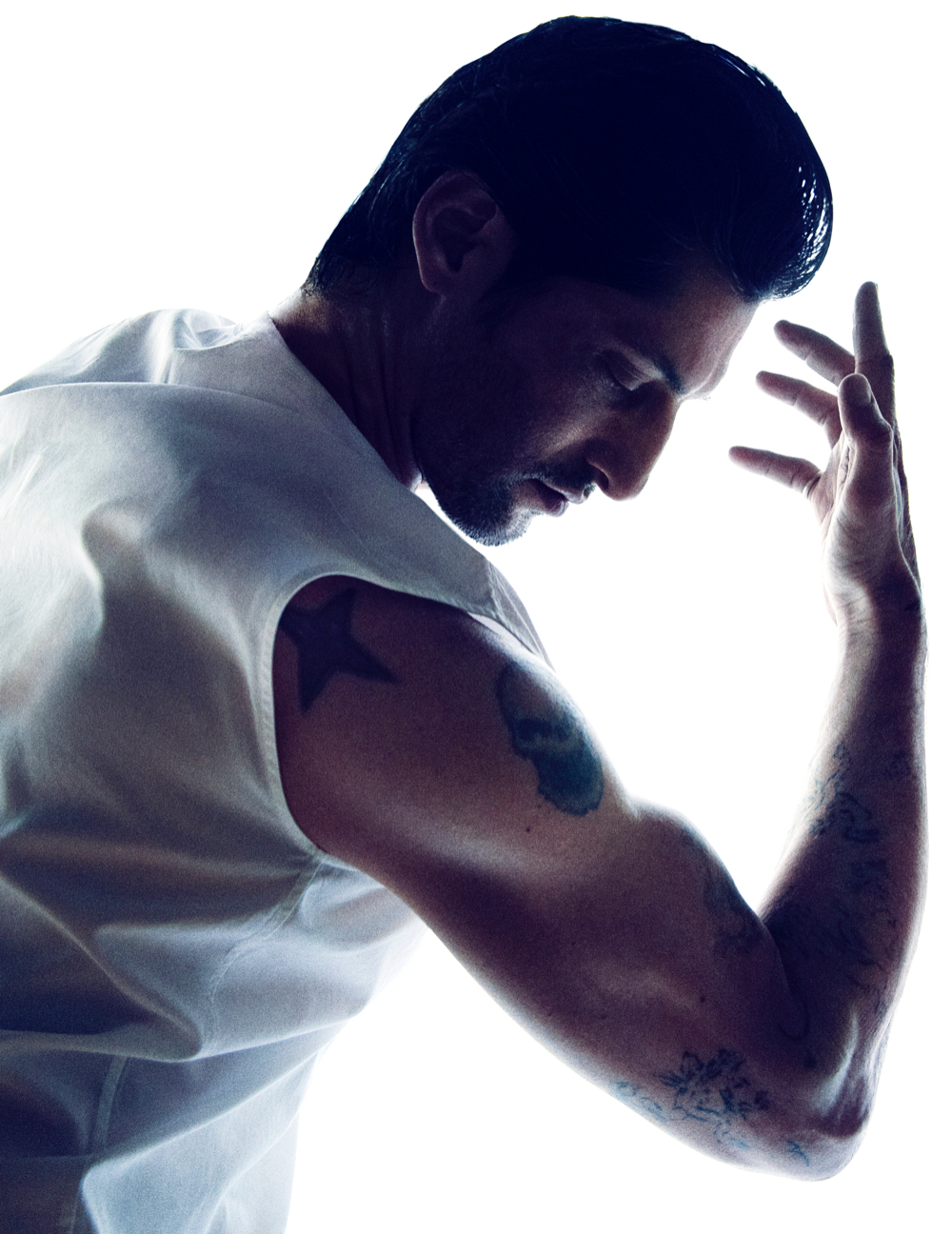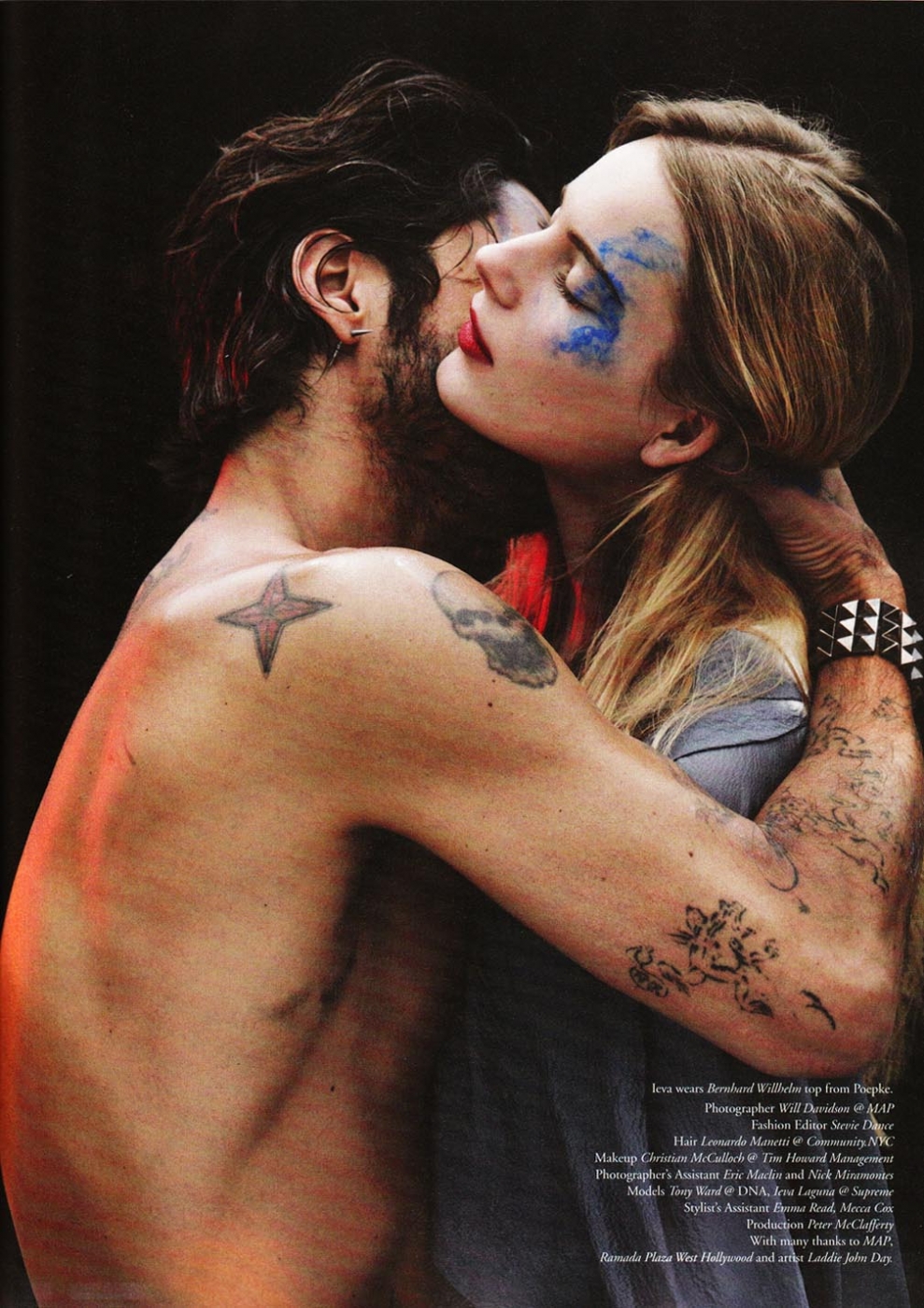 Mr. Ward is nothing short of a 20th Century renaissance man, dabbling his feet in everything from modeling and photography to acting and writing. Making his debut in the 80's, appearing in Calvin Klein's underwear campaign shot by Herb Ritts, Tony then achieved notoriety in the early 90's for dating Madonna, appearing in her Justify My Love video and her controversial "Sex" book. Tony has since then embraced the titles of father, husband, top model, actor, artist, photographer, designer, painter, writer, producer, and director. With a never ending and quite impressive resume, Ward has worked alongside with photographers like Karl Lagerfeld, Steven Klein, Steven Meisel and Terry Richardson and for fashion designers such as Roberto Cavalli, Chanel, Dolce & Gabbana, Diesel, Fendi, H & M and Hugo Boss. He landed his first starring role in 1996 in the movie Hustler White. Ward has his own fashion brand SixInTheFace "Hand Ravaged Clothing by Mr.Ward". All we can say is, 22 tattoos on one man never looked so good.
