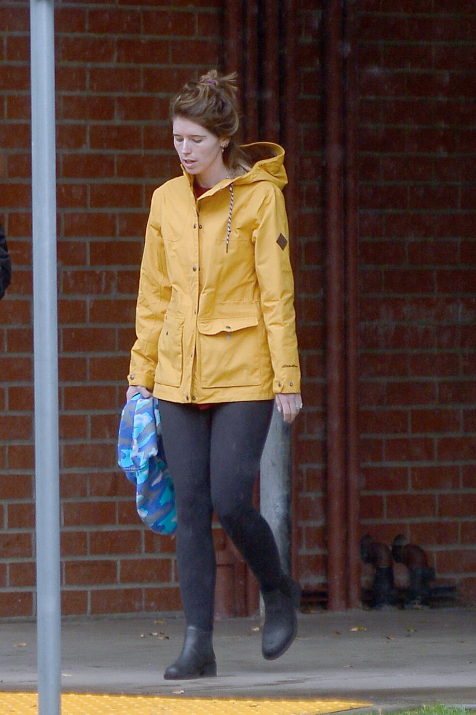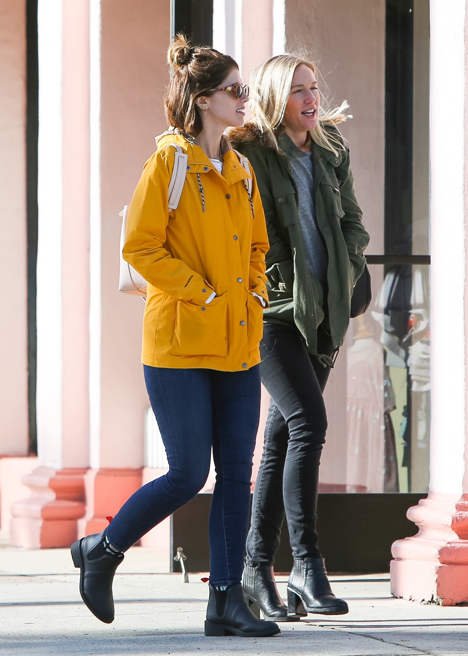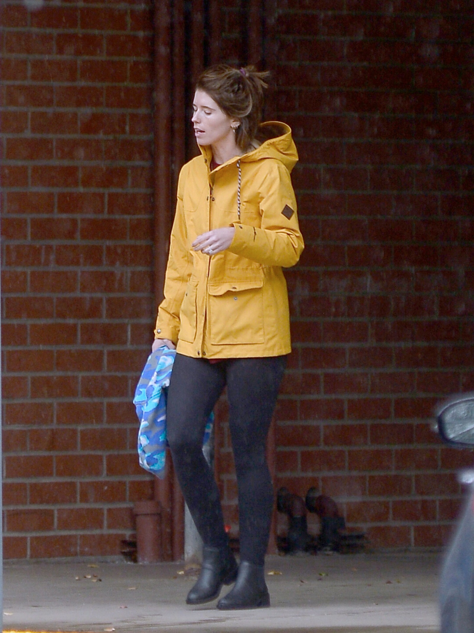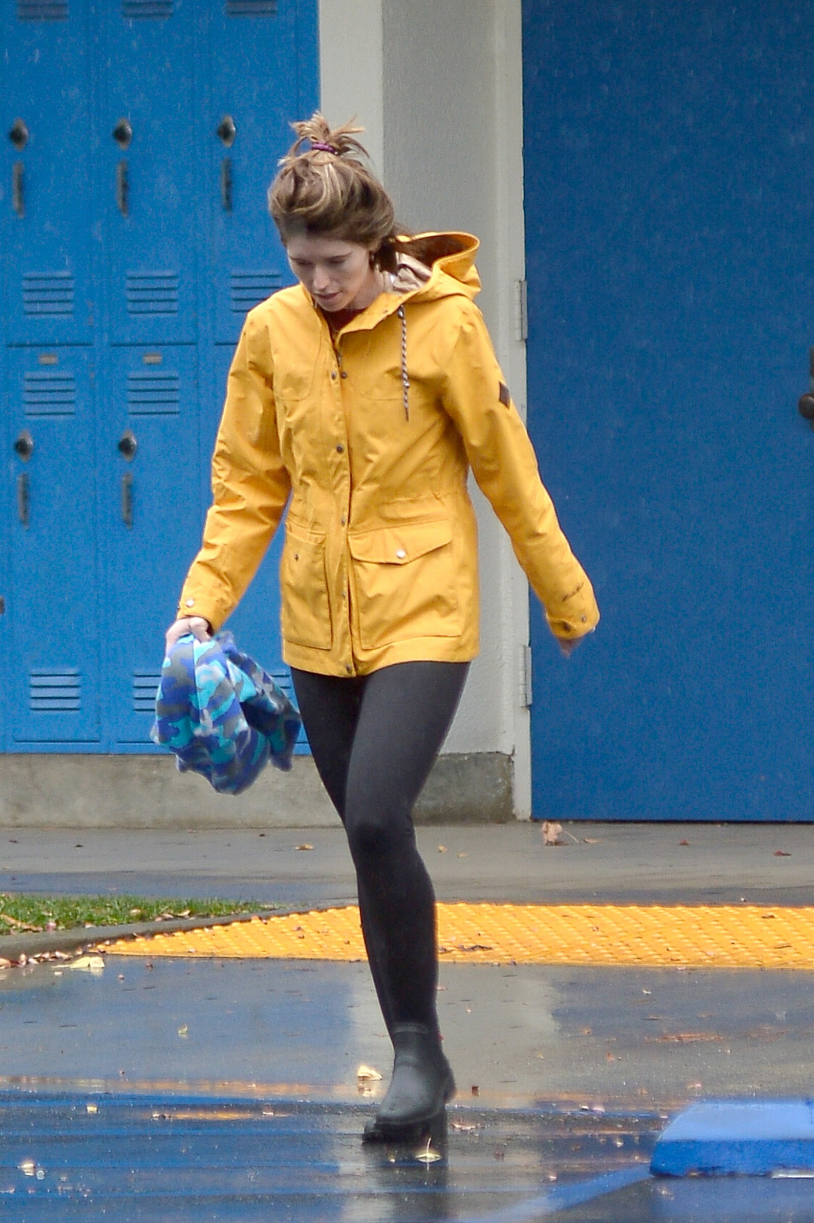 Bundled up! Katherine worked a pair of knee high black boots, adding a sense of edginess to the otherwise polished look while also keeping her warm