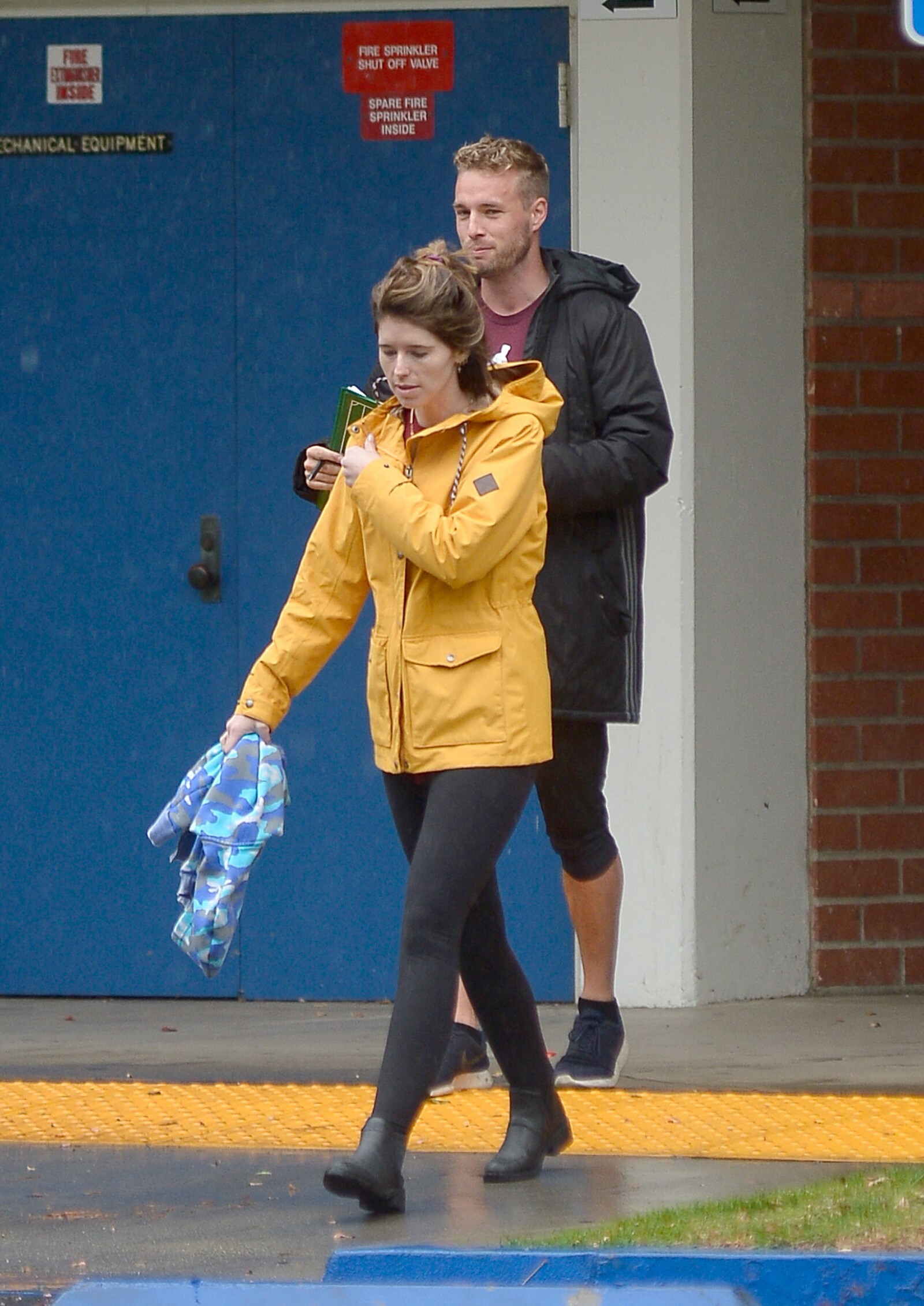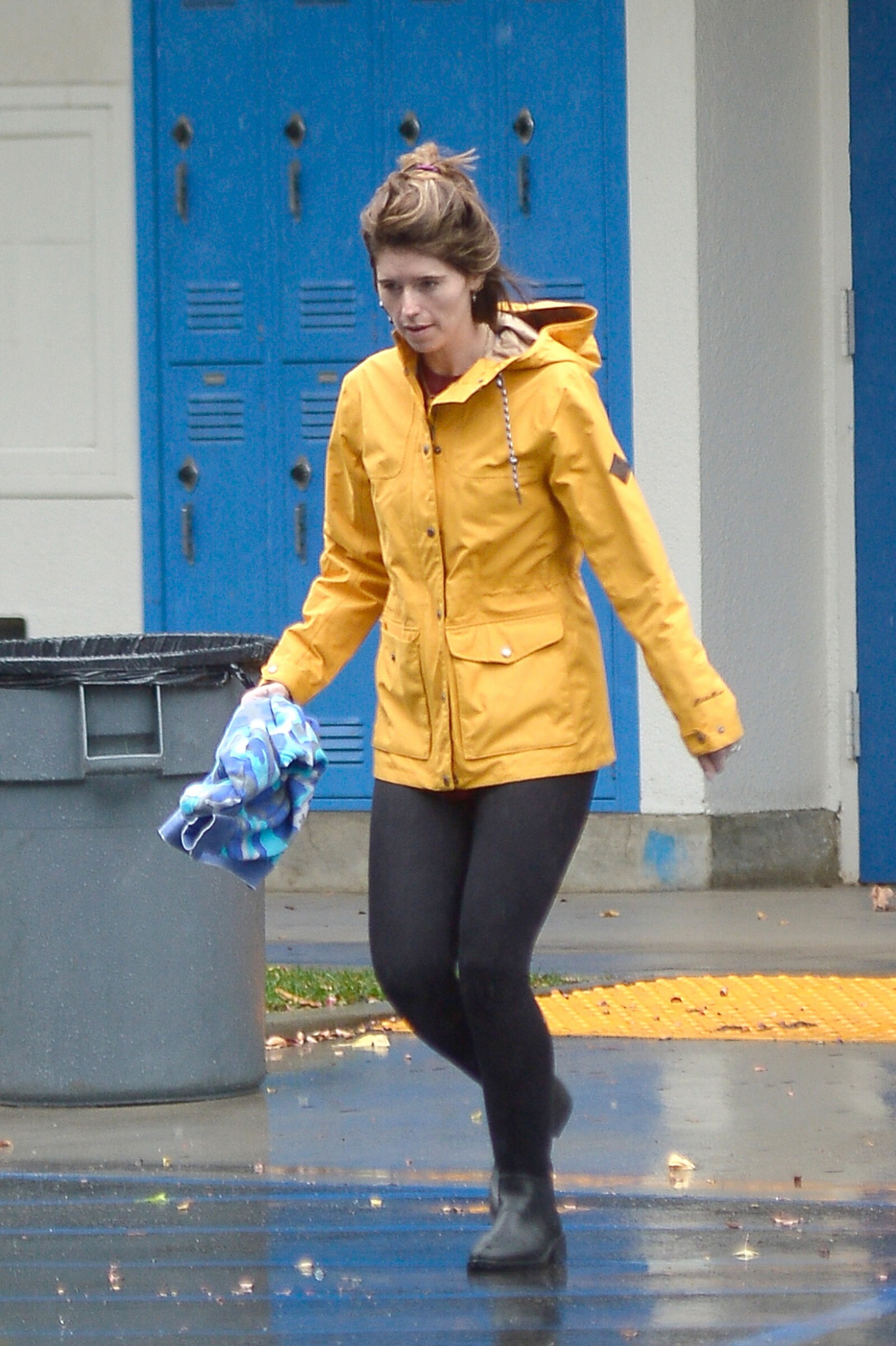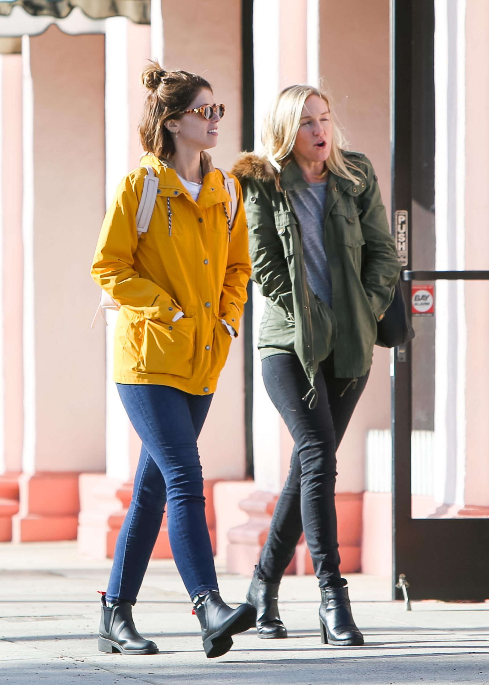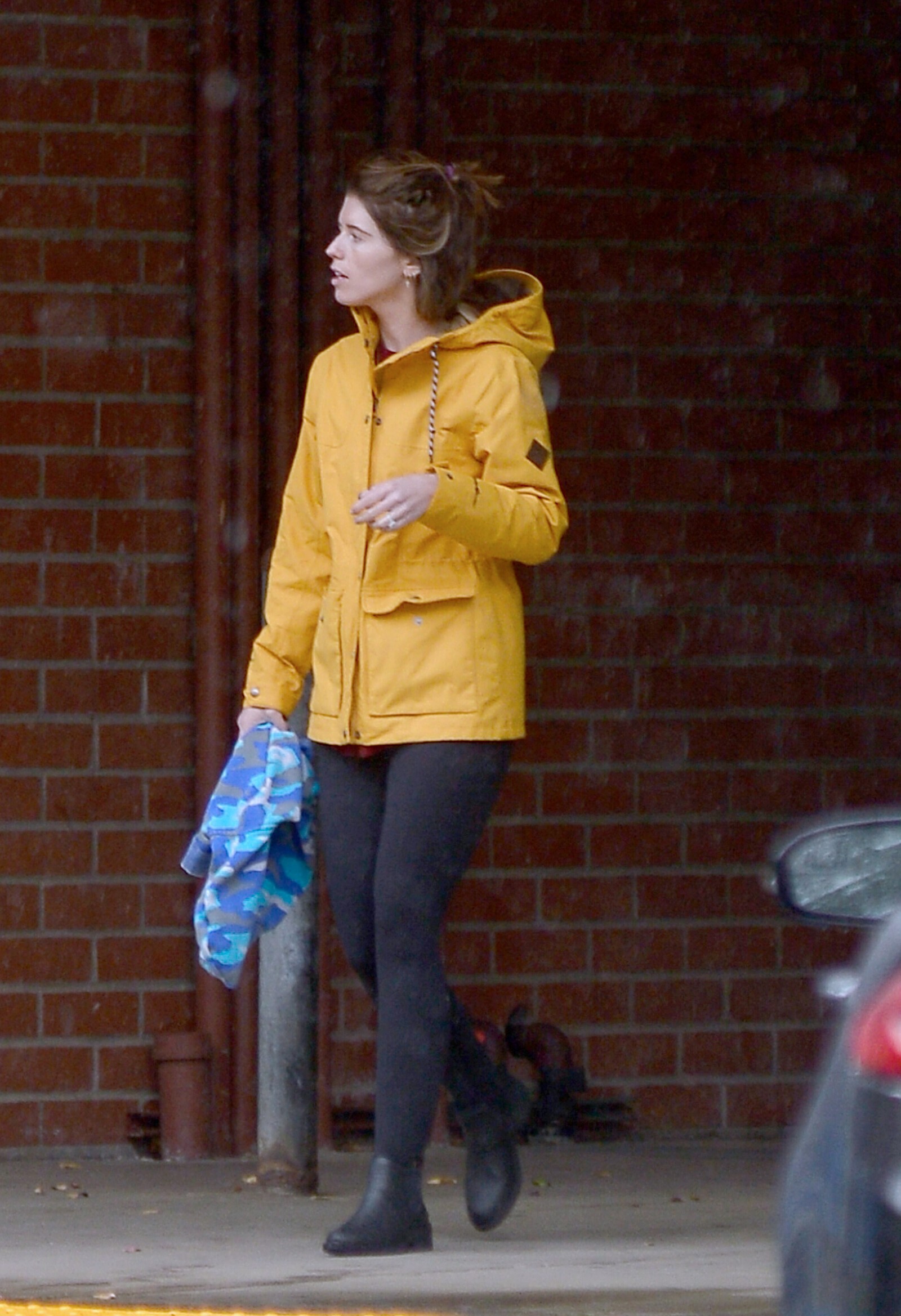 Bundled up! Katherine worked a pair of knee high black boots, adding a sense of edginess to the otherwise polished look while also keeping her warm