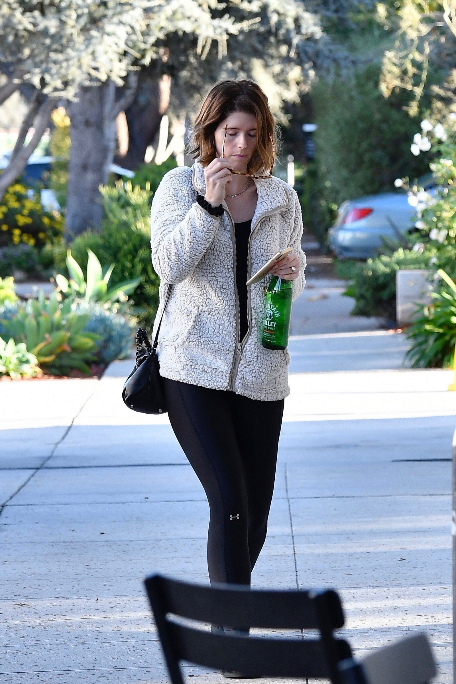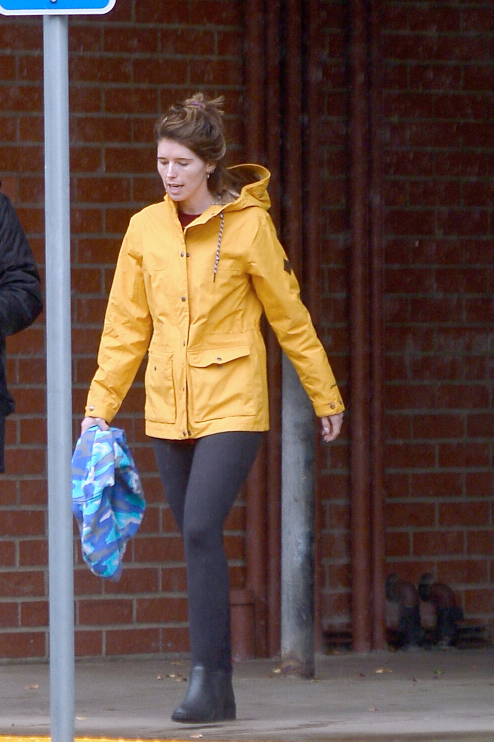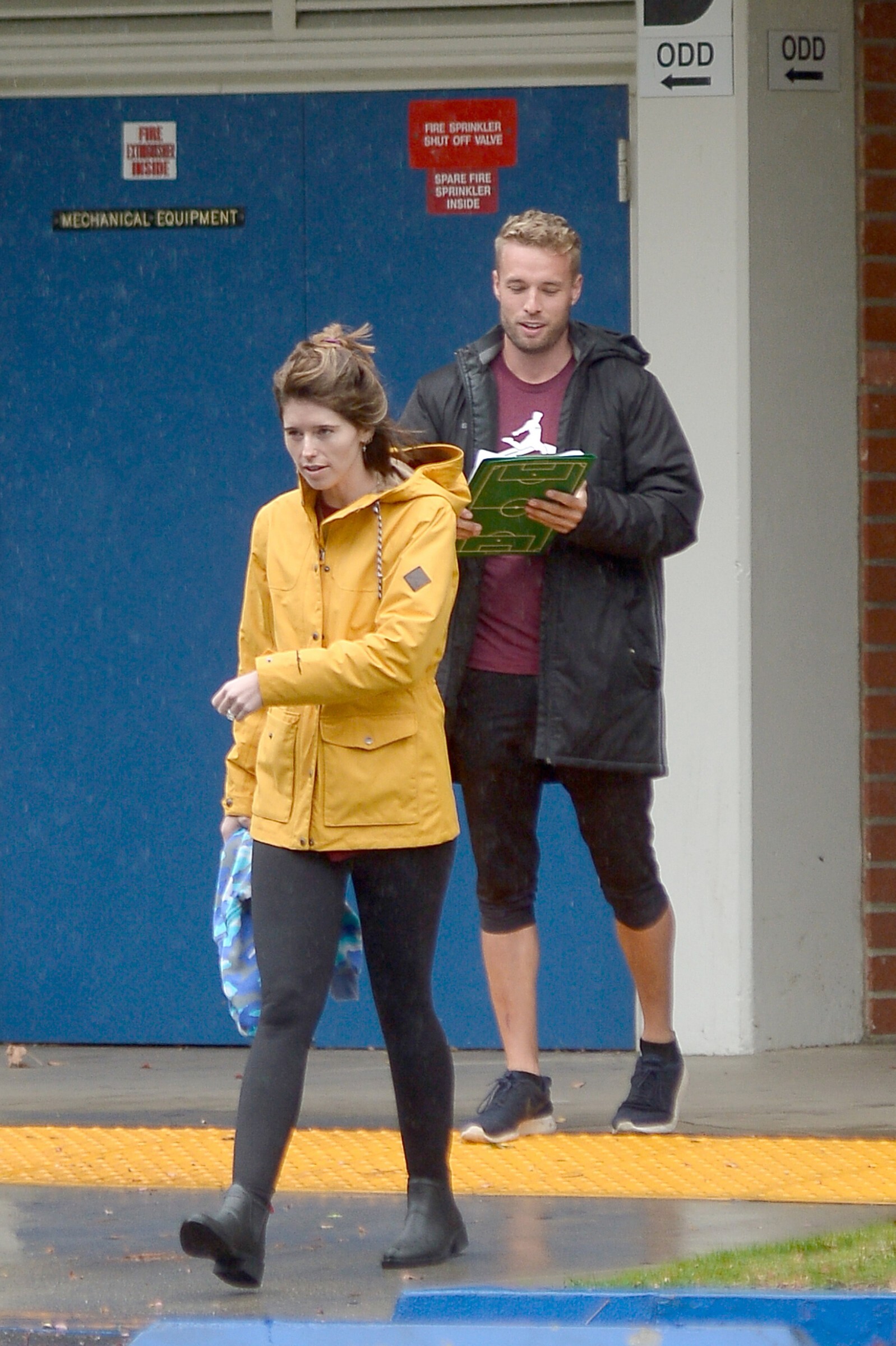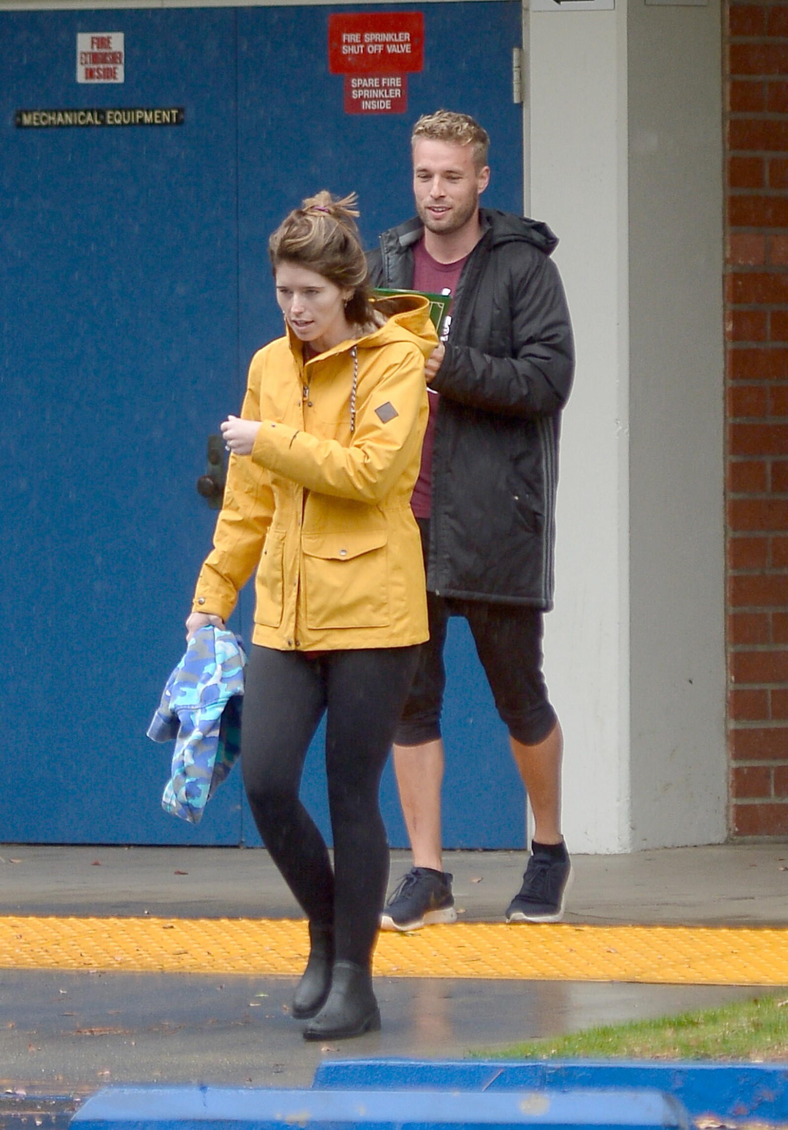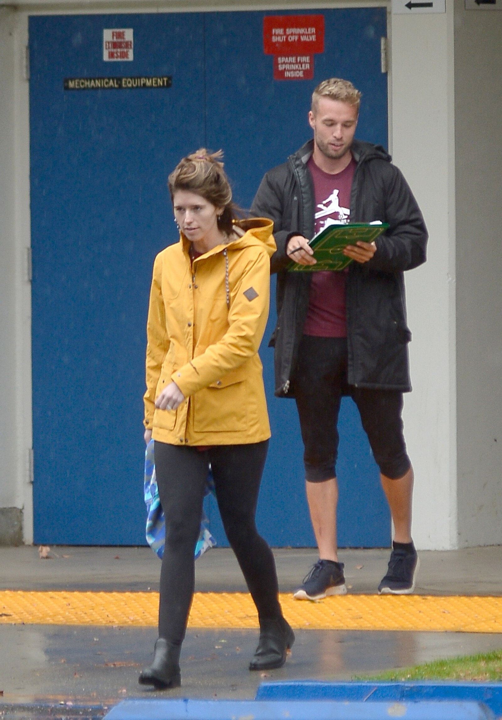 Bundled up! Katherine worked a pair of knee high black boots, adding a sense of edginess to the otherwise polished look while also keeping her warm