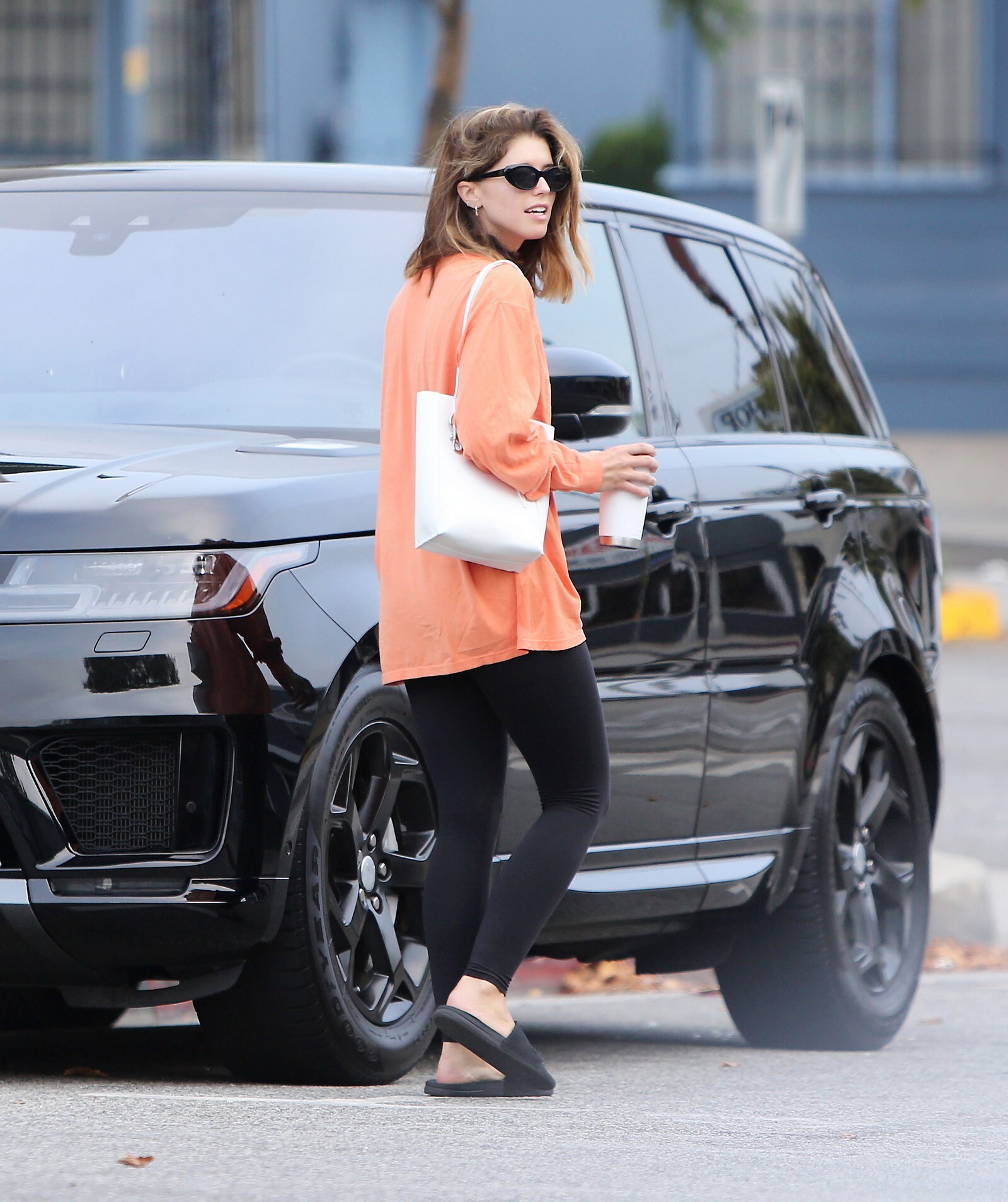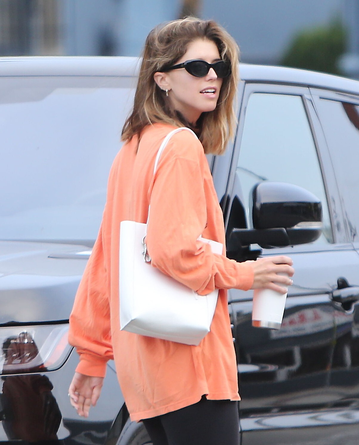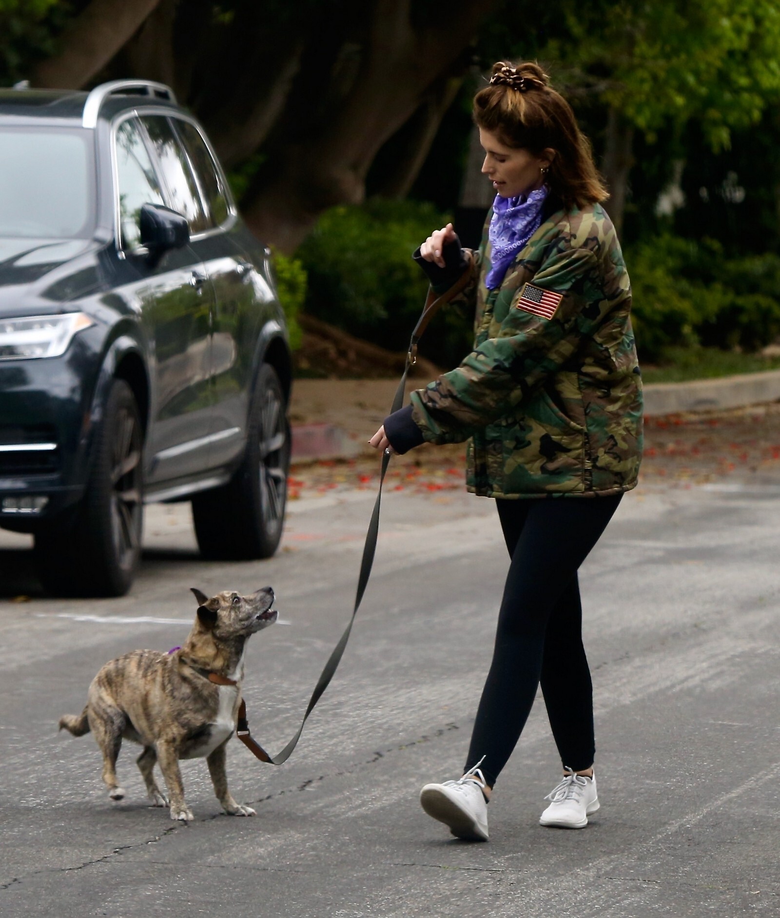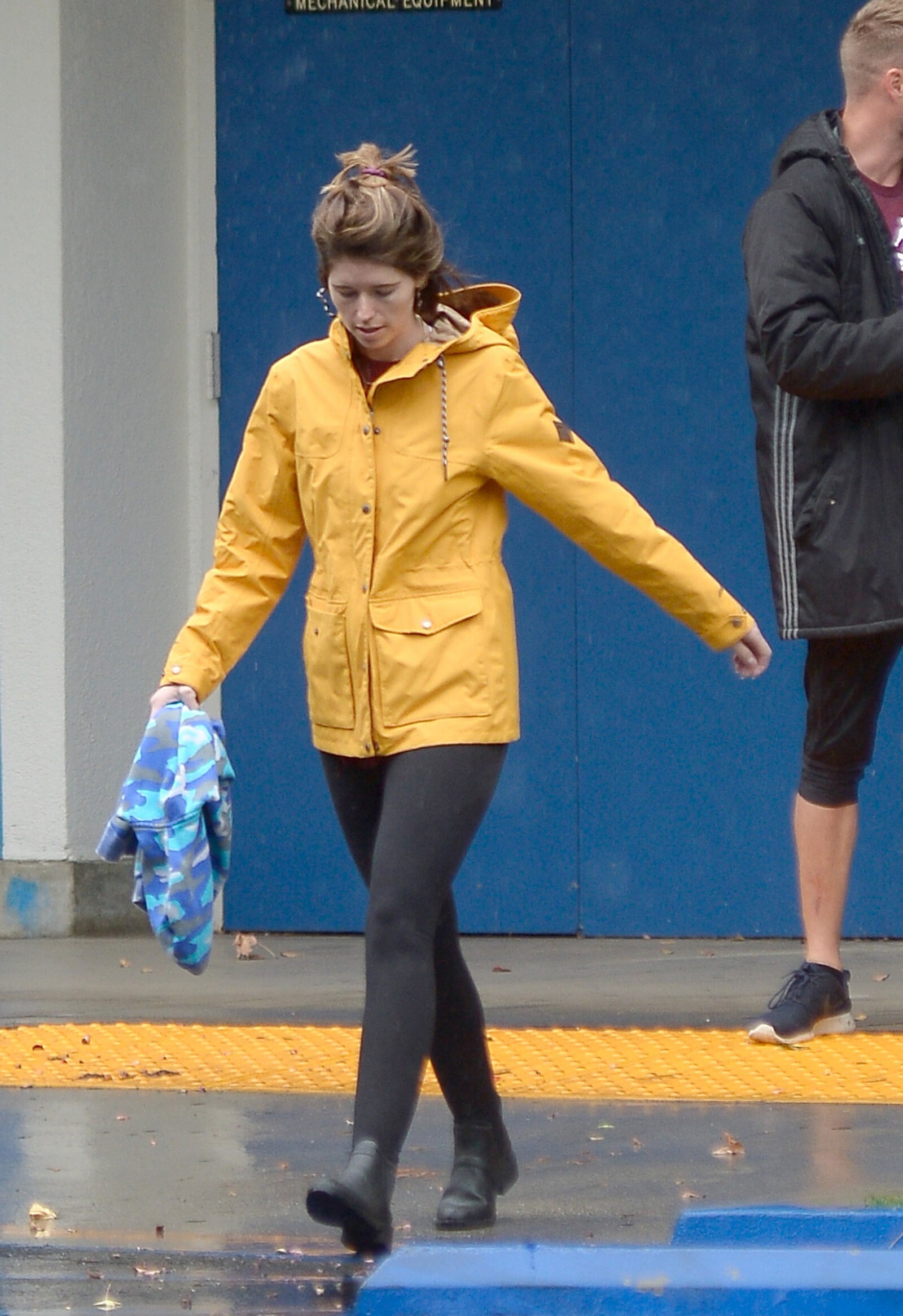 Bundled up! Katherine worked a pair of knee high black boots, adding a sense of edginess to the otherwise polished look while also keeping her warm
