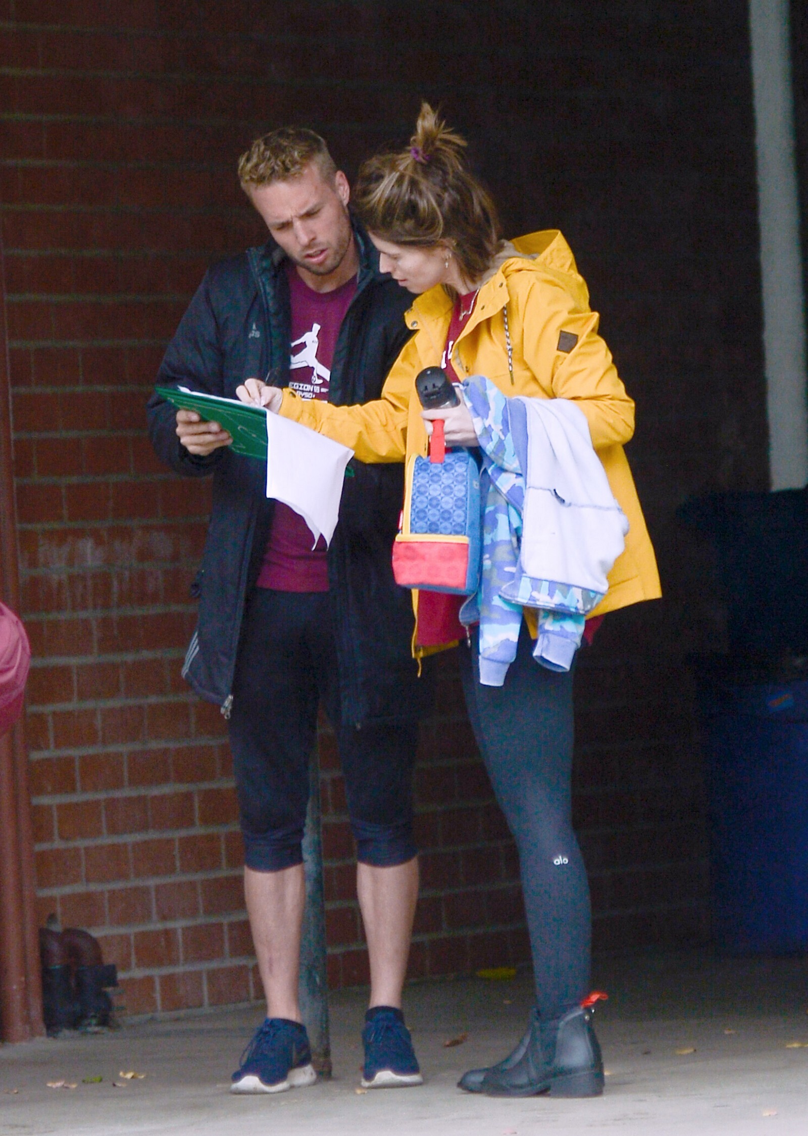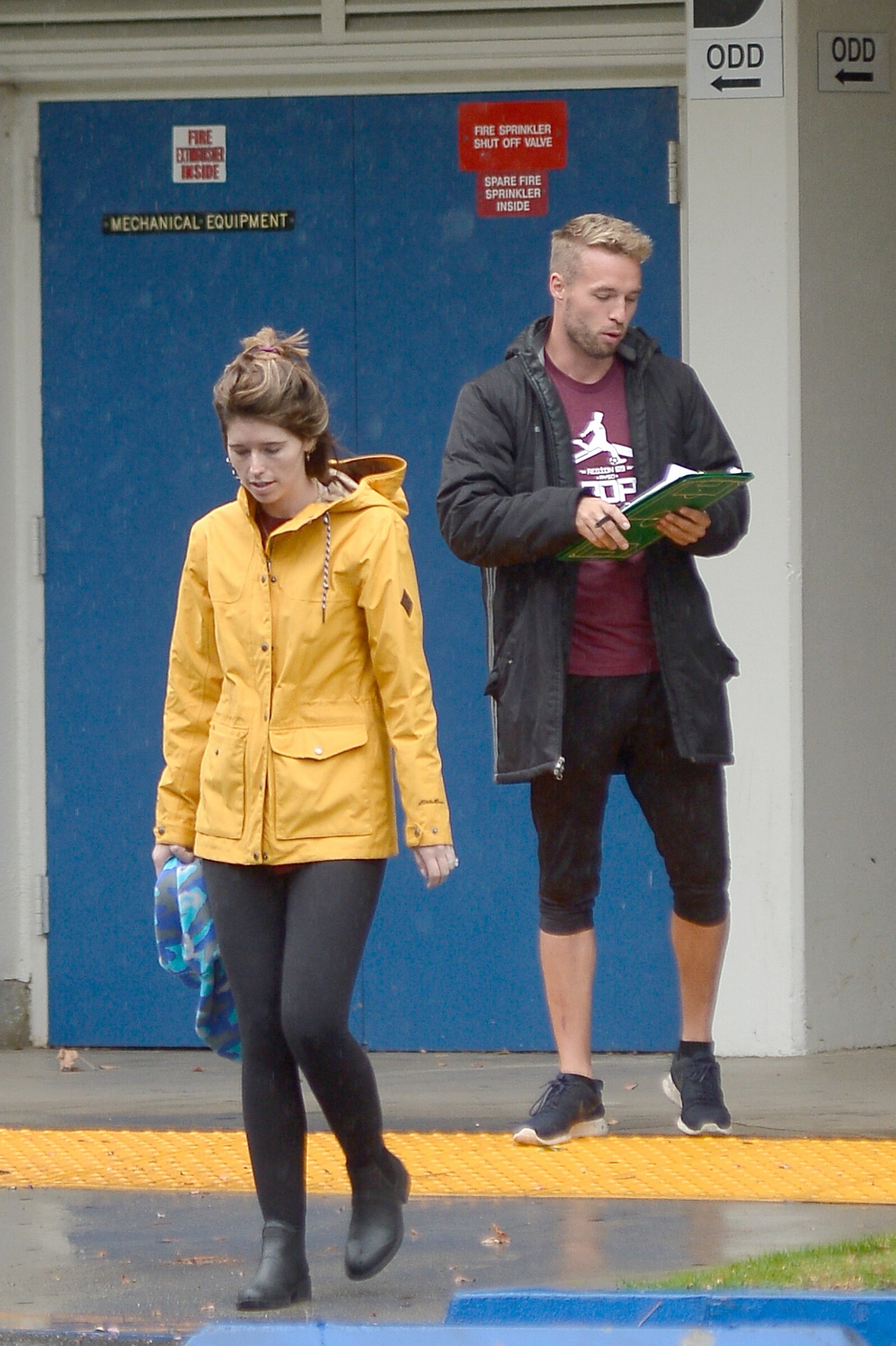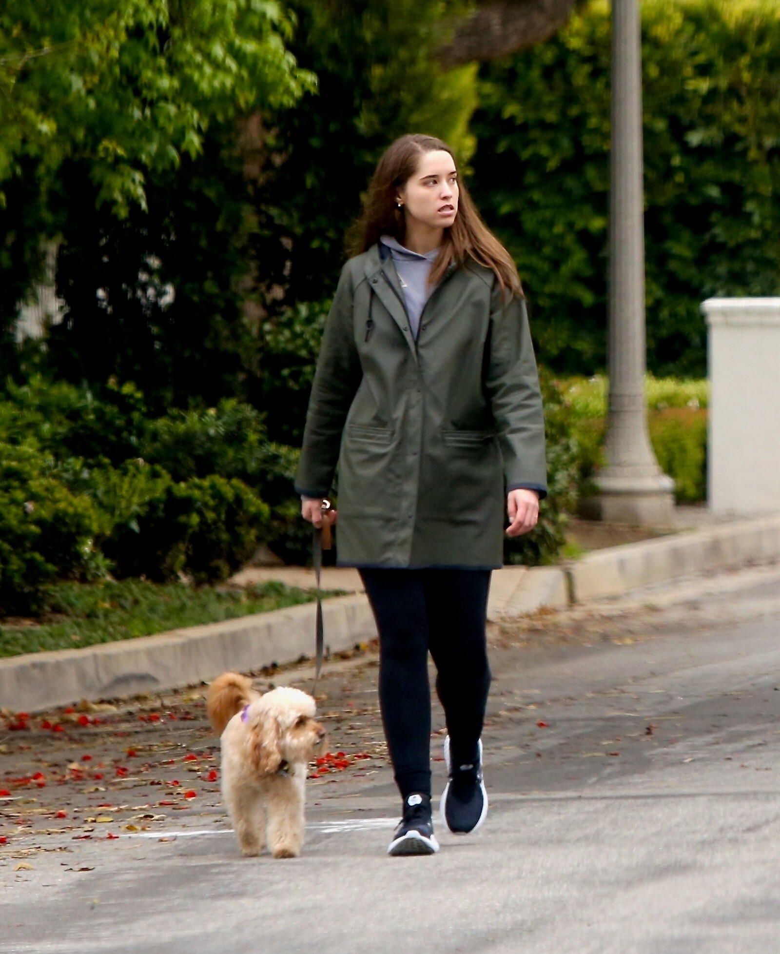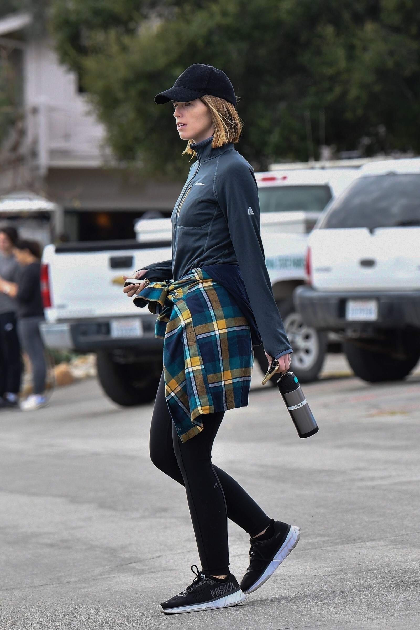 Bundled up! Katherine worked a pair of knee high black boots, adding a sense of edginess to the otherwise polished look while also keeping her warm