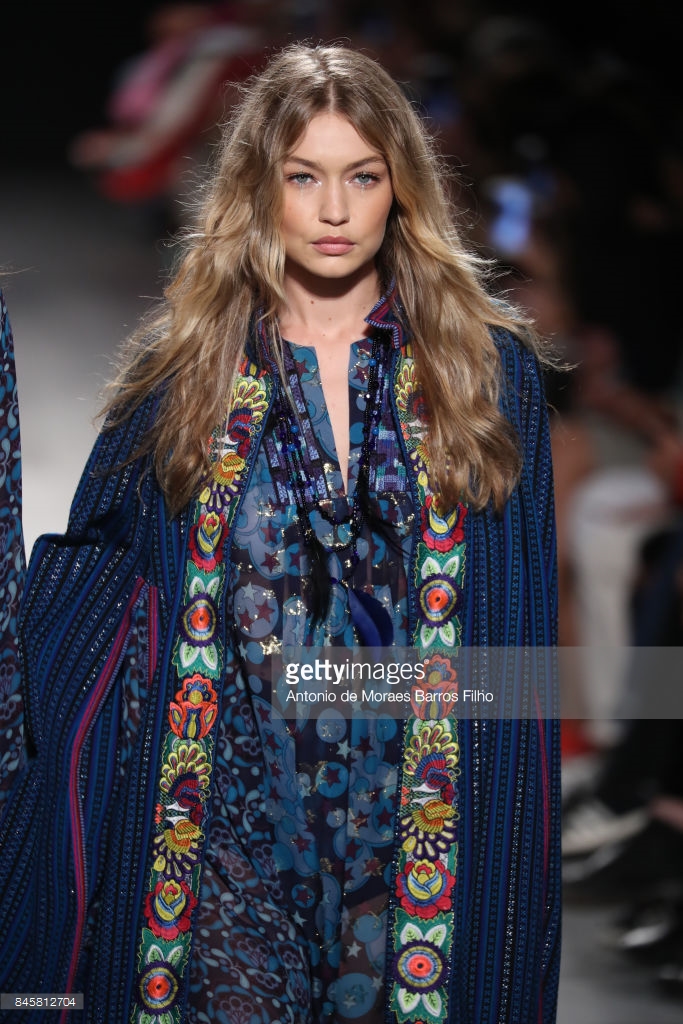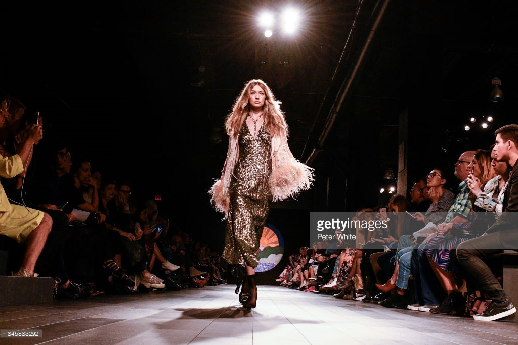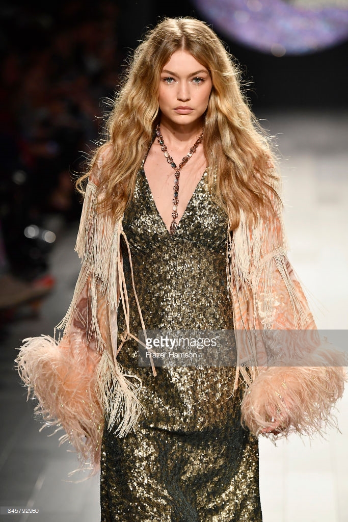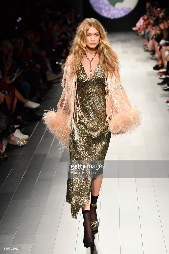Gigi Hadid walks the runway at Anna Su show during New York Fashion Week at Gallery 1, Skylight Clarkson Sq on September 11, 2017 in NYC.