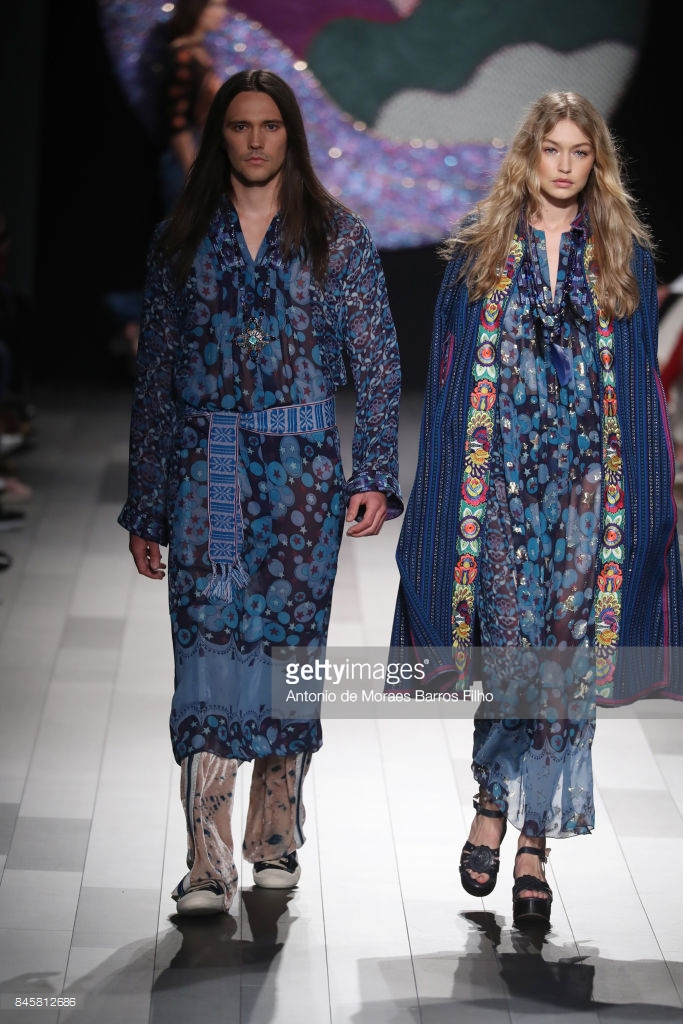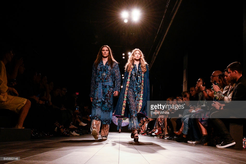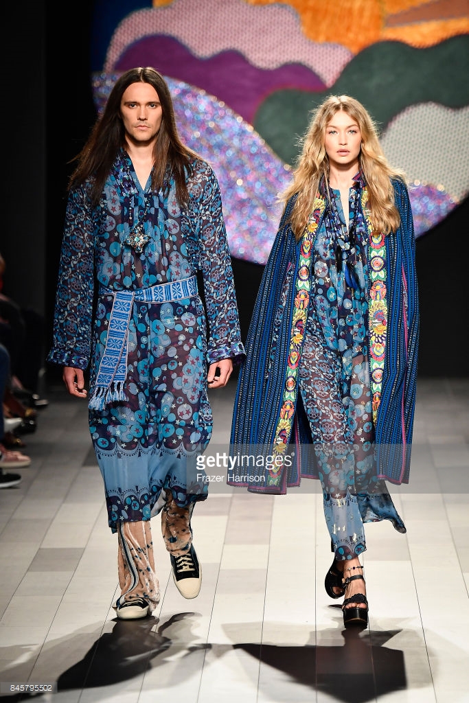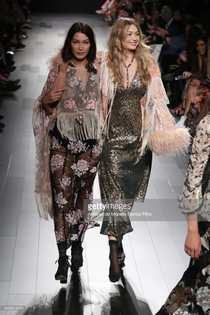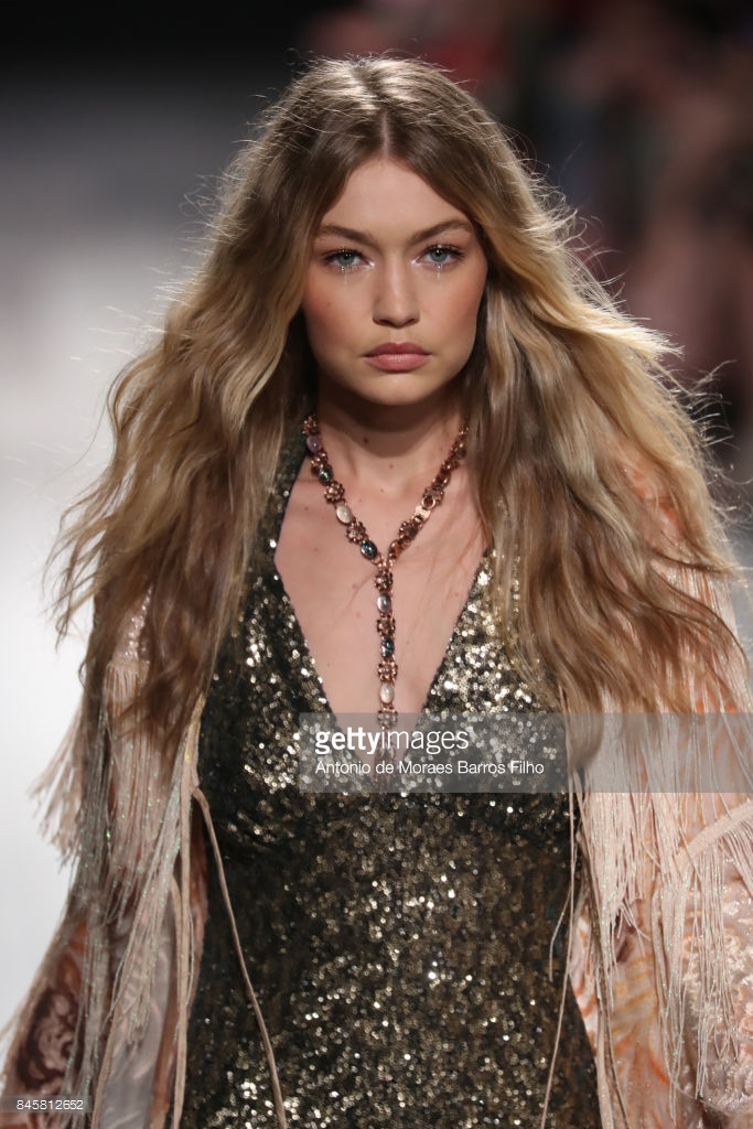 Gigi Hadid walks the runway at Anna Su show during New York Fashion Week at Gallery 1, Skylight Clarkson Sq on September 11, 2017 in NYC.