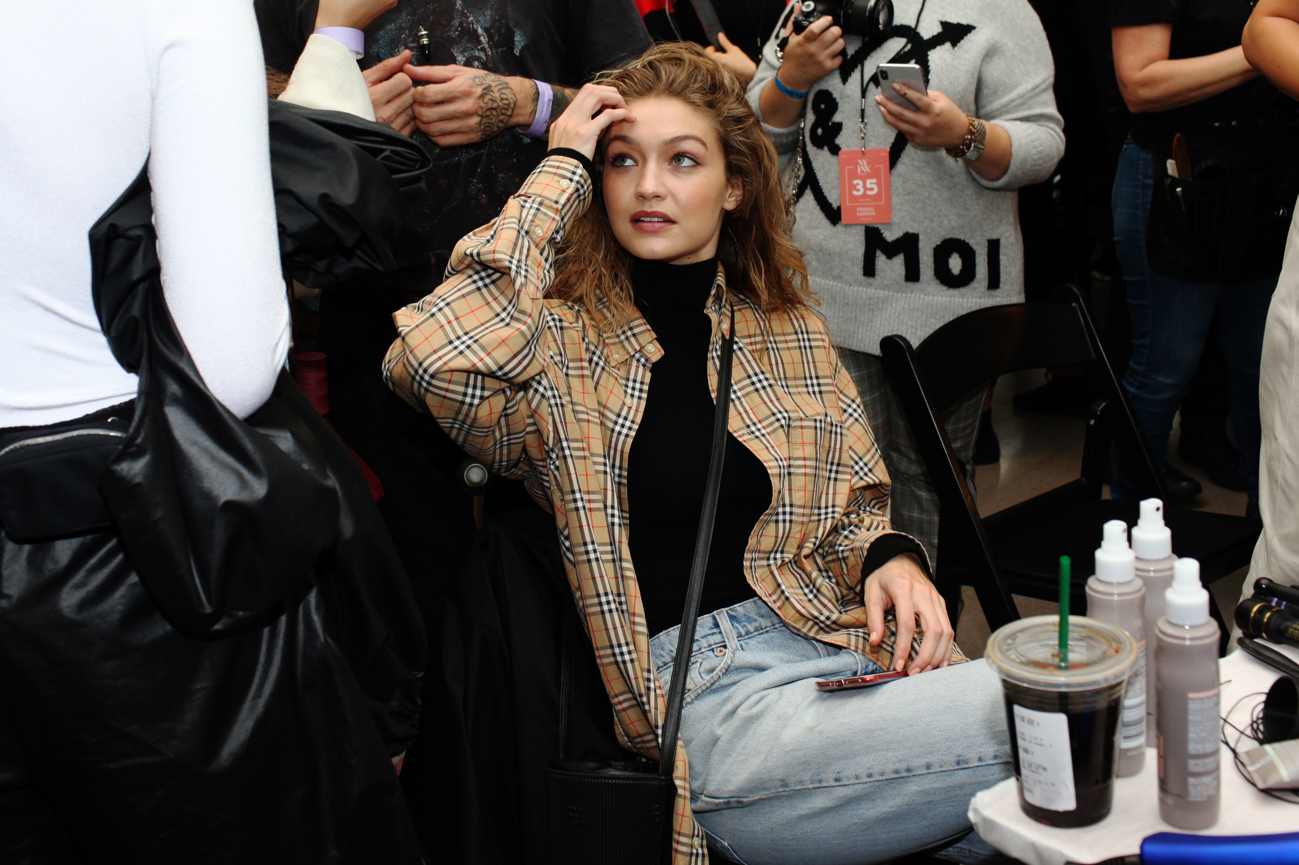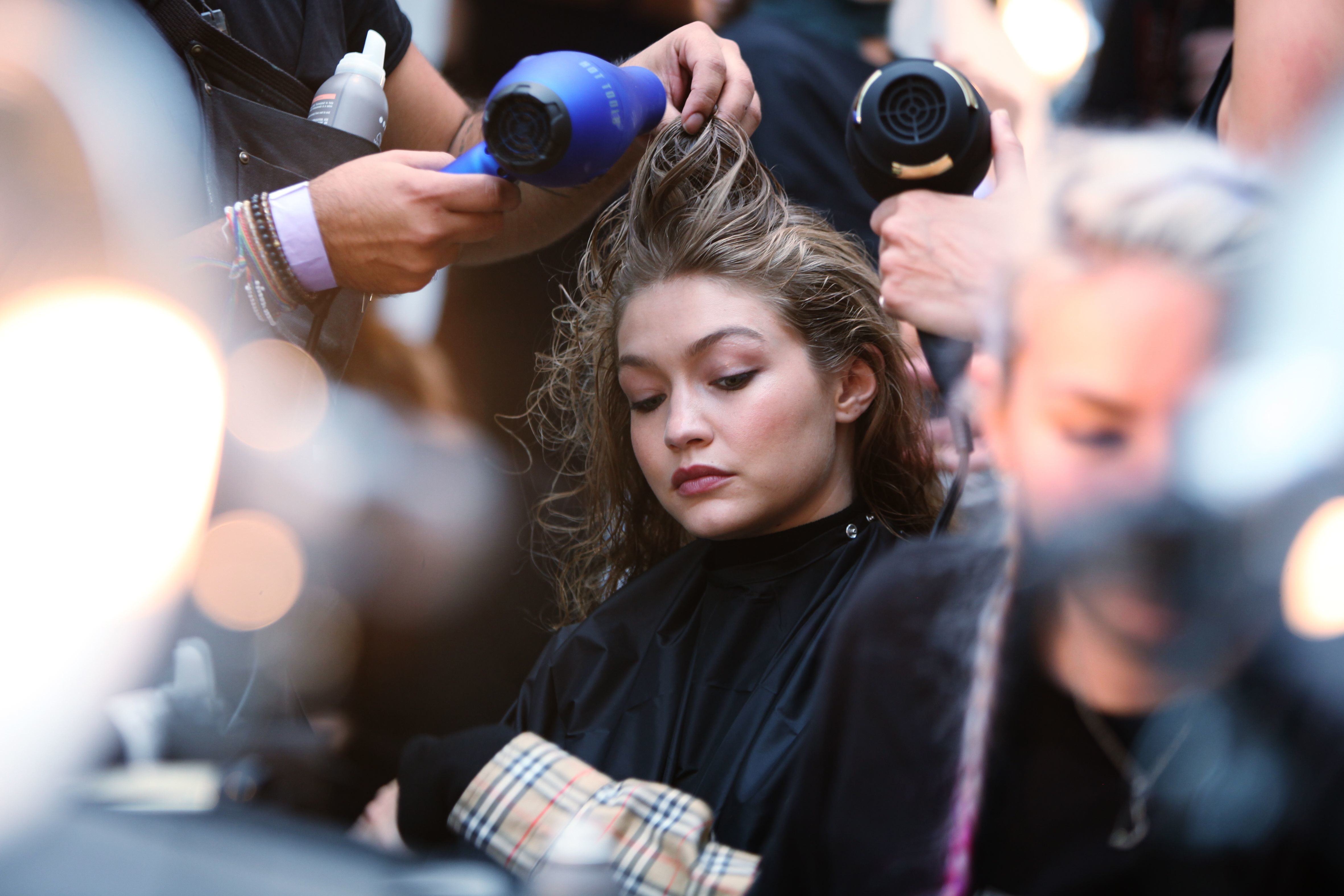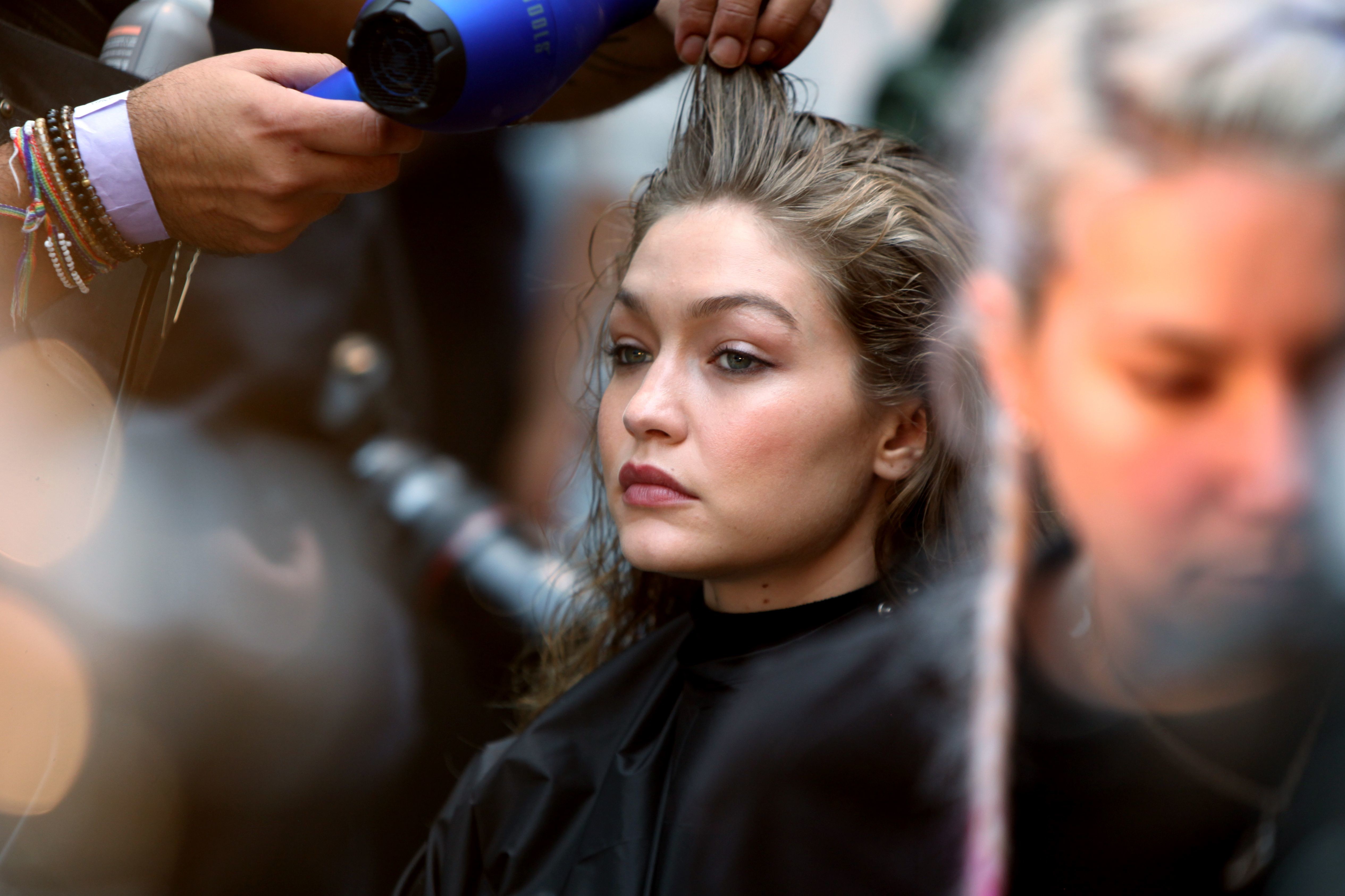Gigi Hadid backstage before the Ralph Lauren show in New York City - Sep 7, 2018