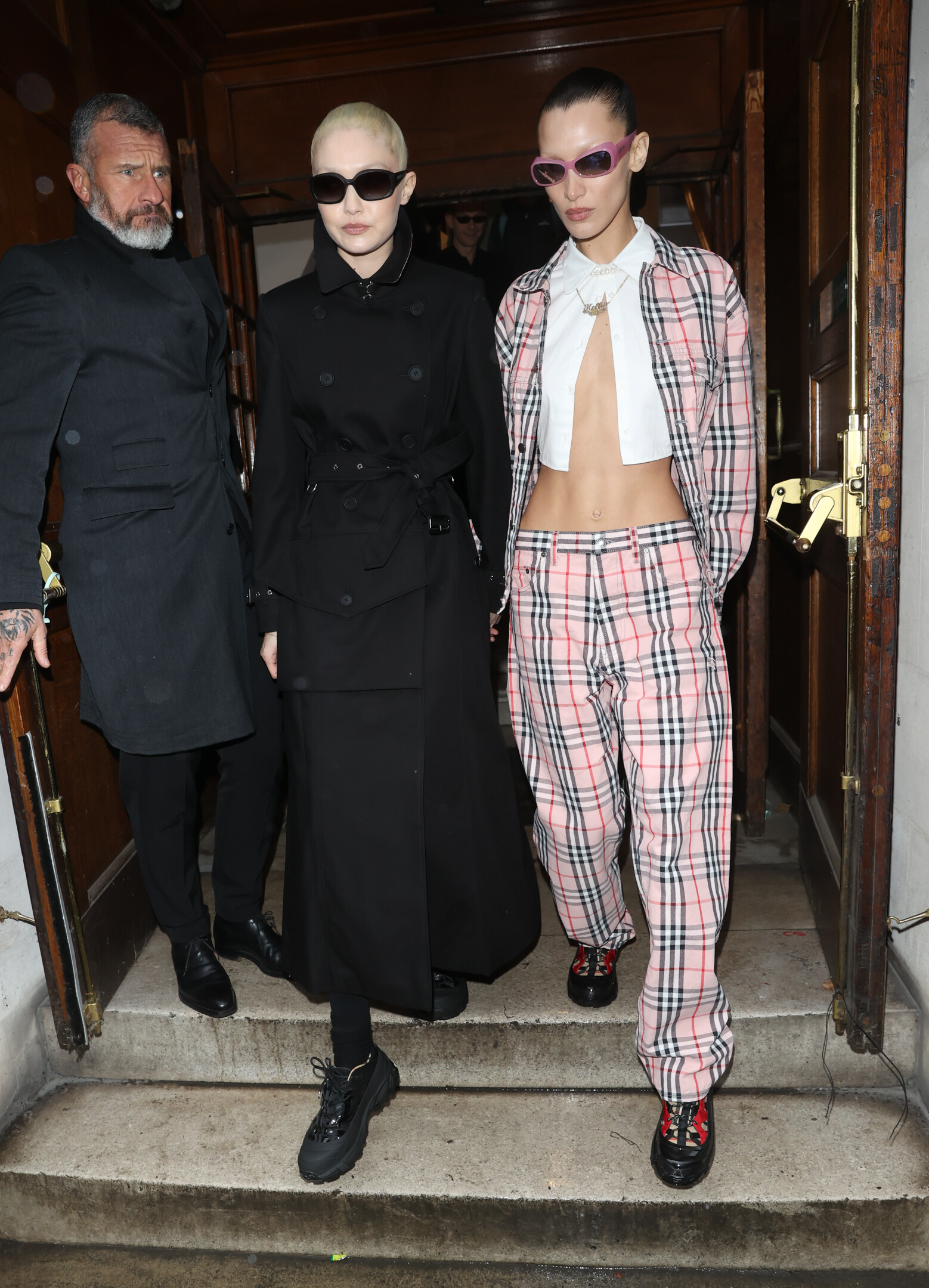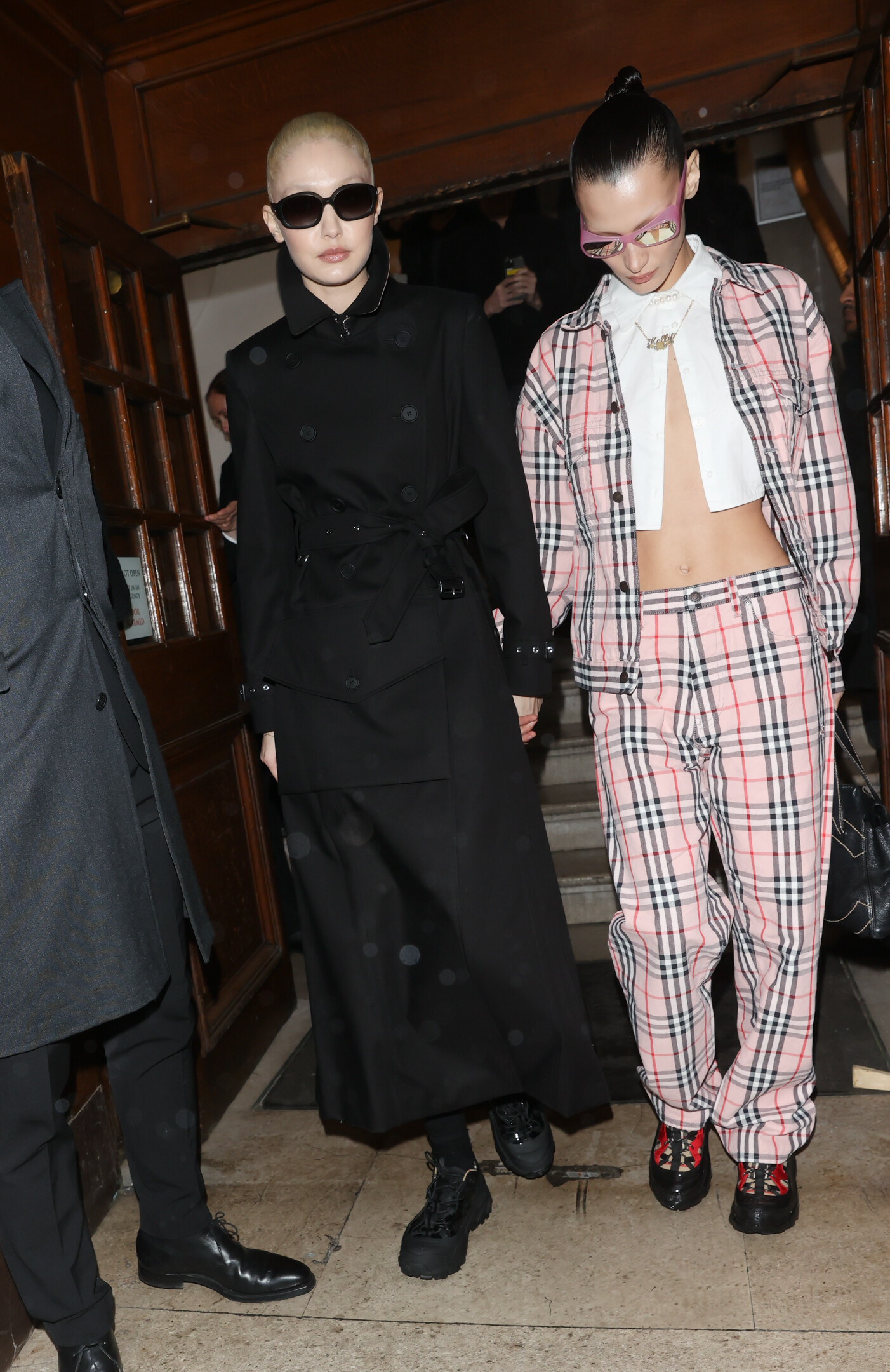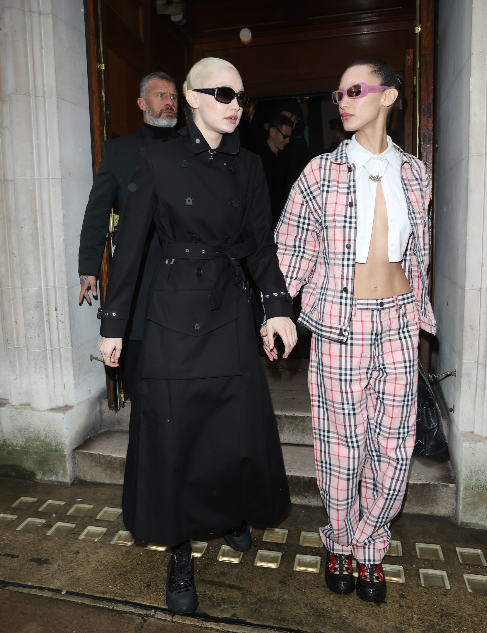 With Bella Hadid outside the Burberry A/W 2022 Runway Show in London - 3/11/22