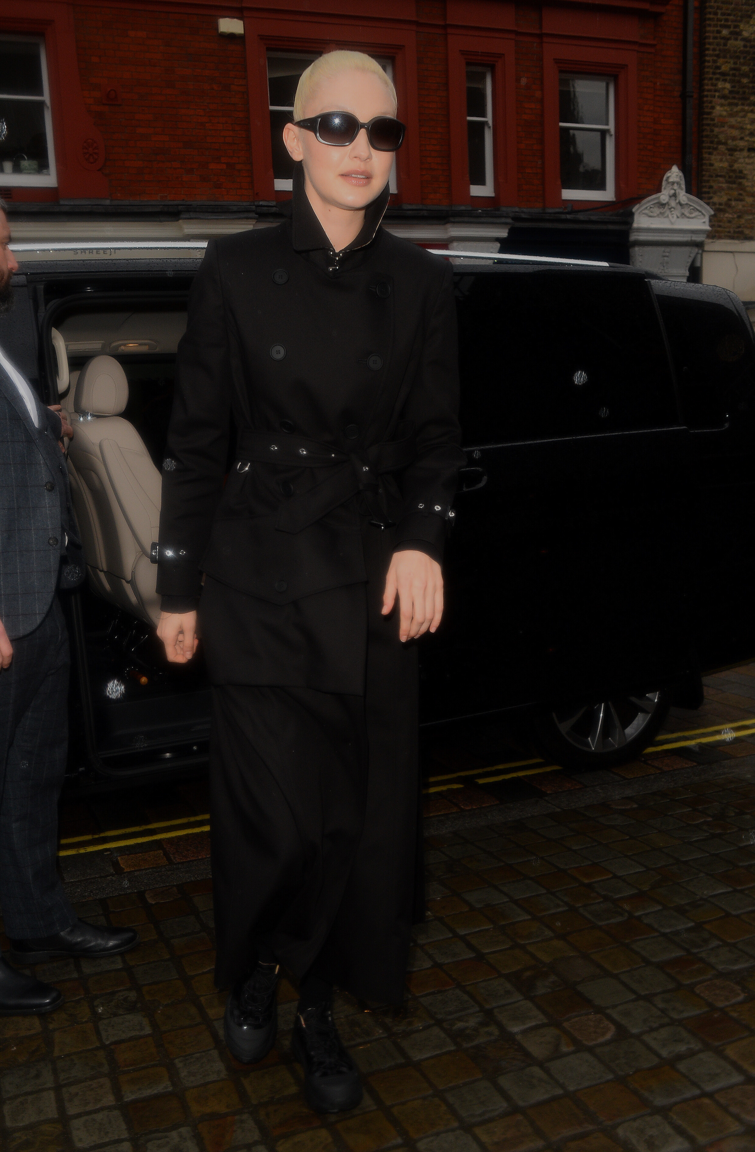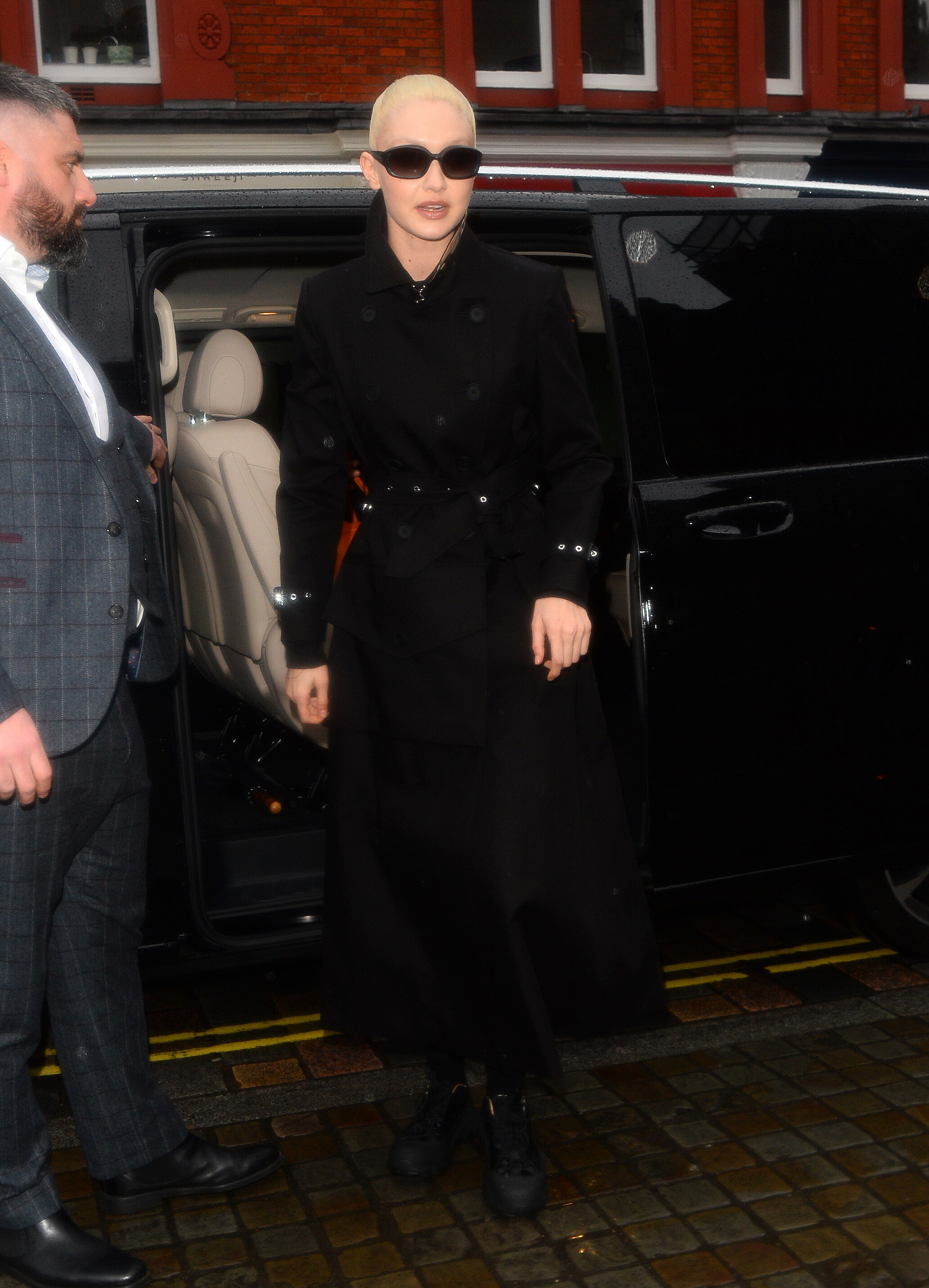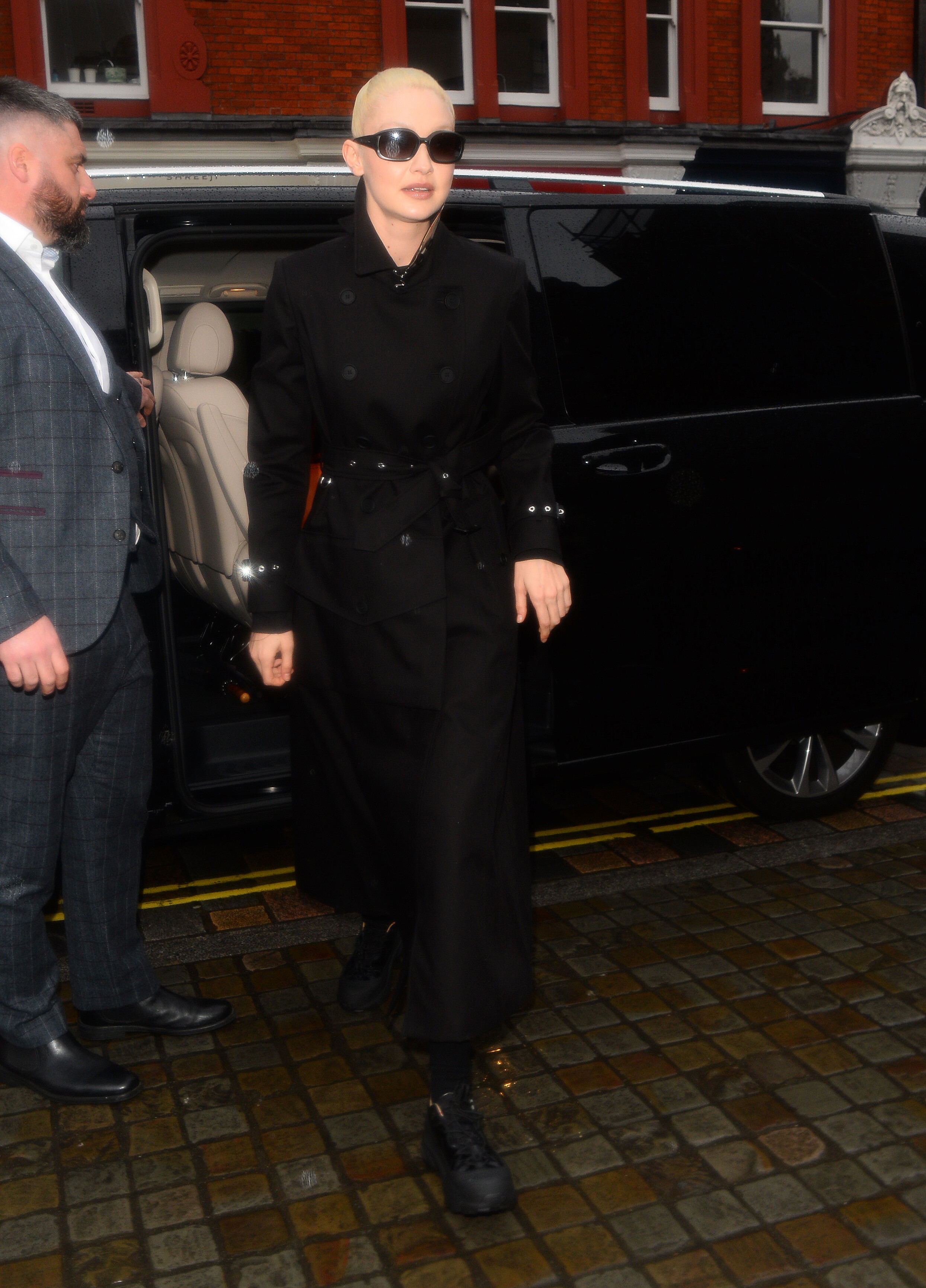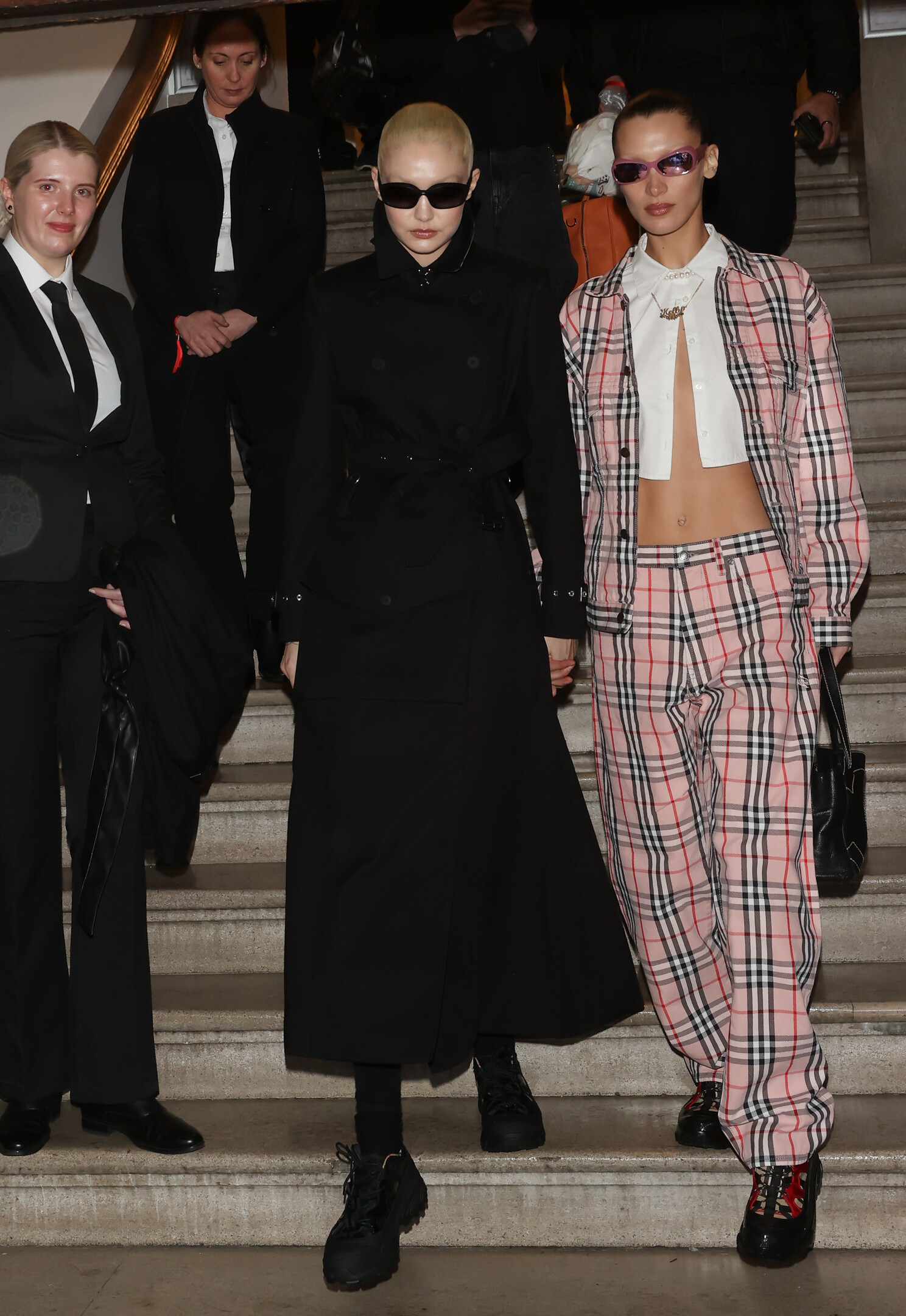 With Bella Hadid outside the Burberry A/W 2022 Runway Show in London - 3/11/22