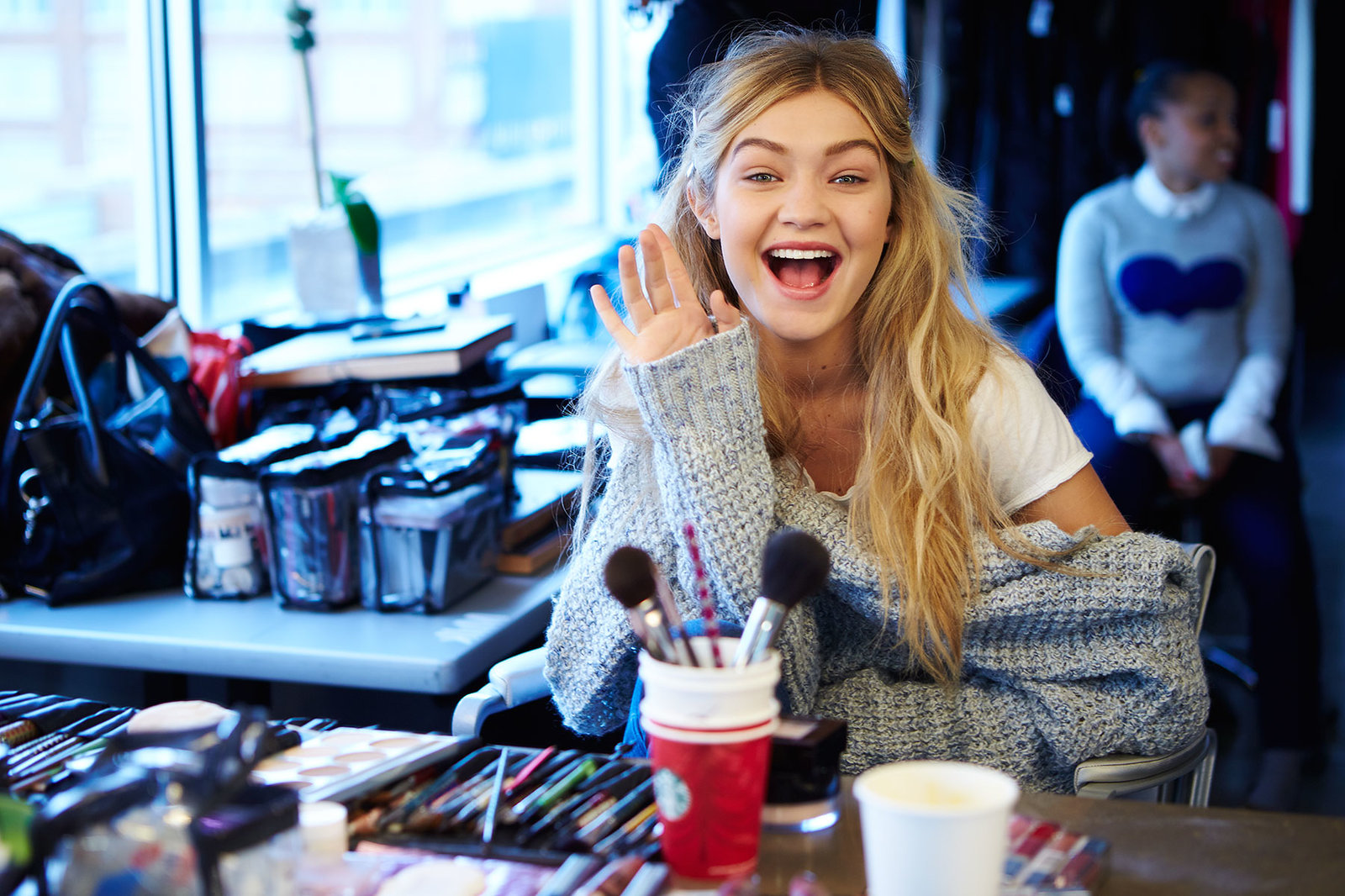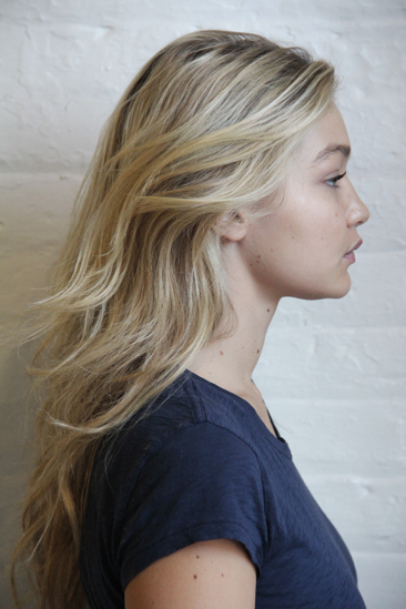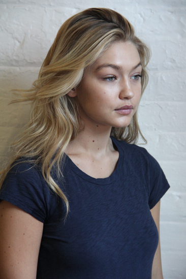 Starting this morning, she’ll have access to more than just concealer: Hadid, who kicked off her career as a Guess Kids model at age two, has soaked up a lifetime of beauty advice on set—and she’s ready to put it to good use with the company’s vibrant arsenal of high-impact eye shadows and lipsticks, as well as its skin-warming bronzers and lash-lengthening mascaras. In an effort to shake up her routine every few months, she says, “I pay attention to how every makeup artist does everything.” For example, after noticing how a wash of nude eye shadow made her eyes appear more open and their green color pop, she recently incorporated the technique into her own repertoire, mimicking the shape (“more round than winged”) and the brushes used to get the look. “You have to try different things to see what you like best.”