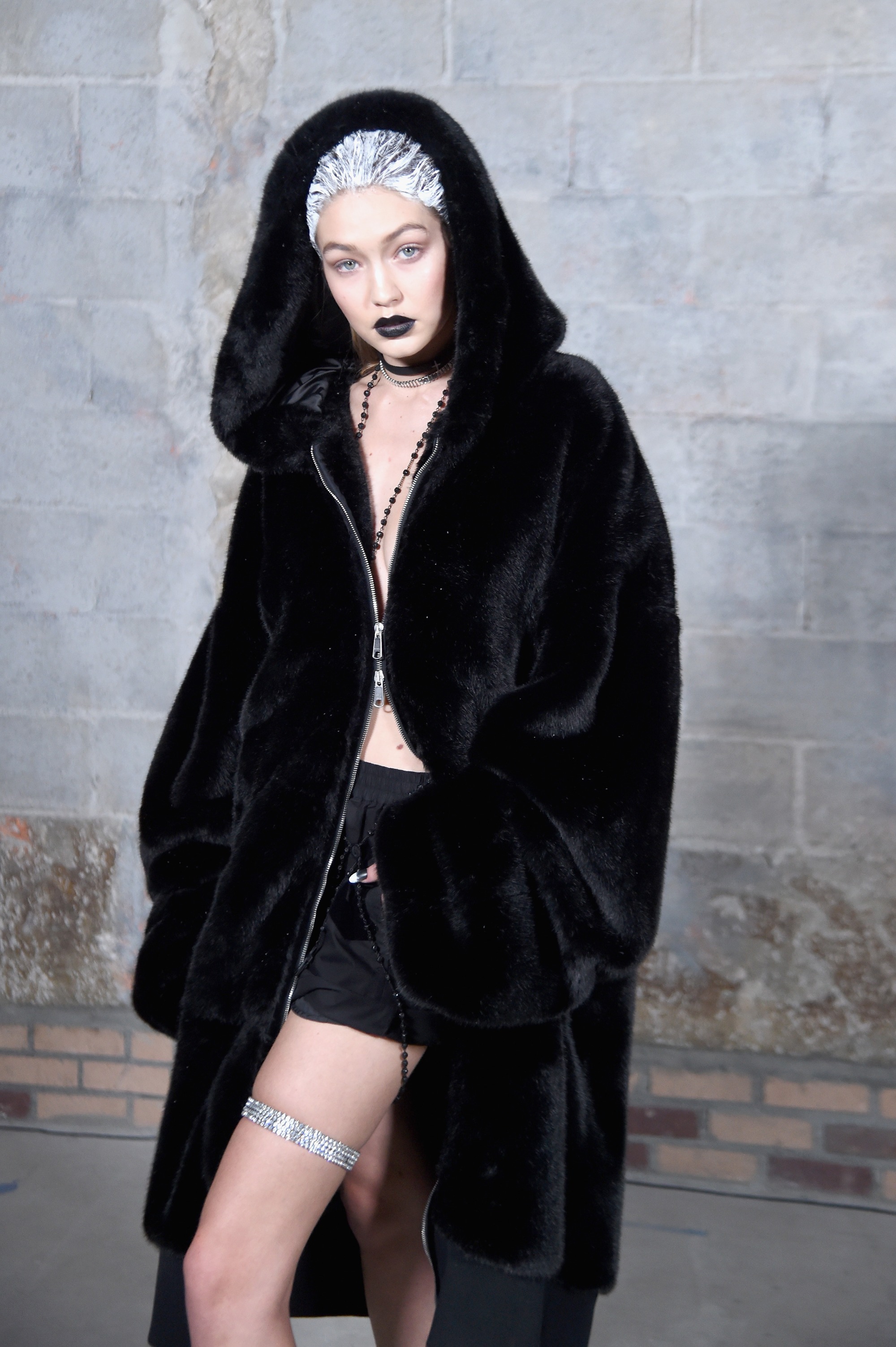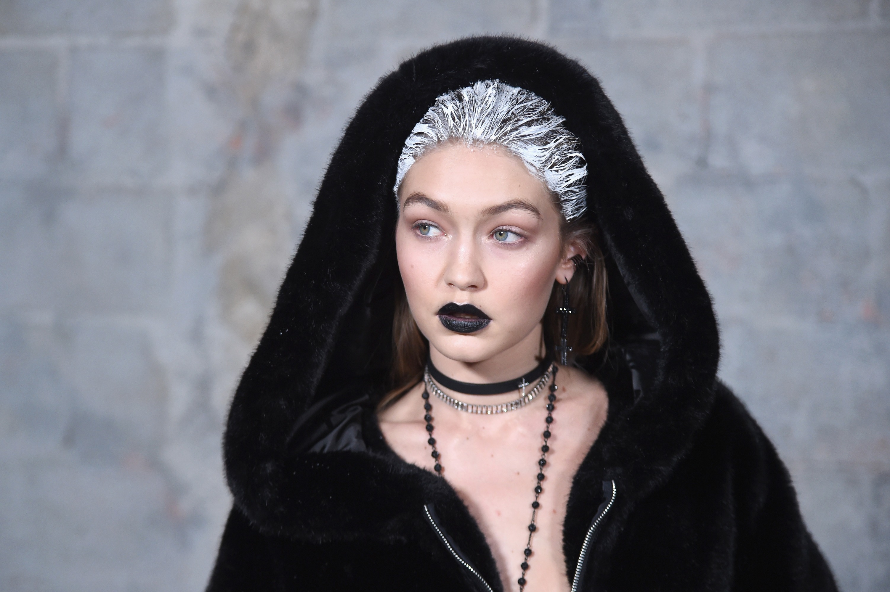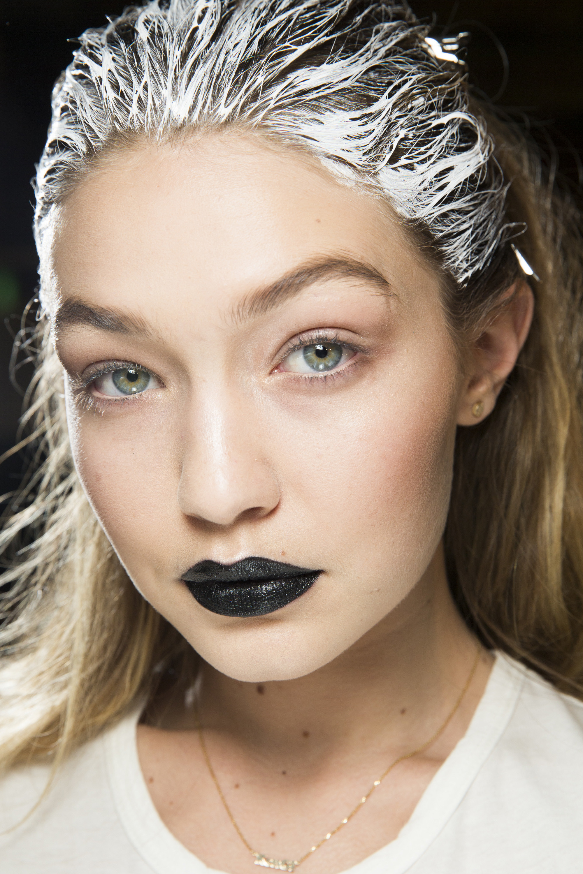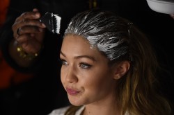 The white shite on the hair was copied from Wang in, what, 2010? I don't think anyone expects (or, rather, should expect) celebrity designers to bring anything new to the table. That being said, bizarre choice for her to keep the show look at the Maybelline party, because it really is atrocious.