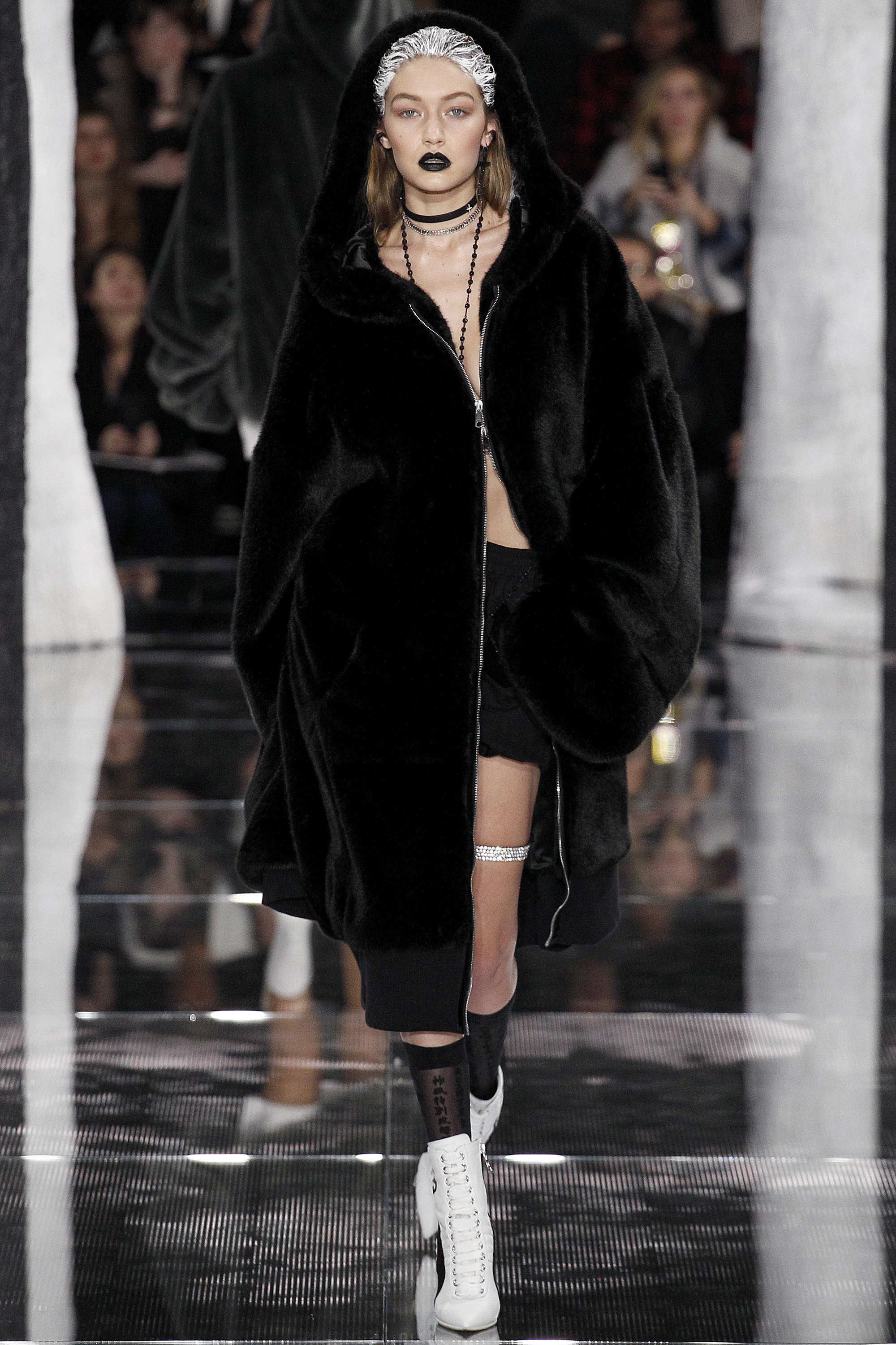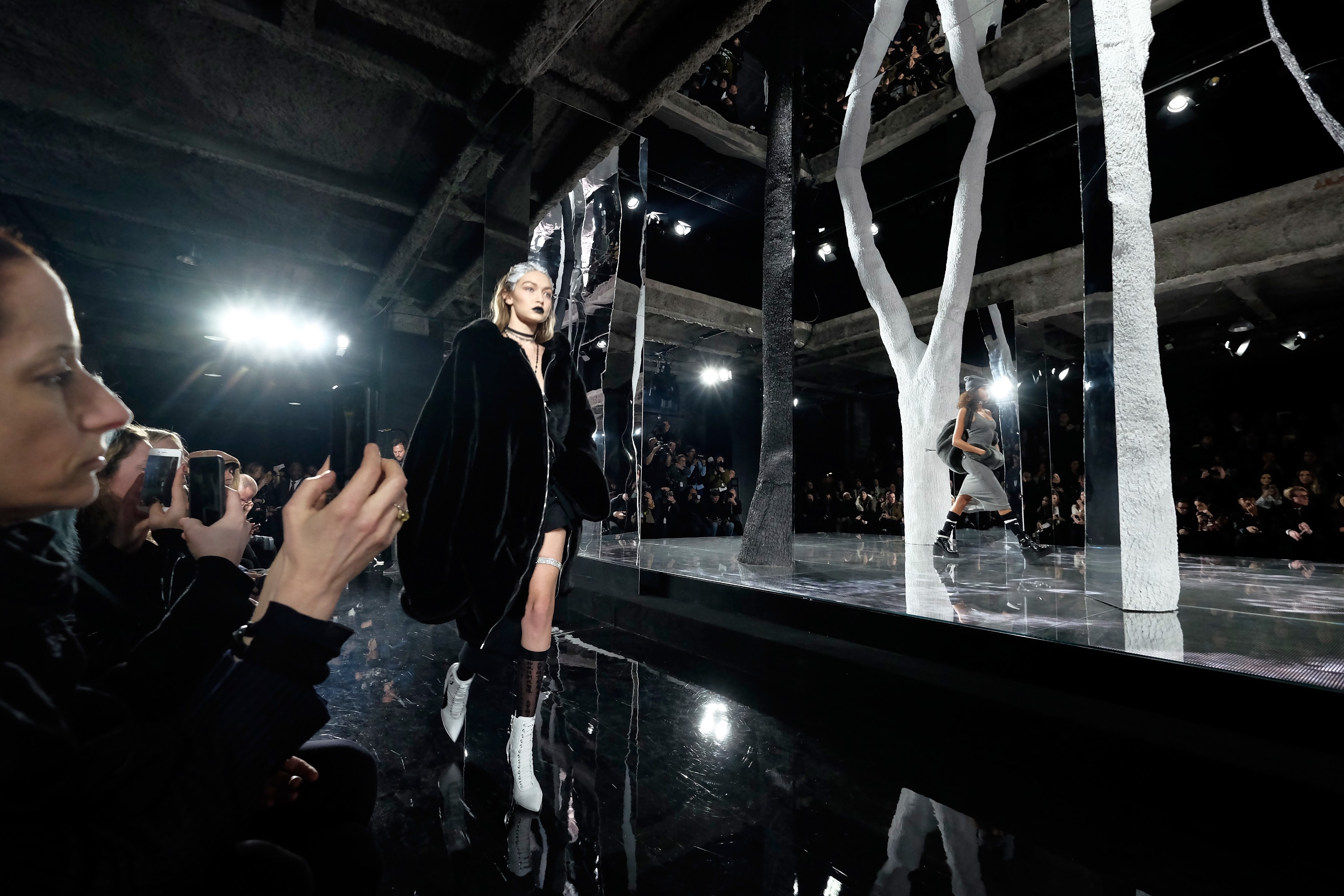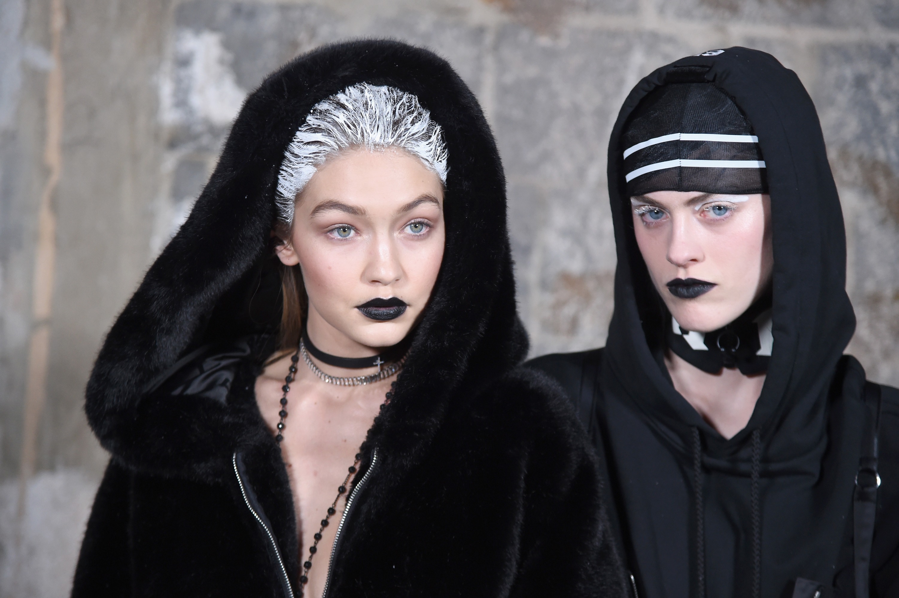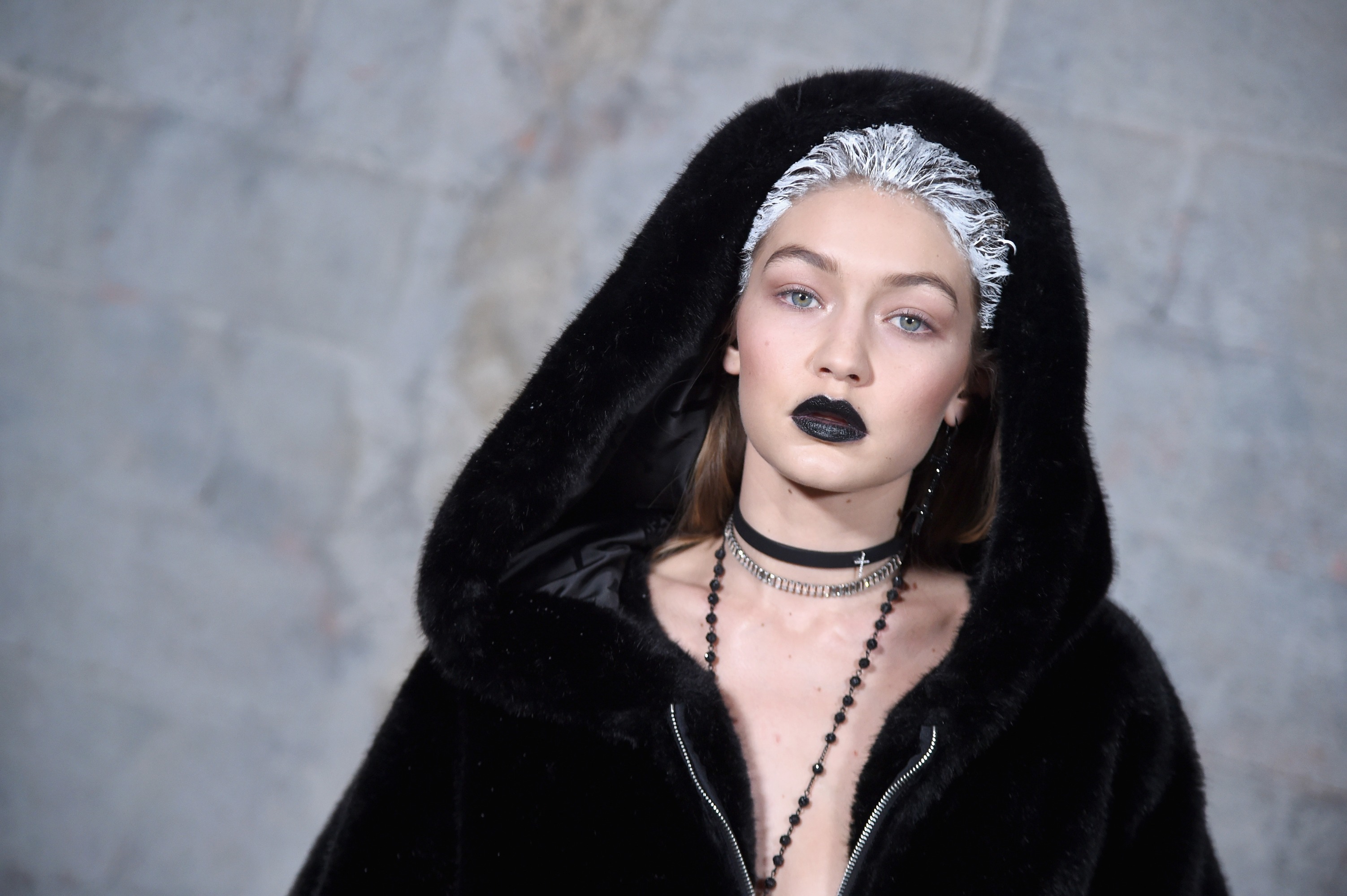 The white shite on the hair was copied from Wang in, what, 2010? I don't think anyone expects (or, rather, should expect) celebrity designers to bring anything new to the table. That being said, bizarre choice for her to keep the show look at the Maybelline party, because it really is atrocious.
