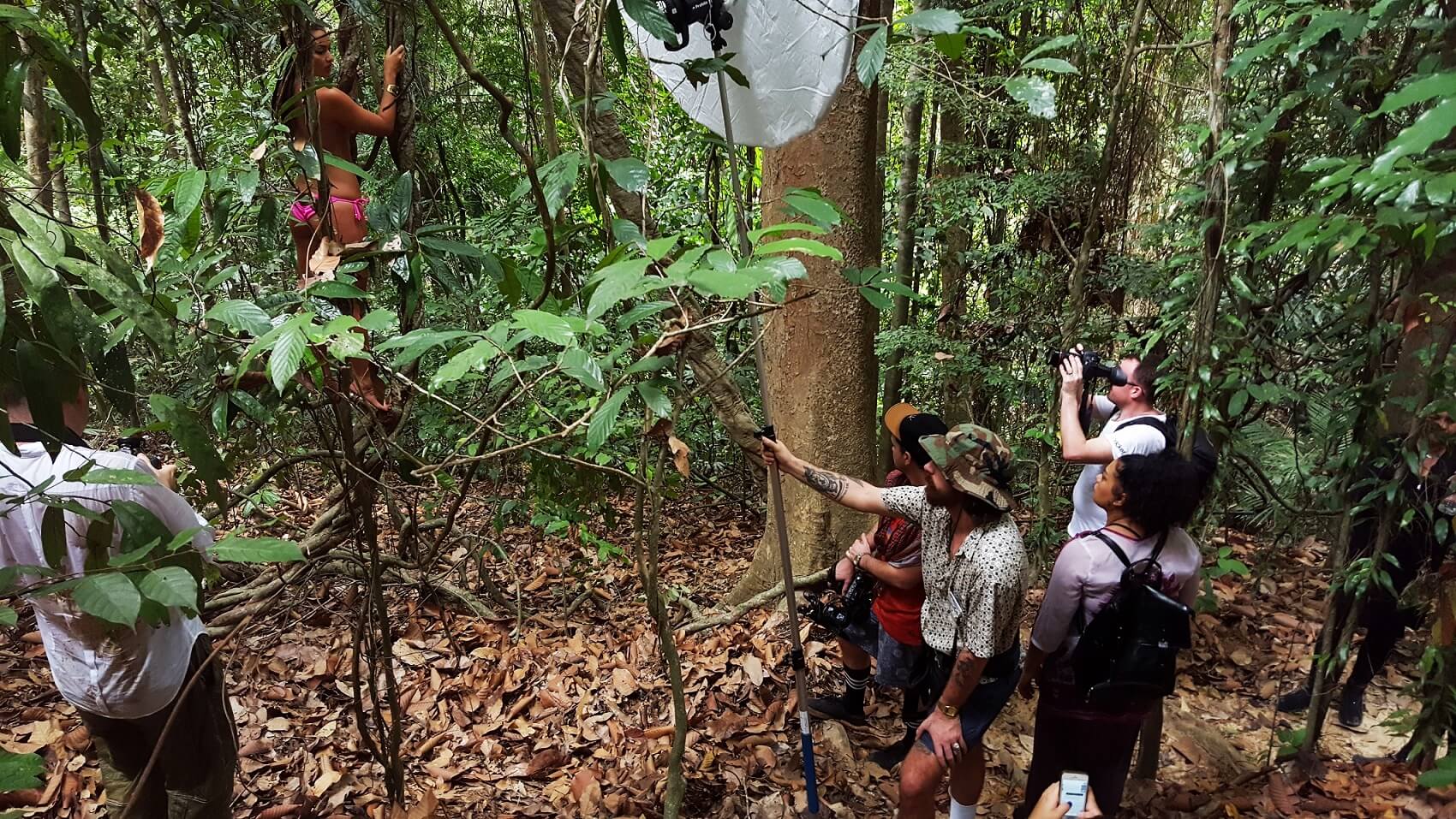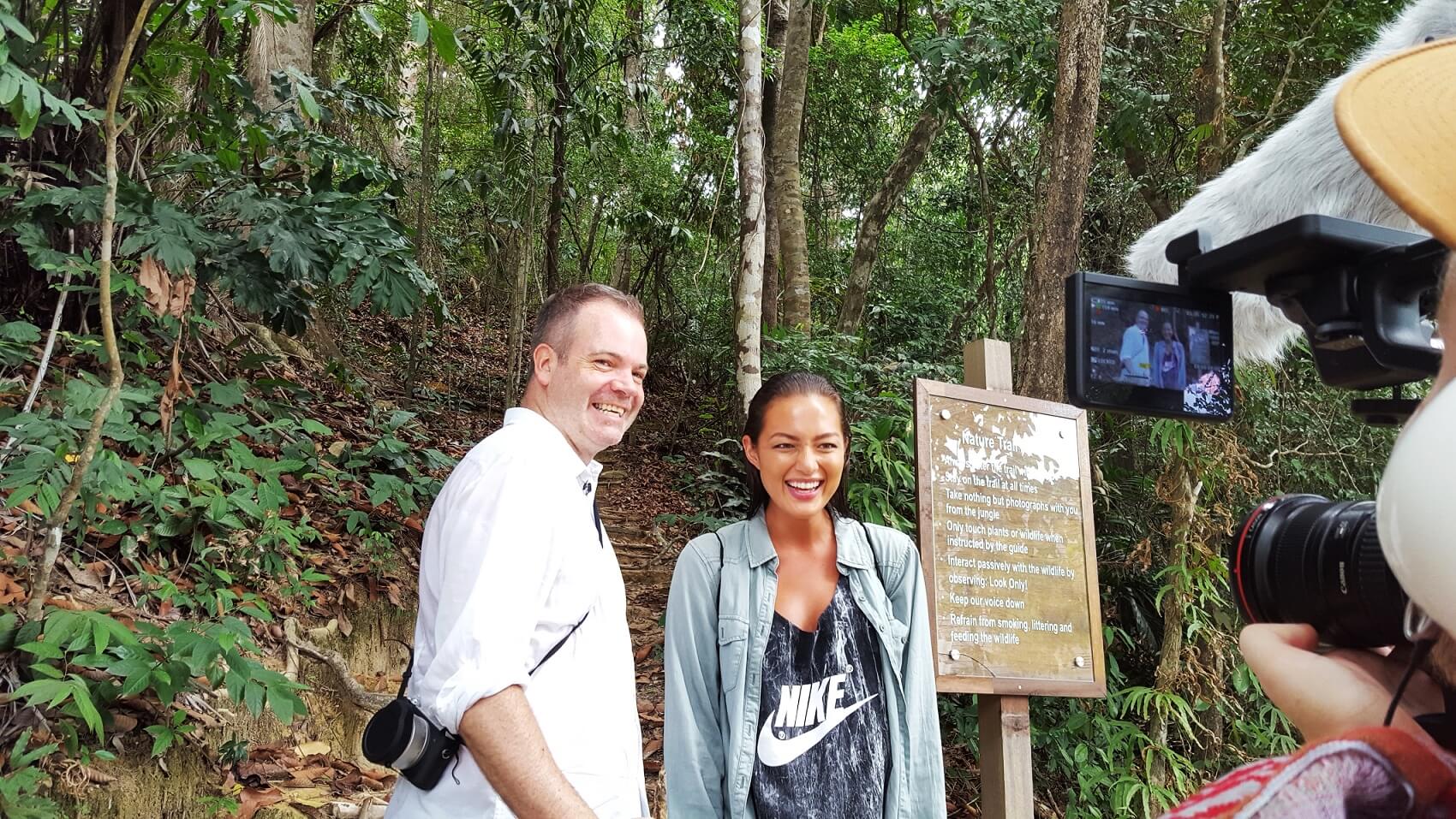 Our second shoot location was the lush Gaya Island Resort jungle. Lead by Justin, the resort’s intrepid resident naturalist, we headed off with Mia. We shot at several locations and had to hike to each one, but Mia was a trooper, smiling all the way. Justin also made the going considerably easier, having carved an entire staircase into the side of a valley in just two days, to give us access to unique spot.