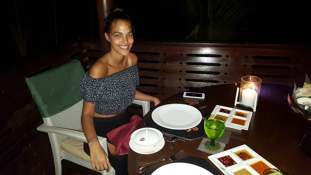 The day was topped off by a lovely dinner date with the even lovelier Jessica. The resort arranged an exclusive Sinagang Steamboat dinner, complete with a private butler/chef, and we dined overlooking the calm waters as the full moon rose.