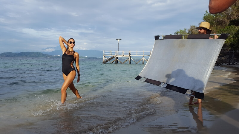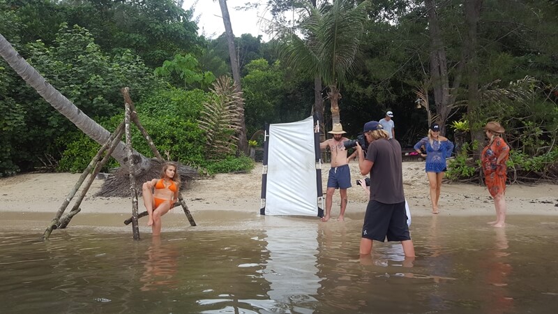 We broke for lunch and then headed to our favourite local beach, Tavajun Bay. The afternoon light was excellent and Jacques had Zippy rolling around in the sand and splashing in water. P.M.C. and Mr Flare then stole her for some social media content, and afterwards they were joined by Tropical Bro to film the final parts of her hero sequence.