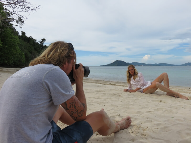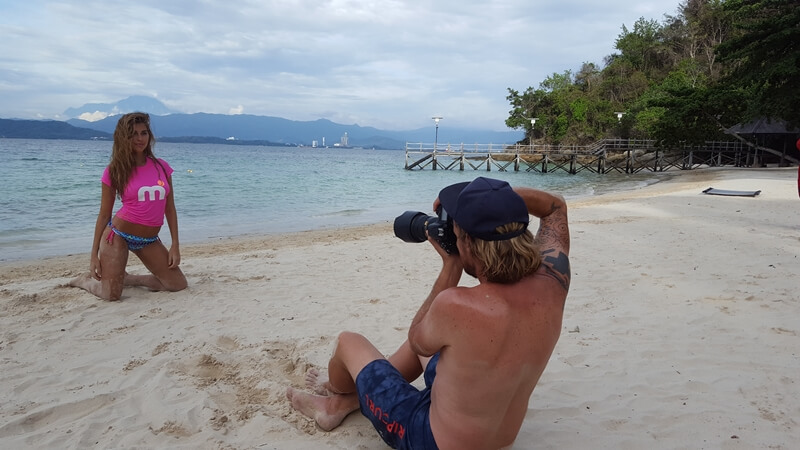We met at the jetty just as the sun was starting to peek over the horizon, and set off with for a small beach which is home to an even smaller fishing community. Initially the light wasn’t playing along, so we spent some time scouting for the best spots and observing the locals going about their daily business while Merle Titus a.k.a. Merry Merle did her magic and made Bianca Koyabe look even more stunning than she already is. While we were pottering about, the resort had arranged a small boat to bring us a much needed breakfast. Then, without warning, it was time to shoot!