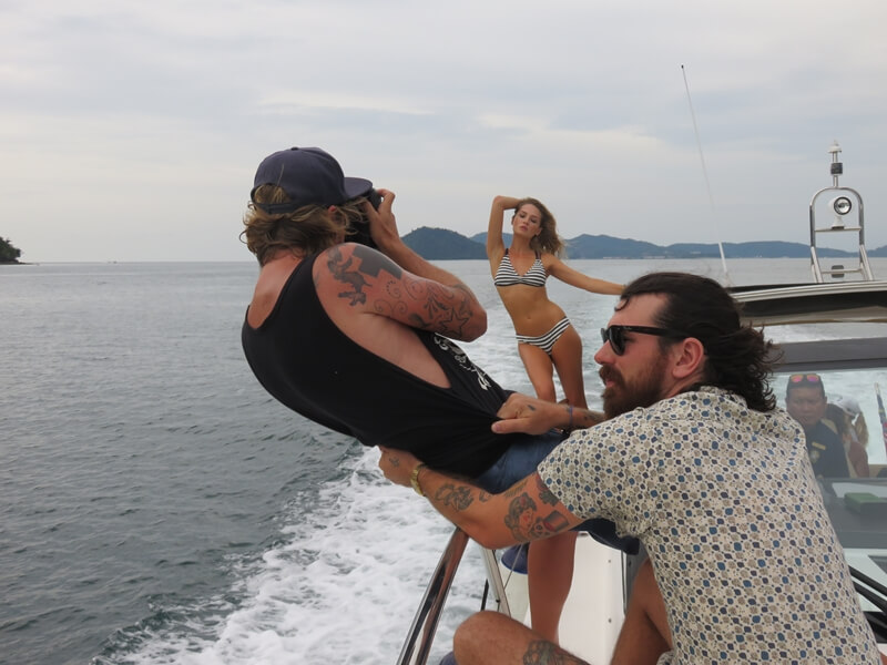 The morning was tough, but worth it. The light was superb, and Jacques had the yacht doing circles in front of the resort as he snapped away at the seductive Tana Boshoff.