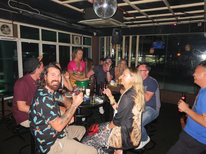 A long and productive day behind us, we caught a boat into town and when to a local karaoke bar called The Place to relax and unwind.