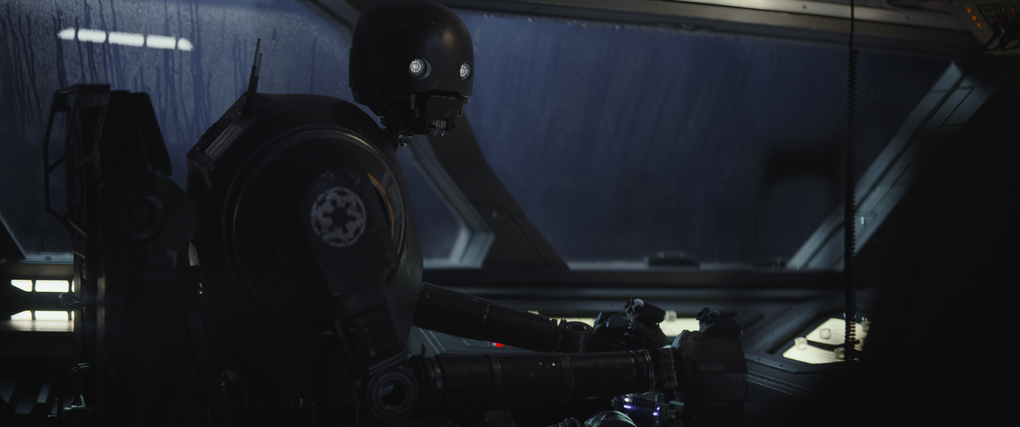 Alan Tudyk plays the CGI character K-250, an Enforcer Droid and evidently an imperial model, but teams up with the rebels.