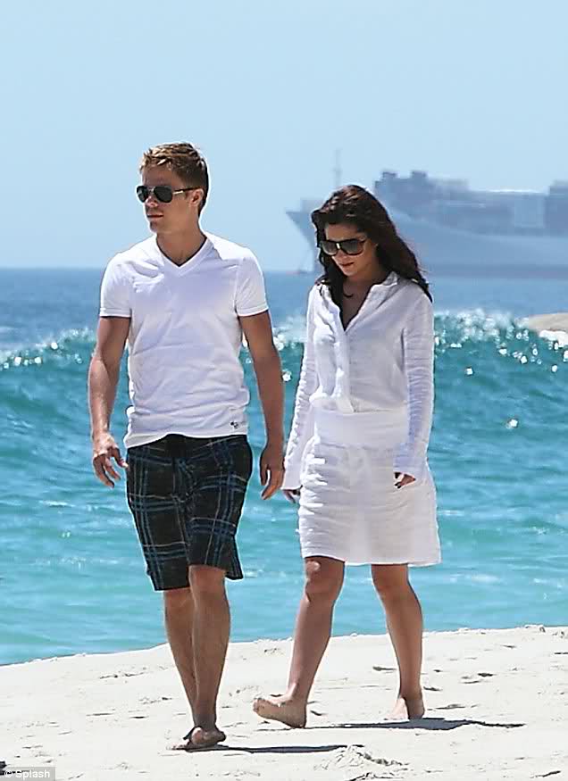 Just last week, she denied that she was dating anyone - but Cheryl Cole and Derek Hough showed their love yesterday with a romantic stroll along the beach.