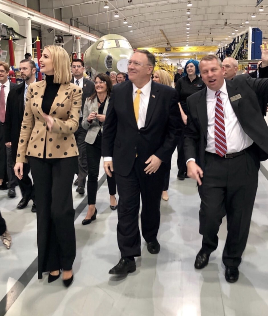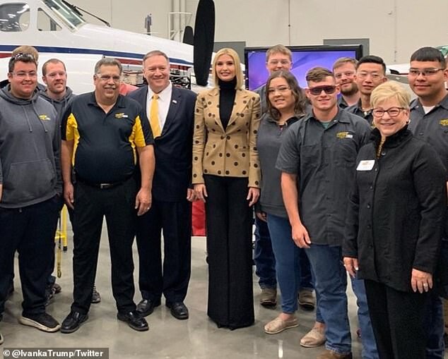 Ivanka shared a photo of herself with Pompeo and Senator Jerry Moran after she arrived in Wichita