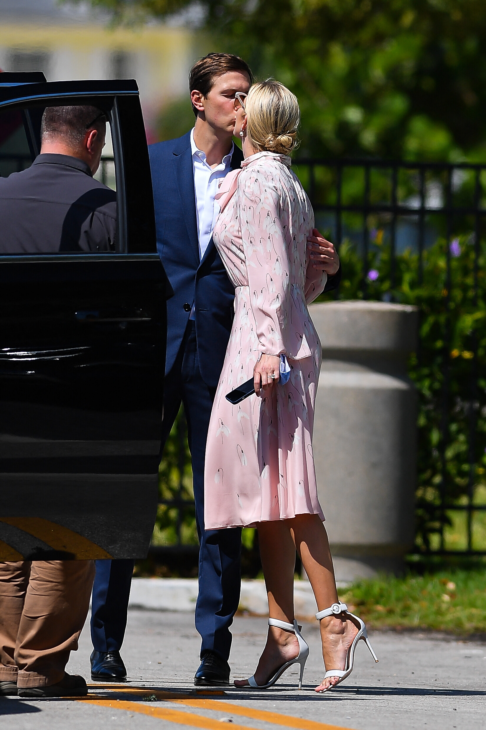 Ivanka looks Hollywood glam in $4,500 Valentino silk dress as she shares kiss with Jared after visiting his brother Josh's newborn with model Karlie Kloss