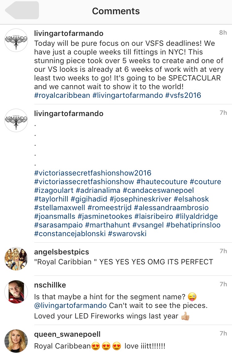 One of the other wing designers gave Barbara Fialho a set of mini wings that they did for her Parisian nights outfit. She said that she can't wait to see Barbara in Paris walking the show.
